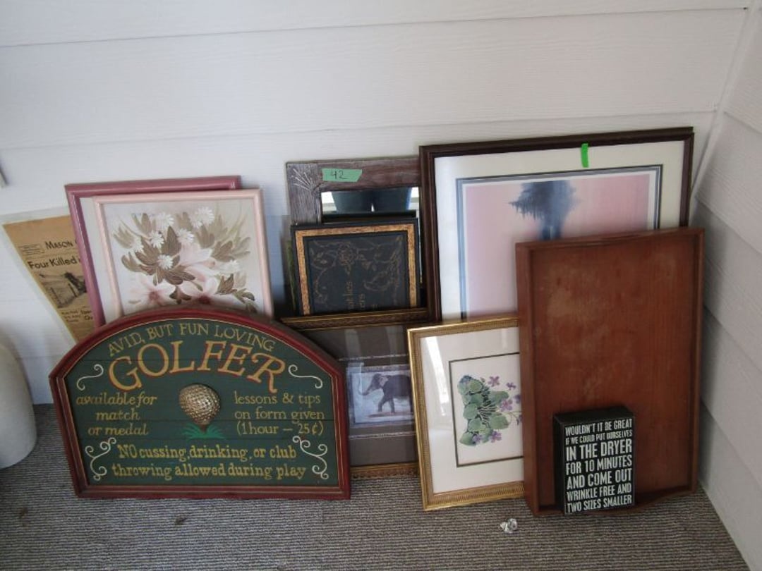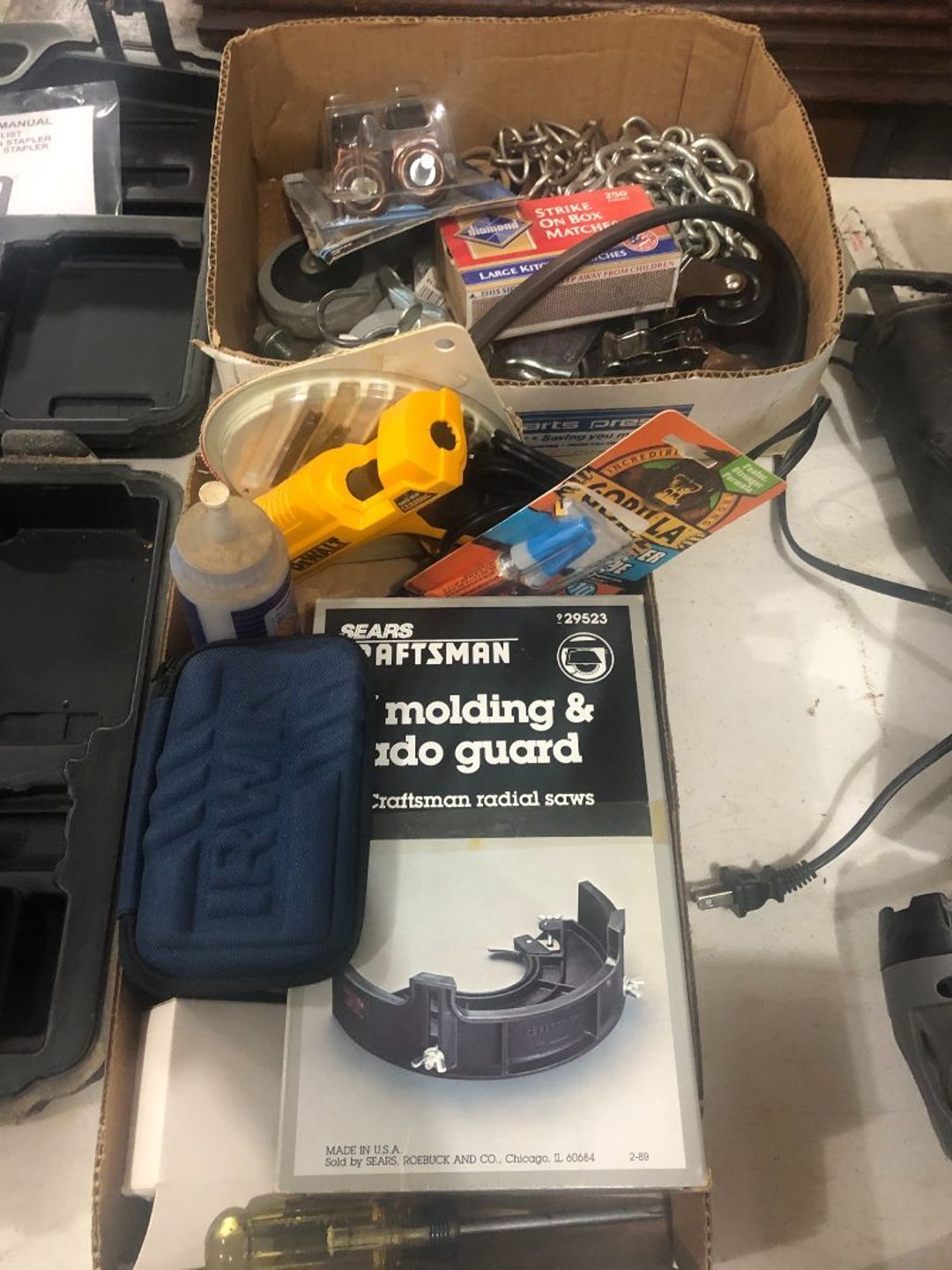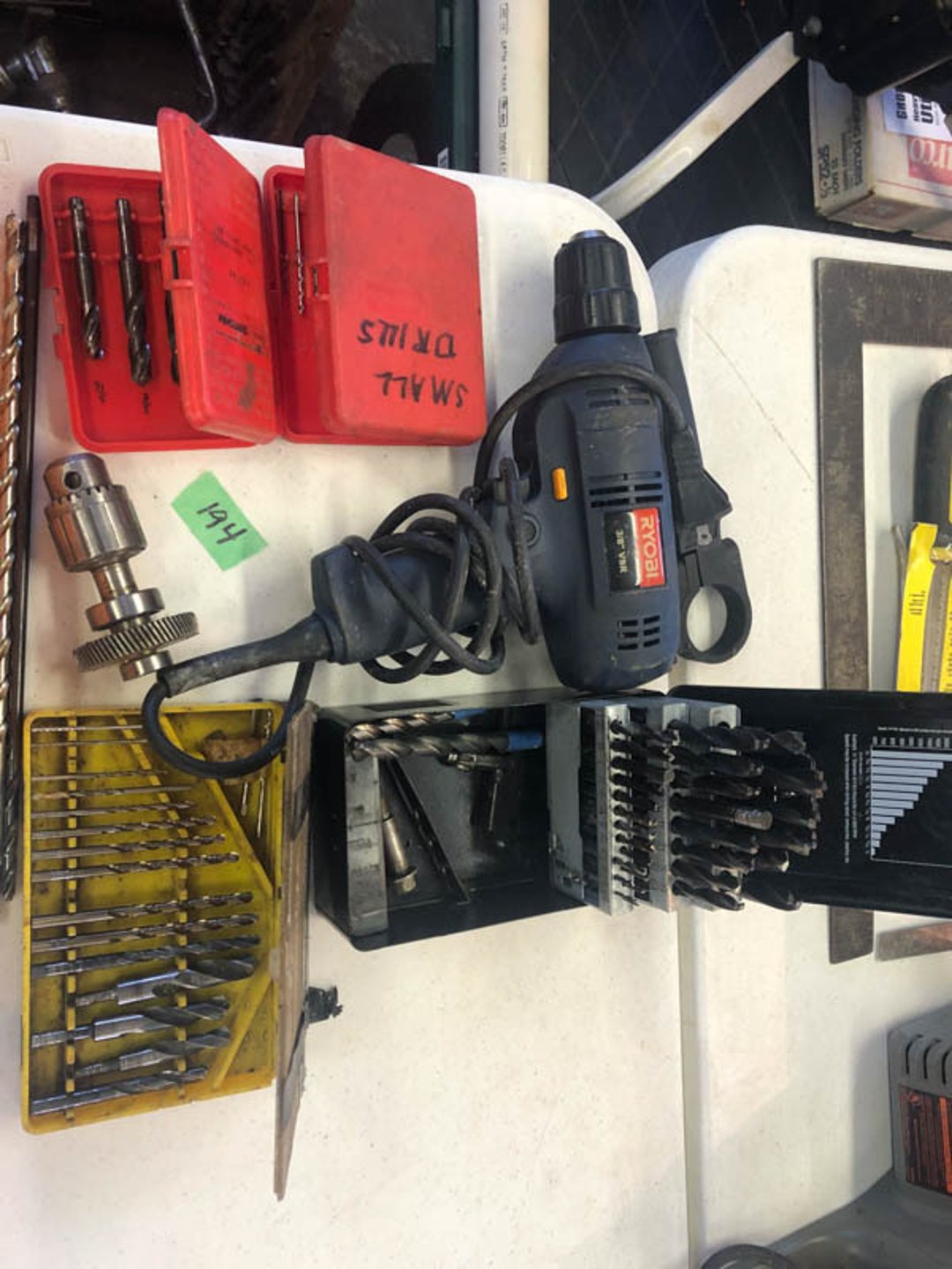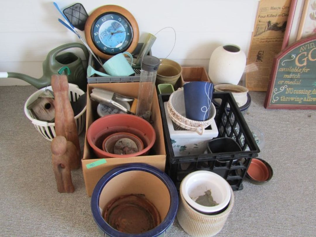 Primitives - Misc Kitchen Items - Granite Pots - Oil Lamps - Plates & Bowls - Glassware - Rice Cooker - Bread Maker - Can Opener - Cast Irom Pans - Brother Sewing Machine - Costume Jewelry - Longaberger Baskets - Vera Bradley Items - Ice Cream Maker - Picnic Set - Various Kitchen Sets (Revere, Pampered Chef) - Flatware - Kitchen Utensils - Books - Coleman Lantern - Thermos - Bar Stools - Mikasa China Set - Corelle Set - Food Savor Vacuum Sealer - Knife Set - Kitchenaid Mixer - Coventry Stoneware - Pans - Tupperware - Recliners - Table - Ice Bucket - Trash Can - Baskets - Pitchers - Vases - Hand Towels - Outdoor Pots - Speakers - Misc Pictures - Light Bulbs - Crock - Pioneer Set (disc player, stereo, cassette) - Toshiba, Sony TVs - Bakers Rack - Glass Top Coffee & End Tables - 3 Piece Furniture Set - Sofa - Loveseat - Fishing Lures - Daiwa Reel - Tackle Box - Fish Holder - Hoover Sweeper - Luggage - Lamps - Christmas Items - Folding Table & 4 Chairs - Dresser - Bed Frame - Mirrors - Headboard - Golf CLubs - Plant Stand - Rugs - Bedding - Full Tempur-pedic Pad (2 months old) - Crock Pots - Oster Mixer - Wynmor Exercise Bike - Cabinet - Router Bits - 12 gal Shop Vac - Outdoor Table & 5 Chairs - Flex File Cabinet - Sled - Sears Battery Charger - Jumper Cables - Clamps - Soldering Guns - Hitachi NT 65MA4 Air Gun - Leaf Blower - Wagner Paint Gun & LP Torch Kit - 3 PCS Porter Cable Set - Dewalt Glue Gun - Grip Rite Stapler - Hitachi FDV 16VB Drill - WEN 3/8" Drill - Ryobi Plate Joiner JM80 w/ Case - Craftsman 3-D Sander & Drum Sanding Kit - MR HEater - Craftsman Belt Sander - Sears Scroll Saw - Central Pneumatic Nailgun - Skil Screwdriver - Jack & Handpump - Drill Bits - Miter Box - Cement Trowels- Coolers - Chicago Electic Miter Saw NEW - Clough & Warren Co Piano - US General Shop Cart - Green Works 20" Snowblower - Craftsman 21" Snowblower - Silver Series Push Mower - Craftsman Table Saw w/ Table Guide - Garden Tool Organizer - Briggs & Stratton Generator - John Deere L110 Riding Lawn Mower - Weber Grill - Black and Decker Drill Bit Sharpener - Craftsman Router & Table - Central 3 Gallon Air Compressor - Hotpoint Refrigerator - Freezers - Chest Freezer - Sears Trouble Light - 20' Extension Ladder & MORE!