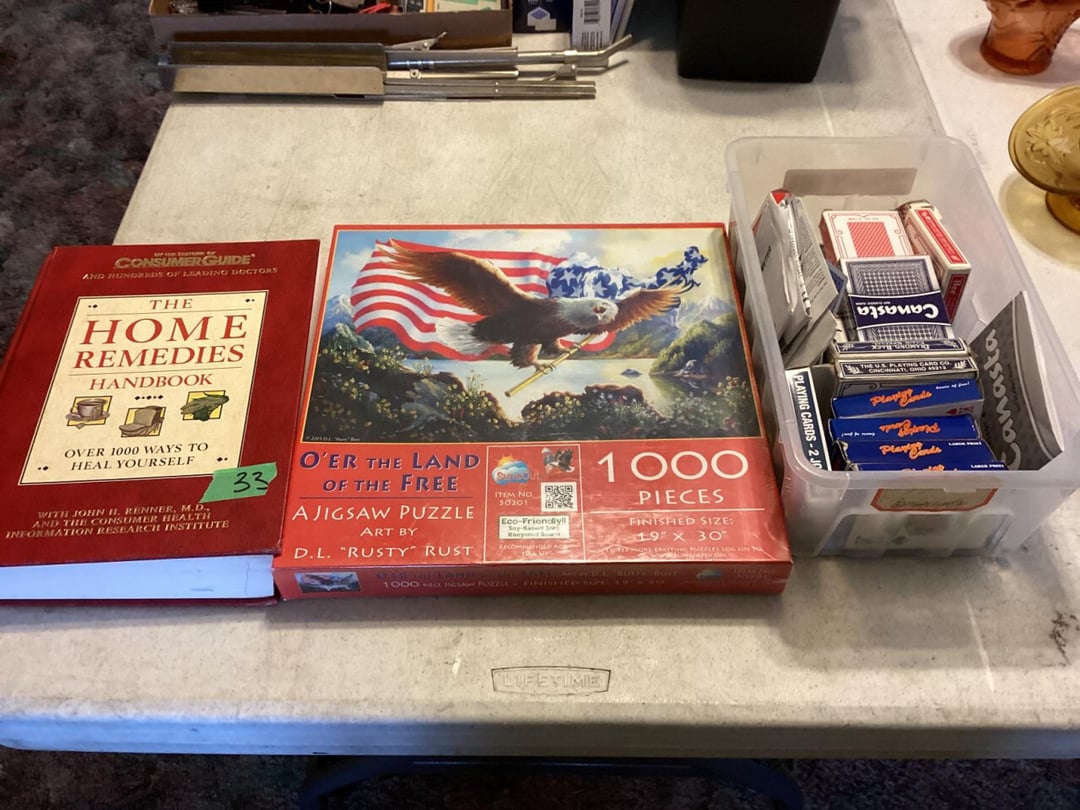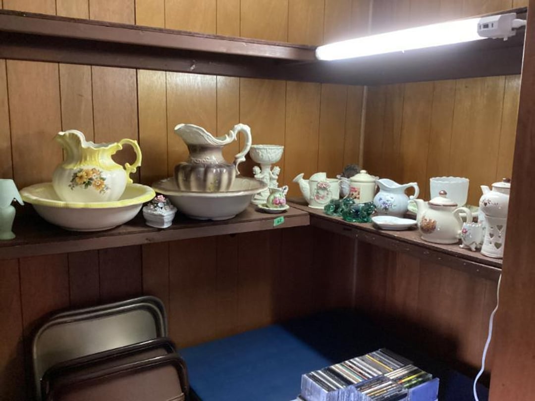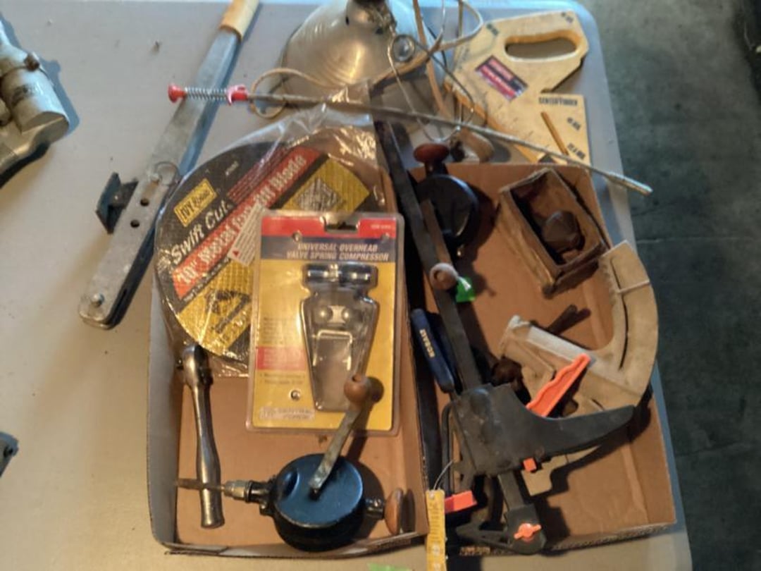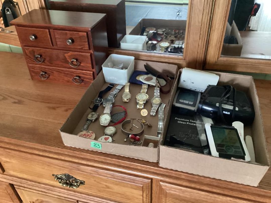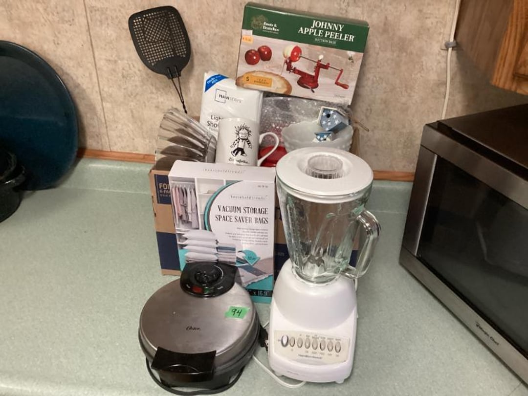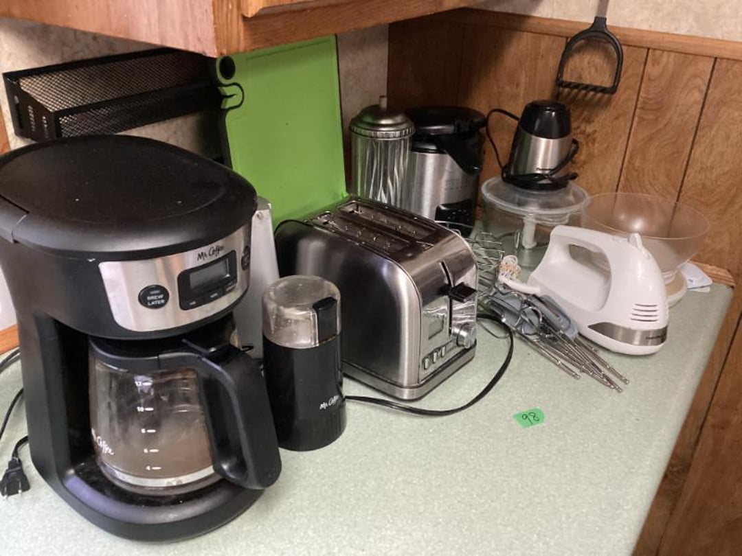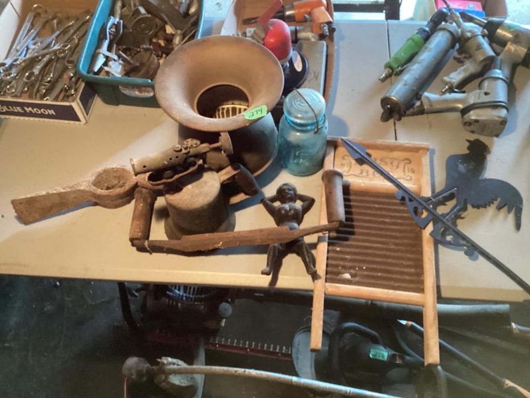 3 Piece Dresser Set With Full Size bed , End Table, Wall Hangers & Laundry Basket, Electric Door Opener W/ Remotes , Alumilite Step Ladder , Floor Lamp & Table Lamp , Jetco Tornado Airplane W/ Motor , Fiesta Bowl, Lead Crystal, Banana Bowl , Fostoria Sherbets & Creme / Sugar , Tiara Last Supper Dishes W/ Box, Assorted Glass Dishes & China , 1940s WW2 Newsreels & Other 40s Newsreels , Limberlost Patches, Geneva FF Patches & Booklets , Assorted Throws & Rug , Assorted Arrows W/ Attached Broadheads , Daisy 102 Cub BB Gun W/ Box , Buffalo Nickel & Lincoln Head Collectors Coins , Assorted Office Supply , Antique Mantle Clock , Waltham Day Chime Mantle Clock , US Constitution Wall Clock , Vintage Wall Clock, Anniv. Clock, & Quartz Clock , Travel Bags & Luggage, 3 Tiered Electric Fan , Wooden Quilt Rack , Sony Home Theatre System , Assorted Plasticware & Tupperware , Eastport Book Bag & Insulated Gloves , VTG Tiara Clery Tray, LE Smith Moon & Stars, Relish Tray , Fenton Basket, St. Clair Paperweight & Lenox Vase , 2 Tiara Birds of Paradise Baskets , Vtg Tiara Amber 9.5" Amber Basket & 2 Candlesticks , Assorted Collectible Bells , Home Remedies BK, 1000PC Puzzle & Cards , The Legend of Limberlost 1951- 1956 , Phillips CD Player , 20 Collectors China Plates W/ Rubbermaid Tote , Allis Chalmers 1/16? Scale WD 45 Model , New Holland 100th Anniversary 1.8 Engine , 43" Best Buy Flat Screen W/ Stand , Quartz Westminster Chime Wall Clock , Assorted Household Decor , Hand Carved Ram Decor By: Ava Ostrander , Pair of Electrified Hurricane Lamps , Single Electrified Hurricane Lamp, Pair of Glass Oil Lamps W/ Oil , Ruby Red Nu Type Aladdin 13 Oil Lamp, Pink Glass Nu Type Aladdin 13 Oil Lamp W/ Chimney Box, Roy Smeck Steel Guitar Gold Edition , Assorted Canes & Grab Bar , Roll Top Desk , Standing Mirror , Outdoor Reclining Chair , Assorted Household Collectibles , Assorted Collectible Glassware , 2 & 3 LB Weights , Tiered Serving Tray & Oval Tray Set, Assorted Households, Lamps, Bulbs & More , Fujifilm S4200 Camera With Bag & Box , 10.1" LCD DVR/NVR Combo Security System , therapist Seat, Nice Day, Air Purifier , Assorted Electrical Items- Mainly Computer , Ford Code Reader , B & D Battery Trimmer & Edger- Has Battery , Office Computer Chair With Cover , Vizio 24" Flat Screen TV W/ Remote , Wooden Book Shelf , Glassware, Computer Stand & Decor , Assorted China, Tea Pots, & Decor , Flat Of CDs, & Shelves , Folding Card Table W/ 4 Chairs , Wooden Kitchen Table Chair , Gun Rest W/O Pads , Wooden China Cabinet , Pair of Wooden Kitchen Chairs , Lighted Curio Cabinet , Honeywell Air Purifier W/ Filters , Kitchen Table W/ 6 Chairs & 1 Extra Leaf , 35" Wooden Decor Shelf - Plate Holder , Camera Stands, Doll, Childs Stool, Scale, Sewing Items , Holmes Fan , Assorted Convalescent Items , Assorted Collectible Knives , Jewelry Box, Watches, Alarm Clocks & More , Wooden Glass Front Gun Cabinet & Few Extras , Cap & Ball Muzzleloader Pistol - Marked Spain , Cap & Ball Muzzleloader Pistol , Cochrane Queen Size Bedroom Suite , Picture Frames, Halloween Items & More , Holmes & Optimus Air Purifiers , Shelf Contents Of Closet , Electric Heater/ AC , 18MM Projector With Screen , Enameled Roasters, Plate, Cast Skillet & Fry Pan , Blender, Waffle Maker & Other Kitchen Items , Cabinet Contents Full of Drinkware , Magic Chef Microwave , Assorted Kitchen Utensils , Assorted Kitchen Electric Utensils , Kenmore Electric Range , Frigidaire Fridge/ Freezer Combo , Kitchen Stools , Assorted Household Cleaning Items , Folding Step Stool , Entire Closet Full of Cleaning Supply , Assorted Households Lights bulbs, Cleaners & Misc. , Kitchen Items, Pyrex, Mixing Bowls, Measure Cups & More, LG Top Load Washing Machine W/ Manuals , Maytag Front Load Electric Dryer , Shelves with Bugs Sprays, Hummingbird Feeders & More! , Bug Sprays, Detergents, & Potato Box , Rolling Cart W/ Kitchen Bakeware Items , 2 Sterilite Totes Full of Mainly Cookbooks , Workshop Wet/Dry Vac 2.5 Gallon, , Assorted Hand Tools , Assorted Battery Drills & Electric Sander , Assorted Clamps & Small Clamp on Bench Vise , Car Horn & Bugle , 2 Tool Boxes- 1 Full of Tools & Other Empty , Workshop Tools, Material Stand , Tool Shop Rolling Toolbox W/ Keys , Sears Craftsman 8" Drill Press , Assorted Electric Tools , Small Shop Table , Sears Craftsman Router On Wood Stand , Contents of Metal Shelf- Car Liquid Supply & More , Assorted Hand Tools , Shop Workbench & Contents- Assorted Hand Tools & Misc. , 6" Bench Grinder , Folding Arm Chair & Canopy , Painting Supply & Shop Rags , Drill Bit Set , Craftsman Router & Template Set , Caulk, Electrical Cord, Remote Controls Etc. , 2 Folding Arm Chairs , Stadium Seats , VHS Home Tapes & Holiday Decor , Igloo Cooler & Plastic Tote , Assorted Tool Supply , Metal Shelf & Plastic Display Shelf , Remington 16" Electric Chainsaw , Solder Gun, Heat Shrink Tubes & Wire Crimps , Nesco 6 QT Roaster Oven , Hair & Frigidaire WIndow Air Conditioners , Assorted Door, Electrical, & Plumbing Supply , Coleman Propane Lantern & 2 Mattress Pumps , 6 Gallon Shop Vac , Echo Valley Gazing Globe , Wayne 18" Pipe Wrench , Ball Mason Jars , Assorted Hand Tools , 2 N 1 Jump Starter W/ Air Compressor , #10 Manual Meat Grinder , Bocce Ball Game Set , Framing Nail Gun , Harbor Freight , Chicago Electric 1" Rotary Hammer , Step Stool & Brooms , Sporting Clays & Empty Shotgun Shells , Assorted Staples, Gun, Brad Nailer & Air Stapler , Chicago Electric Jig Saw & Drill, Task Force 12 PC 1//2" Socket Set , Assortment of Hand Tools , Box Fan & Sunbeam Heater , Electrical Cords, Charger, Hand Tools , ATV Spreader & Sprayers , 14 Gallon Sprayer & 2 Pump Sprayers , Spike Spreader , Hose Reel With Hose , Tilt Utility Garden Tractor Cart , B & D Blower, Tools, Electrical Supply , 4 Wheeled Walker W/ Brakes , 4 Wheeled Walker W/ Brakes , 4 Plastic Outdoor Chairs , Hand Truck , Hand Truck , Rubber Made Trash Can & Smaller Trash Can , Skill Saw & E Work Electric Stapler , Holmes Humid