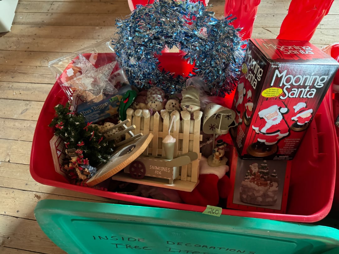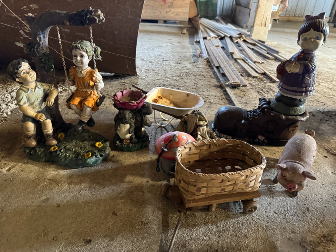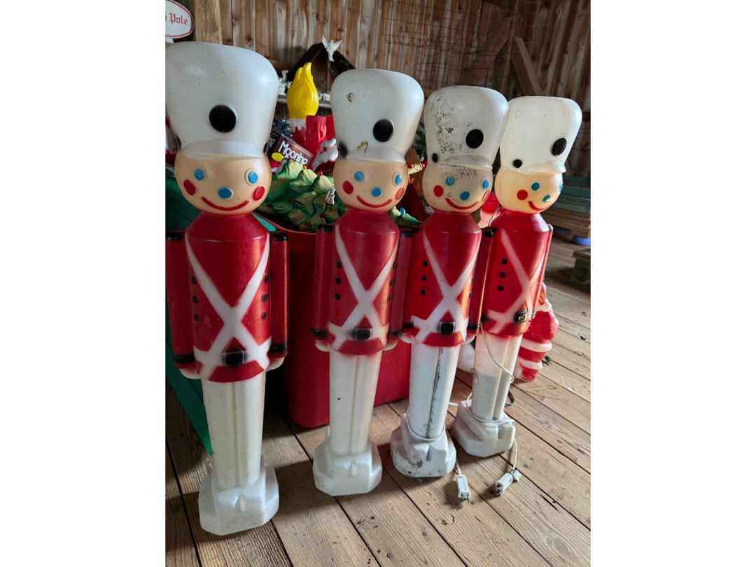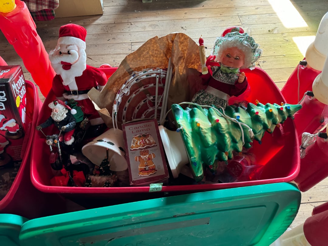 Vintage Outdoor Christmas Decorations, Extension Cords, Violin, Saxophone, Guitars, Music, Books, Power Tools, Fishing Tackle, Household Items, Dog Pool, Kobalt Air Compressor, Table Saw, Sectional Sofa/Bed/Recliner, Firetruck Bed, Dining Table & Chairs, Microwave, Seven Dwarfs Cement Statues, Brother Sewing Machine & Much MORE!