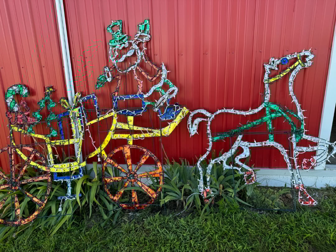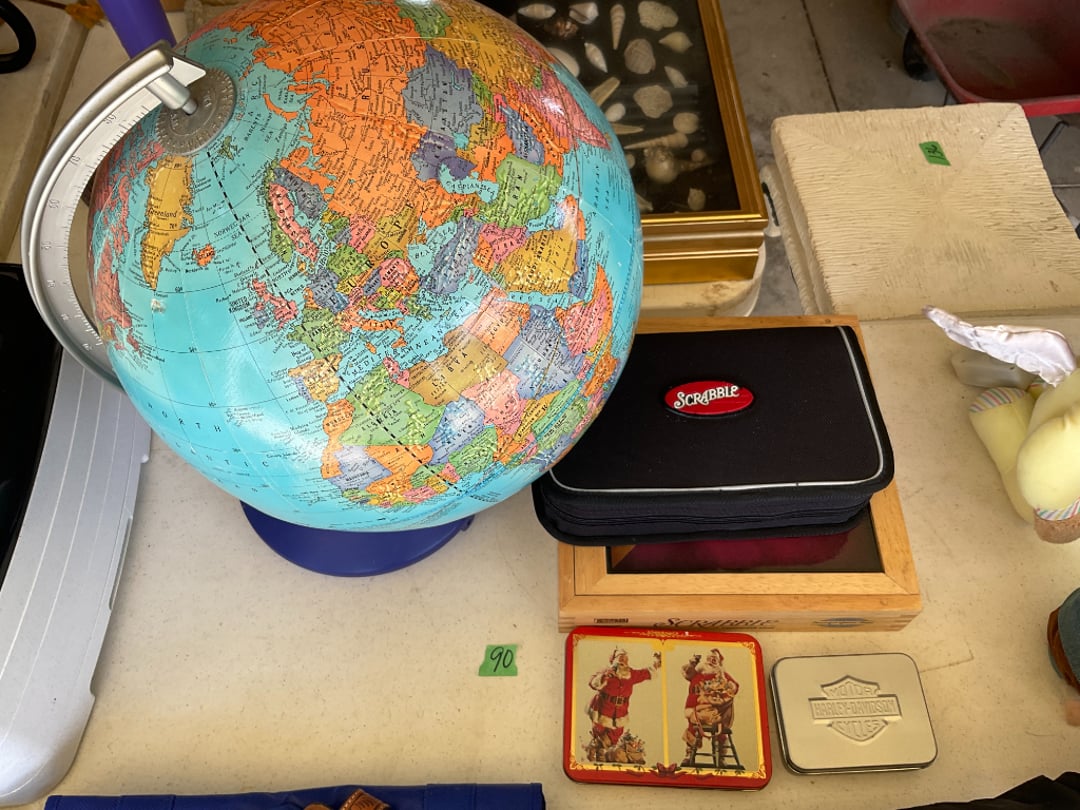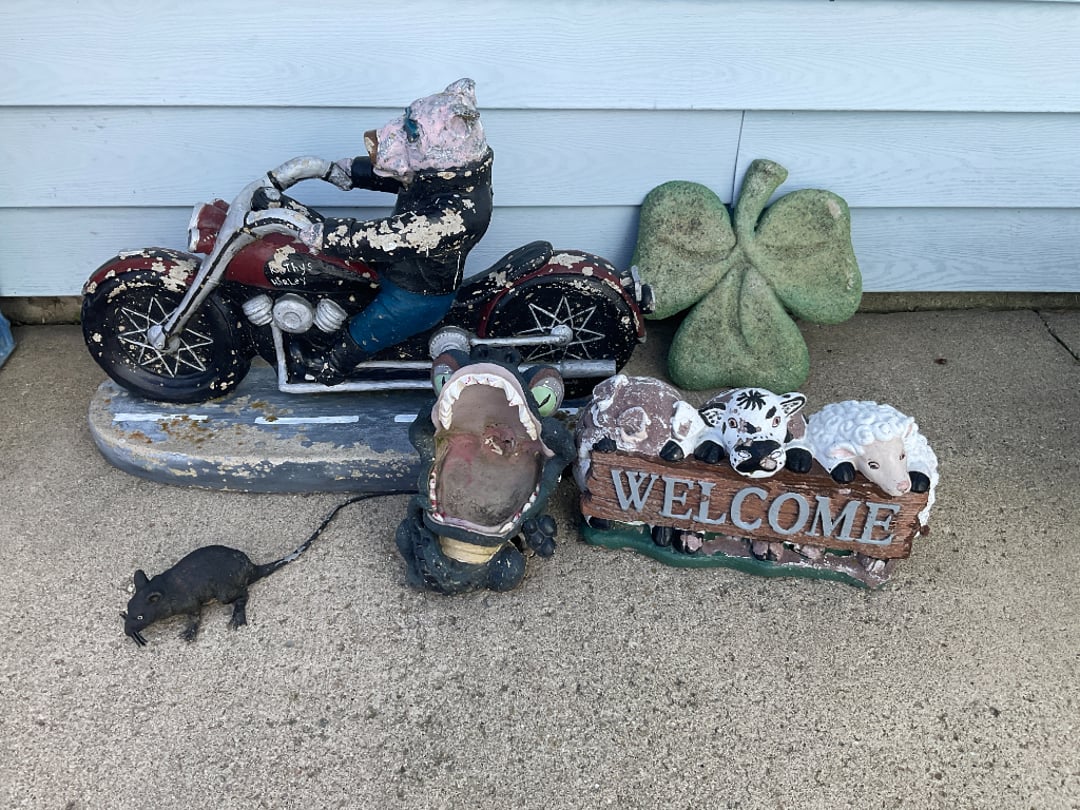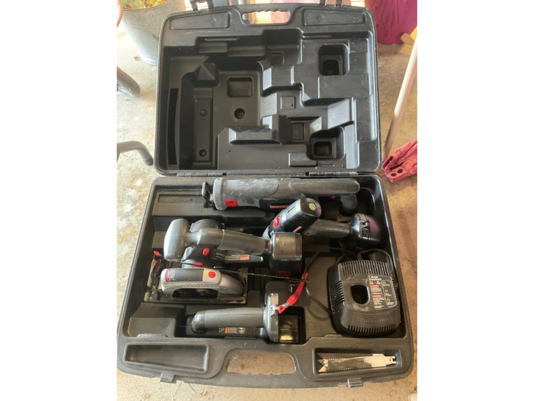Vintage Outdoor Christmas Decorations, Extension Cords, Violin, Saxophone, Guitars, Music, Books, Power Tools, Fishing Tackle, Household Items, Dog Pool, Kobalt Air Compressor, Table Saw, Sectional Sofa/Bed/Recliner, Firetruck Bed, Dining Table & Chairs, Microwave, Seven Dwarfs Cement Statues, Brother Sewing Machine & Much MORE!