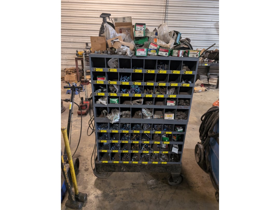 •Double Sided Rolling Hardware Cart w/ Hardware & Contents