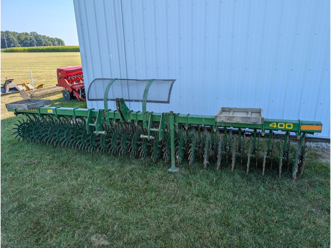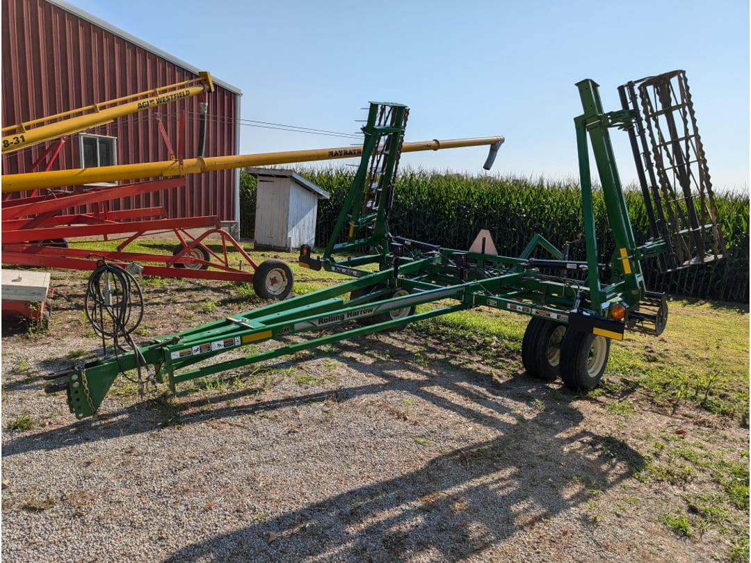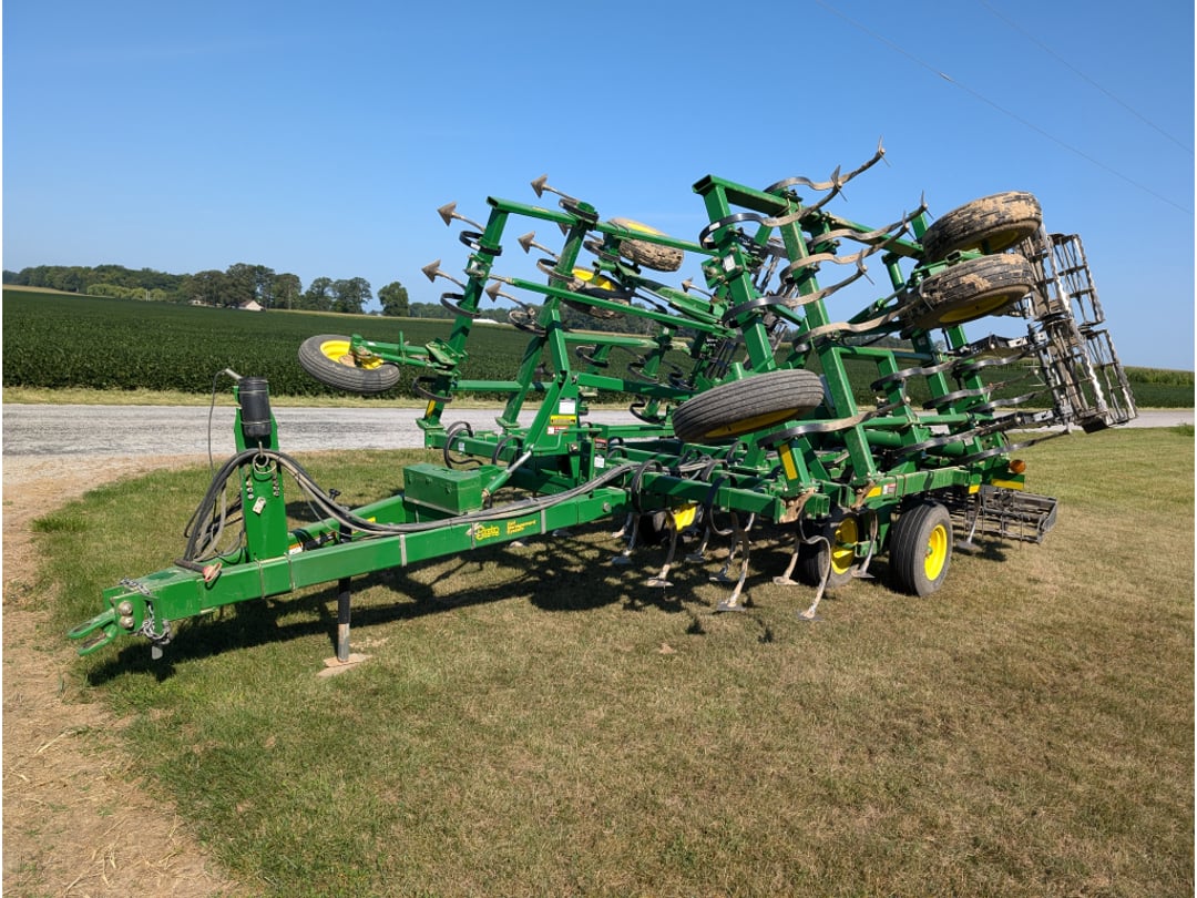 Lot 31 John Deere 980 23' Field Cultivator Danish tine, Walking Tandems, Double Unverferth Double Basket w/ Harrow, Rear Hitch & Hydraulics, Light Kit, Serial N00980x018997