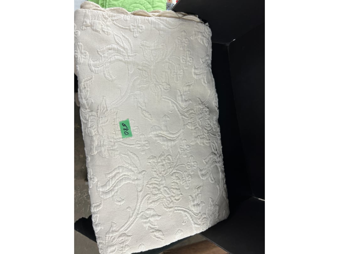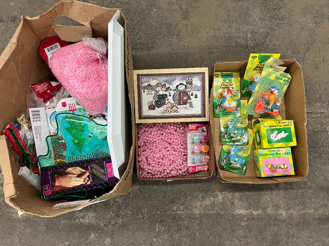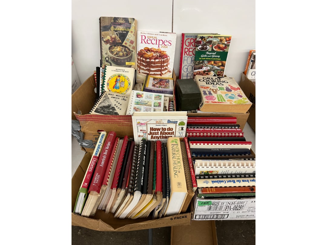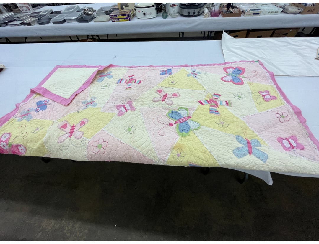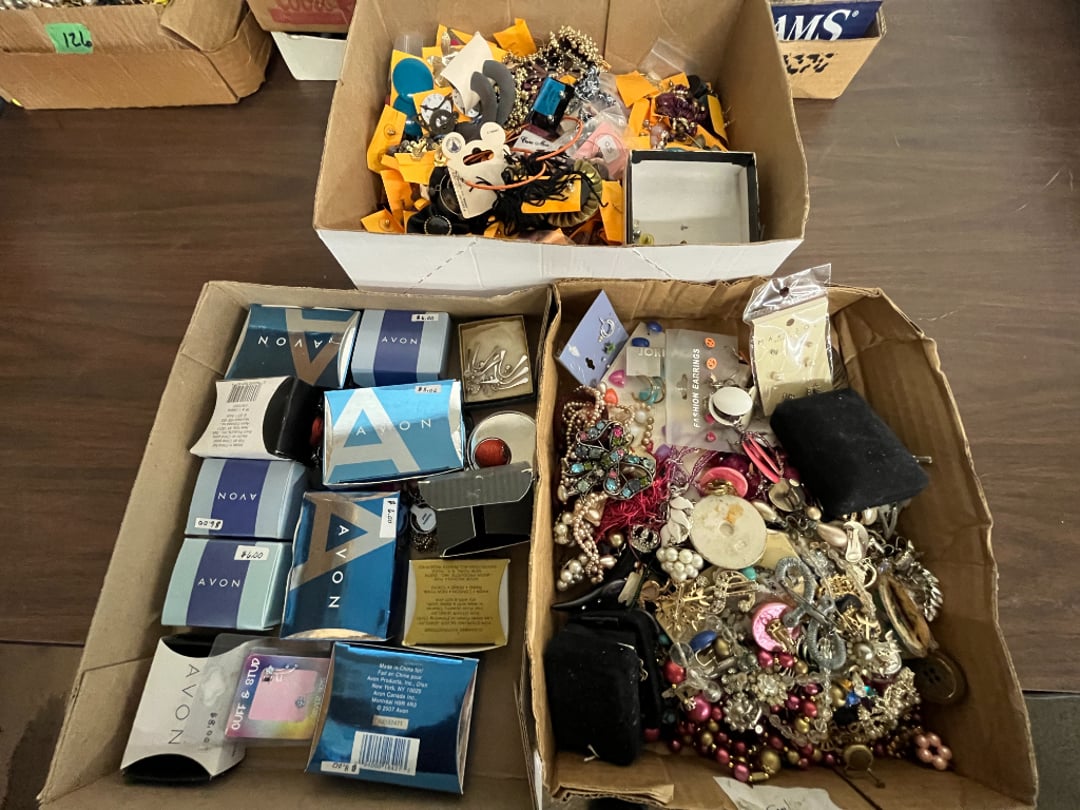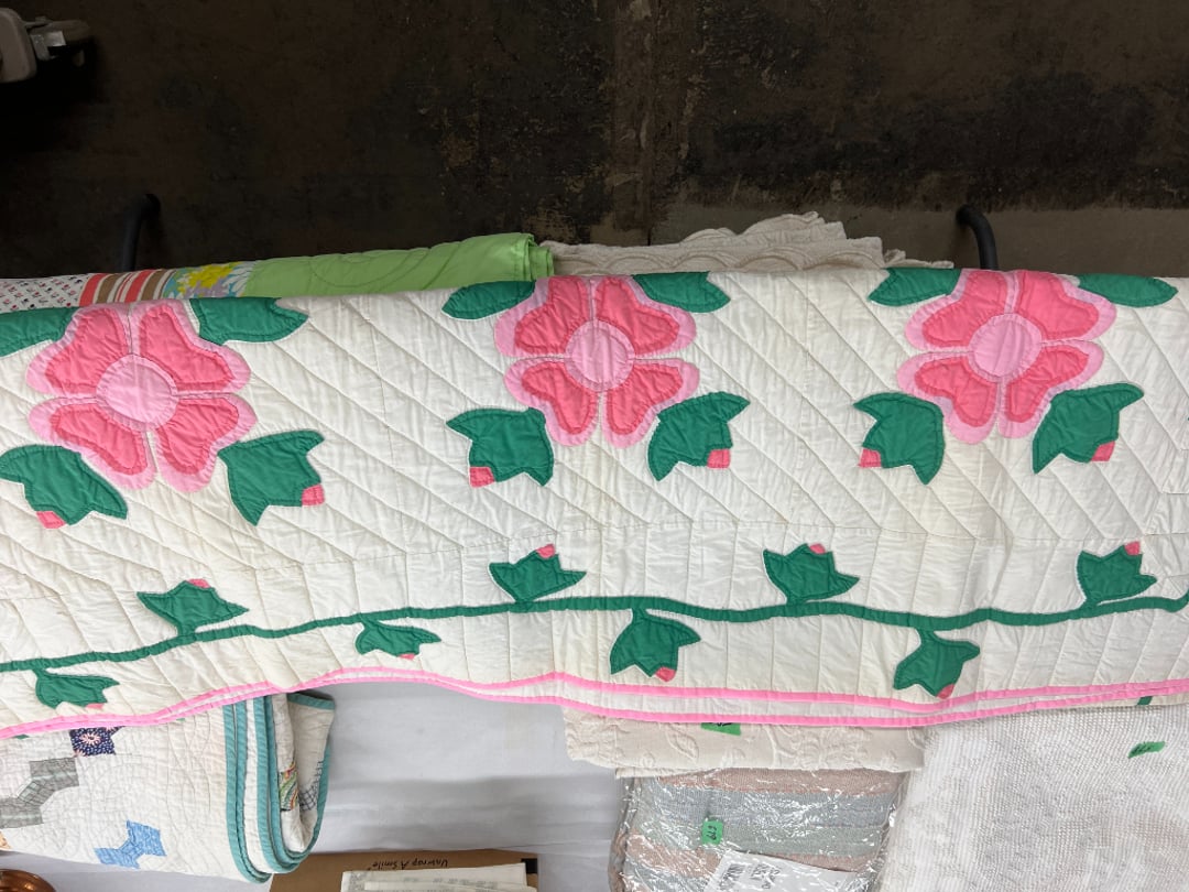 Butterfly Quilt 84" x 82", Child's Quilt 56"x48" & Blanket 47"x42", Knotted Bedspread 88"x60", 2 Vintage Quilts, 2 Vintage Quilts 82"x70" & 73"x52", Blow Mold Lighted Santa, Child's Oak & Bamboo Mirrored Dresser, NIB 55pc.Texas-Ware Dish Set, NIB 55pc.Texas-Ware Dish Set, Aroma Roaster Oven, Sylvania Ionizer Fan, Mini Yum Yum Machine, Sunbeam Ice Cream Maker, Rival Mini Meat Grinder/Stuffer, Waring Food Dehydrator, GoWise USA Pressure Cooker , Igloo Industrial 5 gal. Drink Cooler, Excalibur Food Dehydrator, Kenmore Microwave, Cooks Essential Steamer, Bella Fluted Cake Maker & Hand Mixer, JC Penny Oscillating Fan & Patton Fan, Rival Crock-Pot & NIB Handmixer, Magic Chef Ice Maker, Rival Crock-Pot , Wards Signature Ice Cream Maker, CorningWare Programmable Slow Cooker, DeLonghi 60 Cup Coffee Maker, West Bend Colonial Cooker , Rival Crock-Pot, Casserol Crock-Pot, West Bend Buffet Server , Sm. Crock-Pot & Rival Crock-Pot, Rival Crock-Pot & Frypan Electric Skillet, Presto Cast Aluminum Fry Pan, Euro-Pro Digital Slow Cooker, George Forman Evolve Grill , Sunbeam Carousel Rotisserie, Cuisinart Blender/Food Processor , Crosman 600 Pellet Gun, Fairport, NY, Walther CP 88 Competition Pellet Gun, "Benjamin Franklin" Air Pistol 177, Benjamin Franklin Air Pistol 110, Crosman "130" 22. Cal., GE AM/FM Radio Cassette Recorder, Panasonic FM/AM radio cassette recorder, SONY Audio/Video Control Center, 2 Car Radios, Car Radio CD Player, Magnavox Cassette Recorder, Miscellaneous Electronics, Vintage Marbles, Radio Shack CD player, radio, cassette , Alpine FM/AM CD Recieiver , Sharp CD, Radio, Cassette Player, (3) Window Fans - Holmes & Duracraft, Vintage Groom Kewpie Bisque Doll, Vintage Records (33-45-78), (2) Stock Pots - , Presto Pressure Cooker & Stock Pot, Stainless Steel Stock Pot & Kettle Pot, (2) Stock Pots - 1 lid, Wagner Ware Magnalite Roaster, Lg. Wagner Ware Magnalite Roaster, Griswold 2qt. Pot & Sullivan Ware Pot, Magnalite Roaster & Pot, 3 pc. Magnalite Pans, Wagner Ware Magnalite Roaster (no lid) , Majestic ware pot with handle, stock, 3 Wagner ware Magnalite pans, 2 Magnalite Roasters, Mirro 8 liter & 14 qt Wearever Stock Pots, Cooks essentials 16 qt SS stock pot, 10qt Revere Ware SS Stock Pot, 16qt Tramontina SS Stock Pot, Vollrath SS Stock Pot, (4) Costume Jewelry , (2) Flats Costume Jewelry , Costume jewelry, (2) flats of costume jewelry, (3) Jewelry boxes with contents, (2) Flats of costume jewelry, Jewelry Chest, Jewelry Organizer, (3) Containers costume jewelry, (2) Flat custom jewelry, (3) Containers custom jewelry, (6) Farberware Pots and pans, SS double boiler, SS Roasting pan -, (4) pc SS Altima Cookware, (2) Nordic Ware & (2) Bunt pan molds -, (2) Granite roasters, Wagner ware, 14" Enterprise pan, (15) Baking sheets 13"x18", (8) Bakeware & Cooling rack, Character cake pans, round pans,, Graniteware pan – like new, Antique enamel bucket with lid, (3) Jacks, Milwaukee heavy duty 61/2" Saw, Miscellaneous tools, (3) Red Coca-Cola crates, Vintage joy time ice skates, vintage, Whites metal detector, Large amount of miscellaneous drill bits, Earthway EV–N -Spred grass spreader, (2) NIB Lazer Tag Systems, toys, Handy Andy 20 piece carpenters, (2) Barbie dolls, Madeline tea set, Wooden bunny rocker, fisher price, NIB Big bird express train, plastic farm buildings, Galileo Thermometer, (2) Vintage picnic baskets, (6) Baskets, (72) CD's & CD Containers, Child's suitcase with wheels & contents, William Lewis and sons violin, (1) Hohner, (1) Friend Harmonica,, Hans Jurgen Violin with case , SYNSONICS Acoustic Guitar FG907, May Bell - Acoustic Guitar With case, May-Bell Acoustic Guitar in case, Tambourine, Del Oro Acoustic Guitar with strap, Johnson Traditional Ukulele, First Act MG366 Acoustic Guitar, Autoharp , Quarz Guitar Tuner, Lady Bug Mandolin, Remo Weather King Banjo, George Washburn Mandolin, Rocky Mountain Dulcimer, Acoustic guitar, OAHU Publishing company Guitar, Vintage keys, padlocks, keychains, Jewelry assortment and compacts, Costume jewelry assortment with heel spoon, Custom jewelry – rings, broaches, cuff , (4) Boxes costume jewelry, Costume Jewelry, (3) Show cases of Costume Jewelry, (2) Flats Custom Jewelry, (2) Flats Costume Jewelry, (2) Flats Costume Jewelry, (3) Flats Costume Jewelry, (2) Flats Costume Jewelry, (2) Flats Costume Jewelry, (2) Flats Costume Jewelry, (2) Flats Costume Jewelry, (2) Flats Costume Jewelry, (2) Flats Costume Jewelry, (2) Flats Costume Jewelry, (2) Flats Costume Jewelry, (2) Flats Costume Jewelry, (2) Flats Costume Jewelry, (2) Flats Costume Jewelry, (2) Flats Costume Jewelry, (2) Flats Costume Jewelry, (2) Flats Costume Jewelry, (2) Flats Costume Jewelry, (2) Flats Costume Jewelry, (2) Flats Costume Jewelry, (2) Flats Costume Jewelry, (2) Flats Costume Jewelry, (2) Flats Costume Jewelry, (2) Flats Costume Jewelry, (2) Flats Costume Jewelry, (4) Boxes of cookbooks, (4) Boxes of cookbooks, (3) Boxes of cookbooks, (4) Boxes of cookbooks, (4) Boxes of cookbooks, (4) Boxes of cookbooks, (3) Boxes of cookbooks, (7) Antique reference books- Jewelry,, (4) Antique reference books- Collectibles, (5) Antique reference books - Tools, flea, (4) Boxes children's books, (3) Boxes children's books, Vintage last supper picture, (2) Boxes Cookbooks, Eagle pictures, 36"x24" Indian painted on velvet, (2) Containers of children's books, Large amount of Junior elf books, (2) Boxes of children's books, Assortment of children's activities and, Disney princess activities, Children's lunch bags and toys, Whitehead Hoag Letter Opener, Lincoln National Bank – book bank, Southern pacific RR lines playing, (2)Fountain pens, braves trucking pencil, Foreign coins, Leather coin pouch, (3) Miniature guns - Ranger Zee & 1 made, 1960's Kusan Inc. Toy Cap Gun, Togepi POKEMON 1999 23K gold, Copper eagle and arrows letter opener, RadioShack handheld digital trunking, (2) Plastic containers of doll clothes/, Brass Elephant, cast iron dog, China egg, Chunky stamps, super set gear