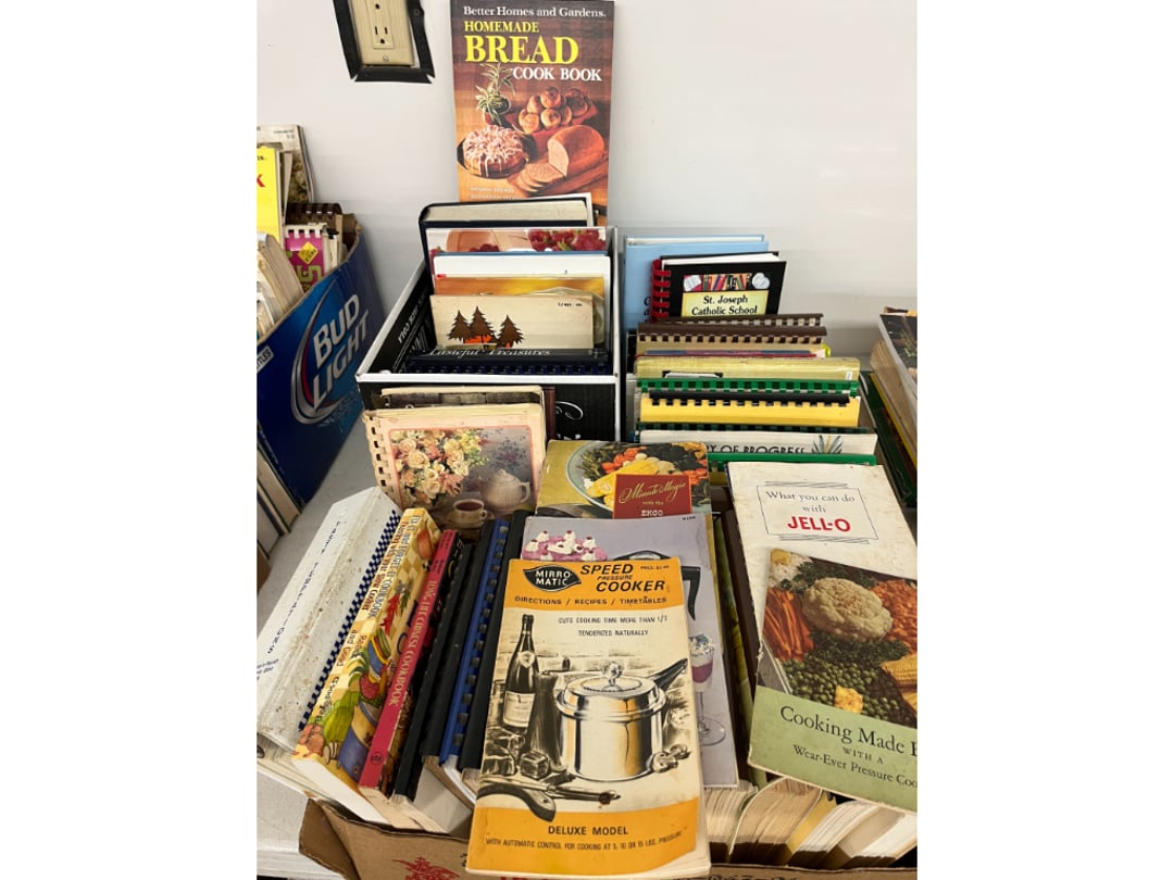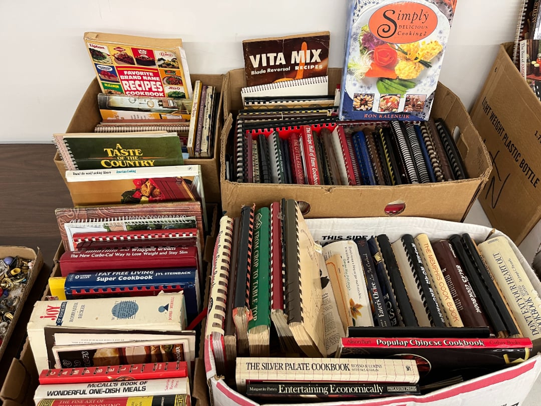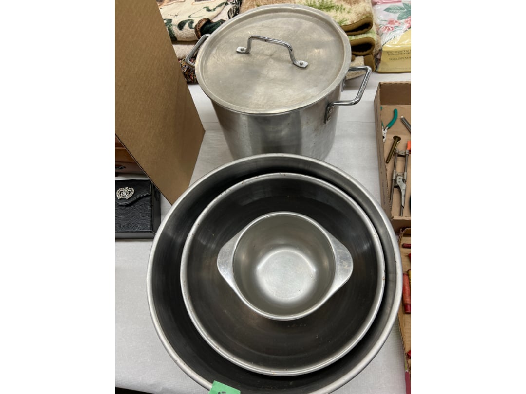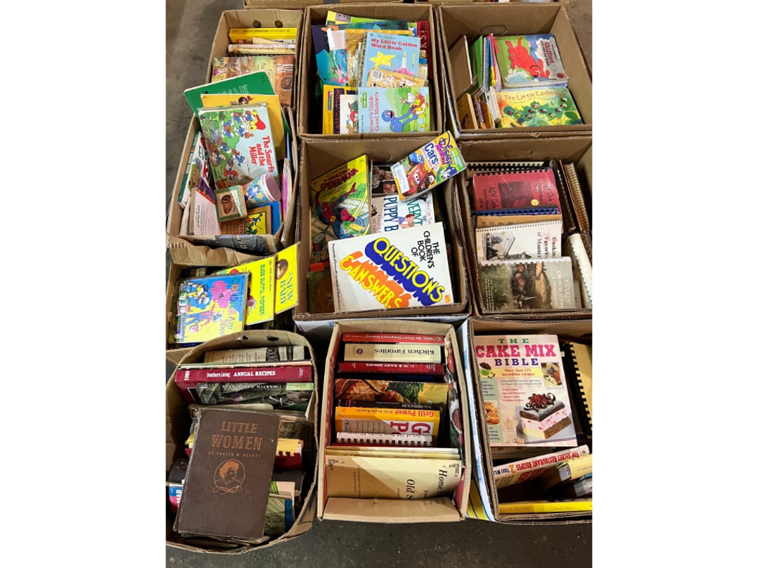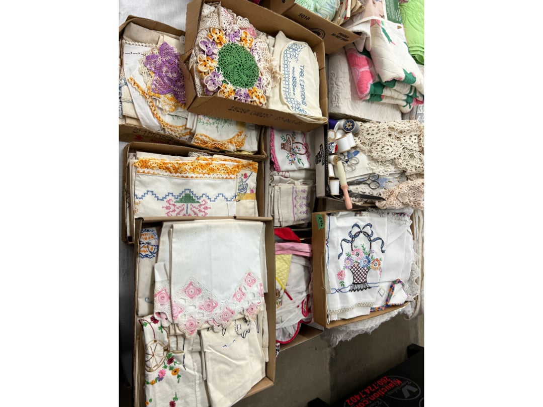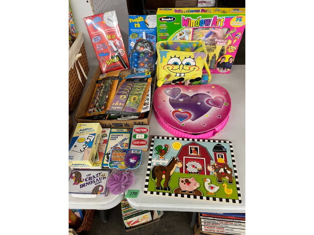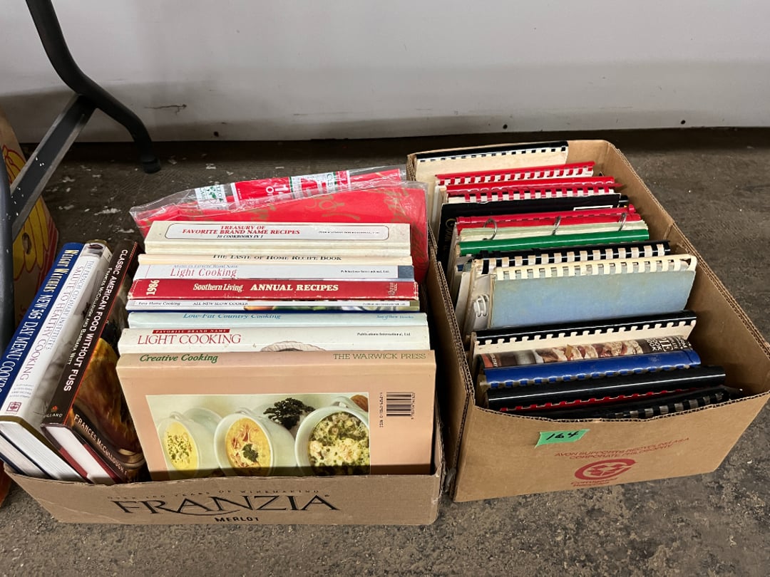 Butterfly Quilt 84" x 82", Child's Quilt 56"x48" & Blanket 47"x42", Knotted Bedspread 88"x60", 2 Vintage Quilts, 2 Vintage Quilts 82"x70" & 73"x52", Blow Mold Lighted Santa, Child's Oak & Bamboo Mirrored Dresser, NIB 55pc.Texas-Ware Dish Set, NIB 55pc.Texas-Ware Dish Set, Aroma Roaster Oven, Sylvania Ionizer Fan, Mini Yum Yum Machine, Sunbeam Ice Cream Maker, Rival Mini Meat Grinder/Stuffer, Waring Food Dehydrator, GoWise USA Pressure Cooker , Igloo Industrial 5 gal. Drink Cooler, Excalibur Food Dehydrator, Kenmore Microwave, Cooks Essential Steamer, Bella Fluted Cake Maker & Hand Mixer, JC Penny Oscillating Fan & Patton Fan, Rival Crock-Pot & NIB Handmixer, Magic Chef Ice Maker, Rival Crock-Pot , Wards Signature Ice Cream Maker, CorningWare Programmable Slow Cooker, DeLonghi 60 Cup Coffee Maker, West Bend Colonial Cooker , Rival Crock-Pot, Casserol Crock-Pot, West Bend Buffet Server , Sm. Crock-Pot & Rival Crock-Pot, Rival Crock-Pot & Frypan Electric Skillet, Presto Cast Aluminum Fry Pan, Euro-Pro Digital Slow Cooker, George Forman Evolve Grill , Sunbeam Carousel Rotisserie, Cuisinart Blender/Food Processor , Crosman 600 Pellet Gun, Fairport, NY, Walther CP 88 Competition Pellet Gun, "Benjamin Franklin" Air Pistol 177, Benjamin Franklin Air Pistol 110, Crosman "130" 22. Cal., GE AM/FM Radio Cassette Recorder, Panasonic FM/AM radio cassette recorder, SONY Audio/Video Control Center, 2 Car Radios, Car Radio CD Player, Magnavox Cassette Recorder, Miscellaneous Electronics, Vintage Marbles, Radio Shack CD player, radio, cassette , Alpine FM/AM CD Recieiver , Sharp CD, Radio, Cassette Player, (3) Window Fans - Holmes & Duracraft, Vintage Groom Kewpie Bisque Doll, Vintage Records (33-45-78), (2) Stock Pots - , Presto Pressure Cooker & Stock Pot, Stainless Steel Stock Pot & Kettle Pot, (2) Stock Pots - 1 lid, Wagner Ware Magnalite Roaster, Lg. Wagner Ware Magnalite Roaster, Griswold 2qt. Pot & Sullivan Ware Pot, Magnalite Roaster & Pot, 3 pc. Magnalite Pans, Wagner Ware Magnalite Roaster (no lid) , Majestic ware pot with handle, stock, 3 Wagner ware Magnalite pans, 2 Magnalite Roasters, Mirro 8 liter & 14 qt Wearever Stock Pots, Cooks essentials 16 qt SS stock pot, 10qt Revere Ware SS Stock Pot, 16qt Tramontina SS Stock Pot, Vollrath SS Stock Pot, (4) Costume Jewelry , (2) Flats Costume Jewelry , Costume jewelry, (2) flats of costume jewelry, (3) Jewelry boxes with contents, (2) Flats of costume jewelry, Jewelry Chest, Jewelry Organizer, (3) Containers costume jewelry, (2) Flat custom jewelry, (3) Containers custom jewelry, (6) Farberware Pots and pans, SS double boiler, SS Roasting pan -, (4) pc SS Altima Cookware, (2) Nordic Ware & (2) Bunt pan molds -, (2) Granite roasters, Wagner ware, 14" Enterprise pan, (15) Baking sheets 13"x18", (8) Bakeware & Cooling rack, Character cake pans, round pans,, Graniteware pan – like new, Antique enamel bucket with lid, (3) Jacks, Milwaukee heavy duty 61/2" Saw, Miscellaneous tools, (3) Red Coca-Cola crates, Vintage joy time ice skates, vintage, Whites metal detector, Large amount of miscellaneous drill bits, Earthway EV–N -Spred grass spreader, (2) NIB Lazer Tag Systems, toys, Handy Andy 20 piece carpenters, (2) Barbie dolls, Madeline tea set, Wooden bunny rocker, fisher price, NIB Big bird express train, plastic farm buildings, Galileo Thermometer, (2) Vintage picnic baskets, (6) Baskets, (72) CD's & CD Containers, Child's suitcase with wheels & contents, William Lewis and sons violin, (1) Hohner, (1) Friend Harmonica,, Hans Jurgen Violin with case , SYNSONICS Acoustic Guitar FG907, May Bell - Acoustic Guitar With case, May-Bell Acoustic Guitar in case, Tambourine, Del Oro Acoustic Guitar with strap, Johnson Traditional Ukulele, First Act MG366 Acoustic Guitar, Autoharp , Quarz Guitar Tuner, Lady Bug Mandolin, Remo Weather King Banjo, George Washburn Mandolin, Rocky Mountain Dulcimer, Acoustic guitar, OAHU Publishing company Guitar, Vintage keys, padlocks, keychains, Jewelry assortment and compacts, Costume jewelry assortment with heel spoon, Custom jewelry – rings, broaches, cuff , (4) Boxes costume jewelry, Costume Jewelry, (3) Show cases of Costume Jewelry, (2) Flats Custom Jewelry, (2) Flats Costume Jewelry, (2) Flats Costume Jewelry, (3) Flats Costume Jewelry, (2) Flats Costume Jewelry, (2) Flats Costume Jewelry, (2) Flats Costume Jewelry, (2) Flats Costume Jewelry, (2) Flats Costume Jewelry, (2) Flats Costume Jewelry, (2) Flats Costume Jewelry, (2) Flats Costume Jewelry, (2) Flats Costume Jewelry, (2) Flats Costume Jewelry, (2) Flats Costume Jewelry, (2) Flats Costume Jewelry, (2) Flats Costume Jewelry, (2) Flats Costume Jewelry, (2) Flats Costume Jewelry, (2) Flats Costume Jewelry, (2) Flats Costume Jewelry, (2) Flats Costume Jewelry, (2) Flats Costume Jewelry, (2) Flats Costume Jewelry, (2) Flats Costume Jewelry, (2) Flats Costume Jewelry, (4) Boxes of cookbooks, (4) Boxes of cookbooks, (3) Boxes of cookbooks, (4) Boxes of cookbooks, (4) Boxes of cookbooks, (4) Boxes of cookbooks, (3) Boxes of cookbooks, (7) Antique reference books- Jewelry,, (4) Antique reference books- Collectibles, (5) Antique reference books - Tools, flea, (4) Boxes children's books, (3) Boxes children's books, Vintage last supper picture, (2) Boxes Cookbooks, Eagle pictures, 36"x24" Indian painted on velvet, (2) Containers of children's books, Large amount of Junior elf books, (2) Boxes of children's books, Assortment of children's activities and, Disney princess activities, Children's lunch bags and toys, Whitehead Hoag Letter Opener, Lincoln National Bank – book bank, Southern pacific RR lines playing, (2)Fountain pens, braves trucking pencil, Foreign coins, Leather coin pouch, (3) Miniature guns - Ranger Zee & 1 made, 1960's Kusan Inc. Toy Cap Gun, Togepi POKEMON 1999 23K gold, Copper eagle and arrows letter opener, RadioShack handheld digital trunking, (2) Plastic containers of doll clothes/, Brass Elephant, cast iron dog, China egg, Chunky stamps, super set gear