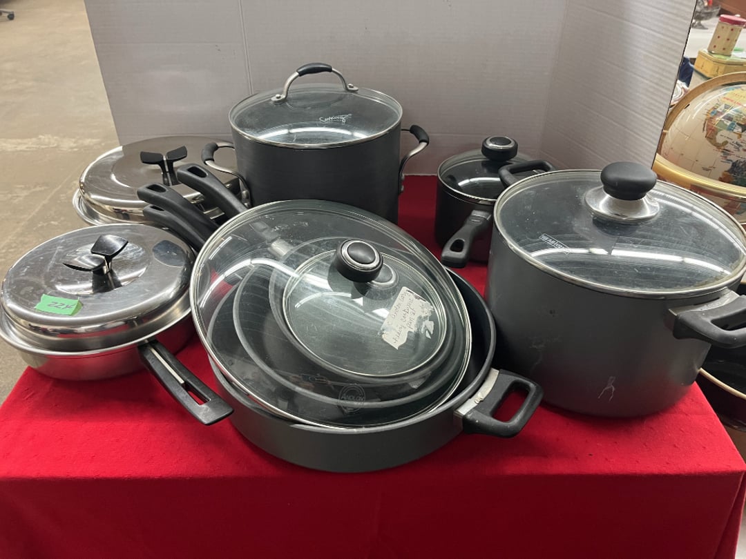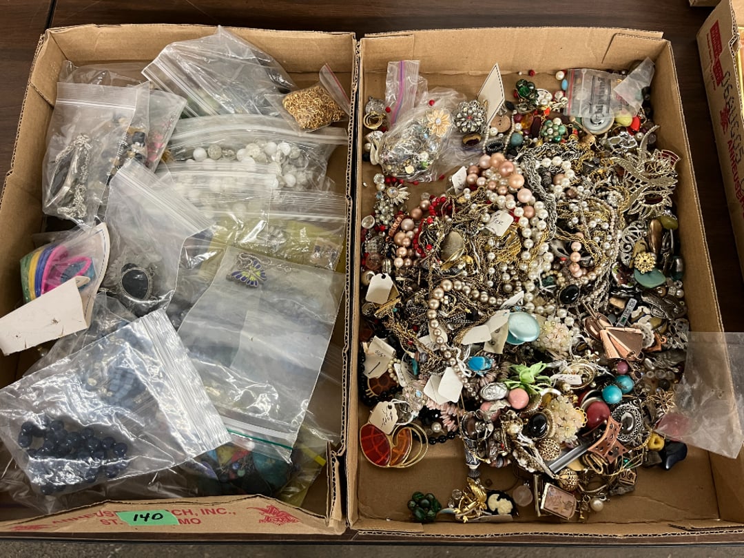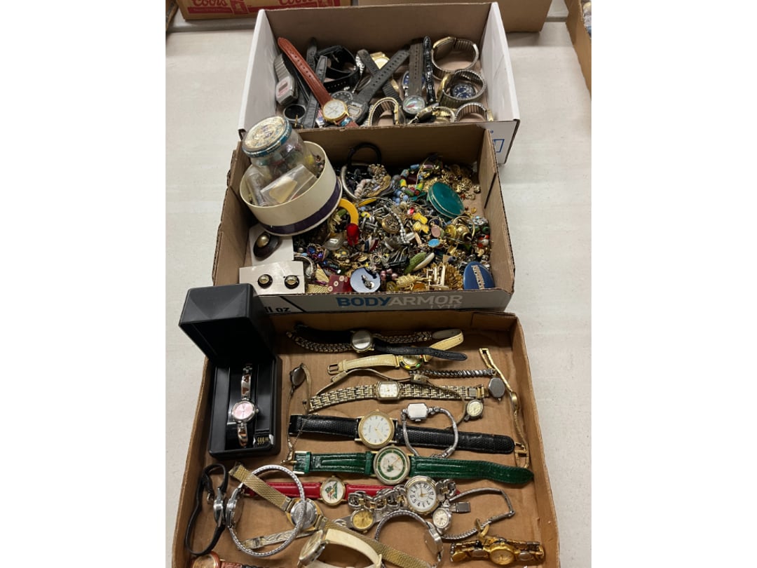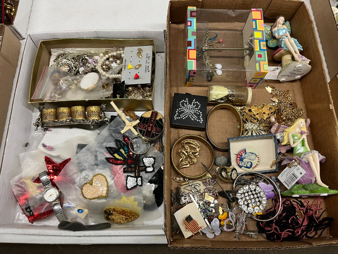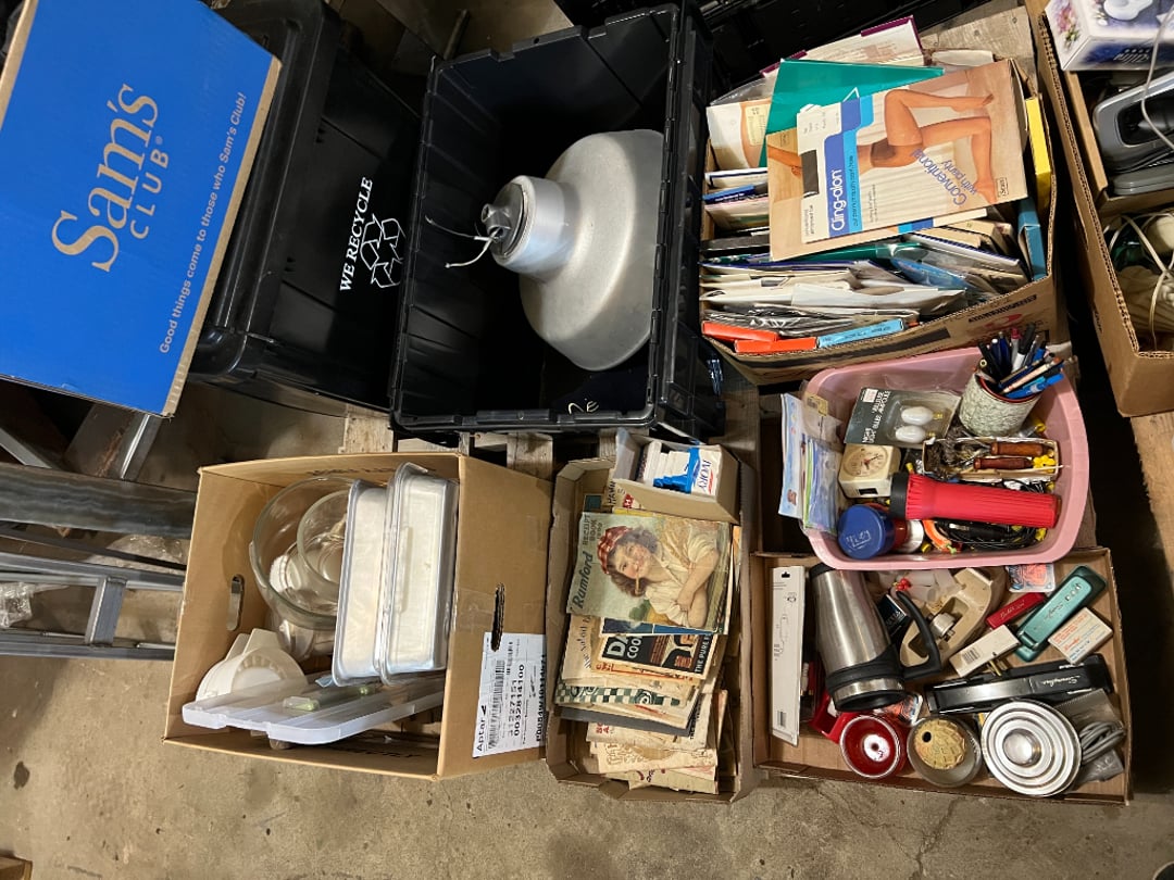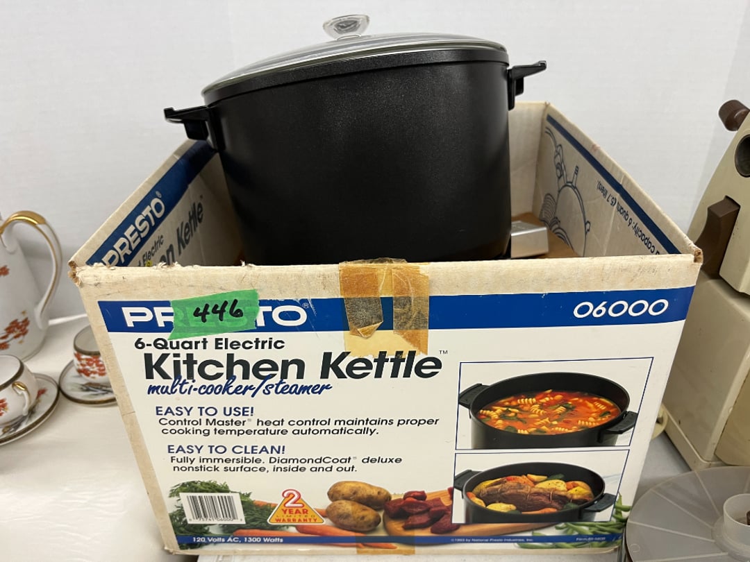 Butterfly Quilt 84" x 82", Child's Quilt 56"x48" & Blanket 47"x42", Knotted Bedspread 88"x60", 2 Vintage Quilts, 2 Vintage Quilts 82"x70" & 73"x52", Blow Mold Lighted Santa, Child's Oak & Bamboo Mirrored Dresser, NIB 55pc.Texas-Ware Dish Set, NIB 55pc.Texas-Ware Dish Set, Aroma Roaster Oven, Sylvania Ionizer Fan, Mini Yum Yum Machine, Sunbeam Ice Cream Maker, Rival Mini Meat Grinder/Stuffer, Waring Food Dehydrator, GoWise USA Pressure Cooker , Igloo Industrial 5 gal. Drink Cooler, Excalibur Food Dehydrator, Kenmore Microwave, Cooks Essential Steamer, Bella Fluted Cake Maker & Hand Mixer, JC Penny Oscillating Fan & Patton Fan, Rival Crock-Pot & NIB Handmixer, Magic Chef Ice Maker, Rival Crock-Pot , Wards Signature Ice Cream Maker, CorningWare Programmable Slow Cooker, DeLonghi 60 Cup Coffee Maker, West Bend Colonial Cooker , Rival Crock-Pot, Casserol Crock-Pot, West Bend Buffet Server , Sm. Crock-Pot & Rival Crock-Pot, Rival Crock-Pot & Frypan Electric Skillet, Presto Cast Aluminum Fry Pan, Euro-Pro Digital Slow Cooker, George Forman Evolve Grill , Sunbeam Carousel Rotisserie, Cuisinart Blender/Food Processor , Crosman 600 Pellet Gun, Fairport, NY, Walther CP 88 Competition Pellet Gun, "Benjamin Franklin" Air Pistol 177, Benjamin Franklin Air Pistol 110, Crosman "130" 22. Cal., GE AM/FM Radio Cassette Recorder, Panasonic FM/AM radio cassette recorder, SONY Audio/Video Control Center, 2 Car Radios, Car Radio CD Player, Magnavox Cassette Recorder, Miscellaneous Electronics, Vintage Marbles, Radio Shack CD player, radio, cassette , Alpine FM/AM CD Recieiver , Sharp CD, Radio, Cassette Player, (3) Window Fans - Holmes & Duracraft, Vintage Groom Kewpie Bisque Doll, Vintage Records (33-45-78), (2) Stock Pots - , Presto Pressure Cooker & Stock Pot, Stainless Steel Stock Pot & Kettle Pot, (2) Stock Pots - 1 lid, Wagner Ware Magnalite Roaster, Lg. Wagner Ware Magnalite Roaster, Griswold 2qt. Pot & Sullivan Ware Pot, Magnalite Roaster & Pot, 3 pc. Magnalite Pans, Wagner Ware Magnalite Roaster (no lid) , Majestic ware pot with handle, stock, 3 Wagner ware Magnalite pans, 2 Magnalite Roasters, Mirro 8 liter & 14 qt Wearever Stock Pots, Cooks essentials 16 qt SS stock pot, 10qt Revere Ware SS Stock Pot, 16qt Tramontina SS Stock Pot, Vollrath SS Stock Pot, (4) Costume Jewelry , (2) Flats Costume Jewelry , Costume jewelry, (2) flats of costume jewelry, (3) Jewelry boxes with contents, (2) Flats of costume jewelry, Jewelry Chest, Jewelry Organizer, (3) Containers costume jewelry, (2) Flat custom jewelry, (3) Containers custom jewelry, (6) Farberware Pots and pans, SS double boiler, SS Roasting pan -, (4) pc SS Altima Cookware, (2) Nordic Ware & (2) Bunt pan molds -, (2) Granite roasters, Wagner ware, 14" Enterprise pan, (15) Baking sheets 13"x18", (8) Bakeware & Cooling rack, Character cake pans, round pans,, Graniteware pan – like new, Antique enamel bucket with lid, (3) Jacks, Milwaukee heavy duty 61/2" Saw, Miscellaneous tools, (3) Red Coca-Cola crates, Vintage joy time ice skates, vintage, Whites metal detector, Large amount of miscellaneous drill bits, Earthway EV–N -Spred grass spreader, (2) NIB Lazer Tag Systems, toys, Handy Andy 20 piece carpenters, (2) Barbie dolls, Madeline tea set, Wooden bunny rocker, fisher price, NIB Big bird express train, plastic farm buildings, Galileo Thermometer, (2) Vintage picnic baskets, (6) Baskets, (72) CD's & CD Containers, Child's suitcase with wheels & contents, William Lewis and sons violin, (1) Hohner, (1) Friend Harmonica,, Hans Jurgen Violin with case , SYNSONICS Acoustic Guitar FG907, May Bell - Acoustic Guitar With case, May-Bell Acoustic Guitar in case, Tambourine, Del Oro Acoustic Guitar with strap, Johnson Traditional Ukulele, First Act MG366 Acoustic Guitar, Autoharp , Quarz Guitar Tuner, Lady Bug Mandolin, Remo Weather King Banjo, George Washburn Mandolin, Rocky Mountain Dulcimer, Acoustic guitar, OAHU Publishing company Guitar, Vintage keys, padlocks, keychains, Jewelry assortment and compacts, Costume jewelry assortment with heel spoon, Custom jewelry – rings, broaches, cuff , (4) Boxes costume jewelry, Costume Jewelry, (3) Show cases of Costume Jewelry, (2) Flats Custom Jewelry, (2) Flats Costume Jewelry, (2) Flats Costume Jewelry, (3) Flats Costume Jewelry, (2) Flats Costume Jewelry, (2) Flats Costume Jewelry, (2) Flats Costume Jewelry, (2) Flats Costume Jewelry, (2) Flats Costume Jewelry, (2) Flats Costume Jewelry, (2) Flats Costume Jewelry, (2) Flats Costume Jewelry, (2) Flats Costume Jewelry, (2) Flats Costume Jewelry, (2) Flats Costume Jewelry, (2) Flats Costume Jewelry, (2) Flats Costume Jewelry, (2) Flats Costume Jewelry, (2) Flats Costume Jewelry, (2) Flats Costume Jewelry, (2) Flats Costume Jewelry, (2) Flats Costume Jewelry, (2) Flats Costume Jewelry, (2) Flats Costume Jewelry, (2) Flats Costume Jewelry, (2) Flats Costume Jewelry, (4) Boxes of cookbooks, (4) Boxes of cookbooks, (3) Boxes of cookbooks, (4) Boxes of cookbooks, (4) Boxes of cookbooks, (4) Boxes of cookbooks, (3) Boxes of cookbooks, (7) Antique reference books- Jewelry,, (4) Antique reference books- Collectibles, (5) Antique reference books - Tools, flea, (4) Boxes children's books, (3) Boxes children's books, Vintage last supper picture, (2) Boxes Cookbooks, Eagle pictures, 36"x24" Indian painted on velvet, (2) Containers of children's books, Large amount of Junior elf books, (2) Boxes of children's books, Assortment of children's activities and, Disney princess activities, Children's lunch bags and toys, Whitehead Hoag Letter Opener, Lincoln National Bank – book bank, Southern pacific RR lines playing, (2)Fountain pens, braves trucking pencil, Foreign coins, Leather coin pouch, (3) Miniature guns - Ranger Zee & 1 made, 1960's Kusan Inc. Toy Cap Gun, Togepi POKEMON 1999 23K gold, Copper eagle and arrows letter opener, RadioShack handheld digital trunking, (2) Plastic containers of doll clothes/, Brass Elephant, cast iron dog, China egg, Chunky stamps, super set gear