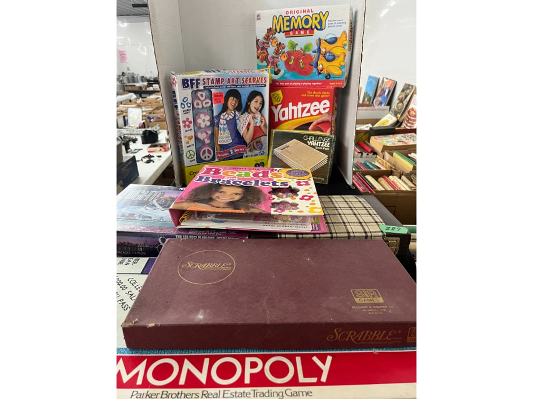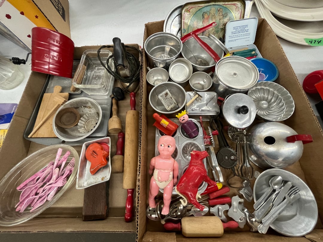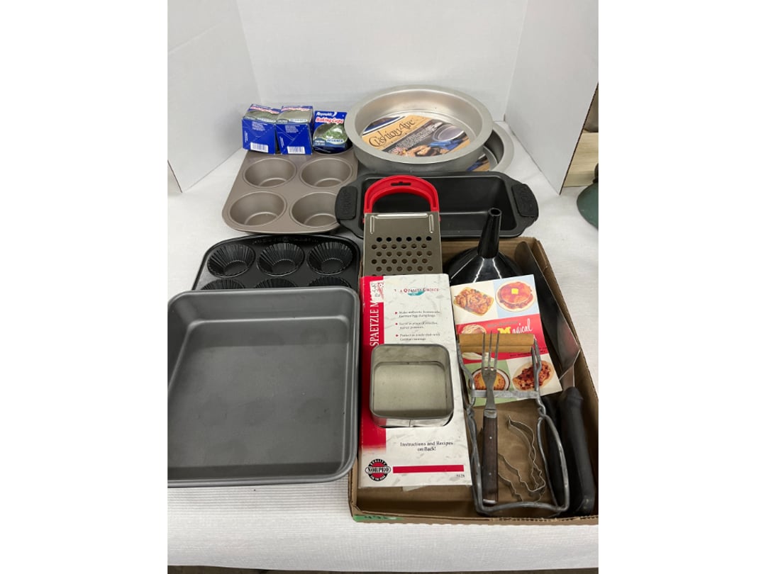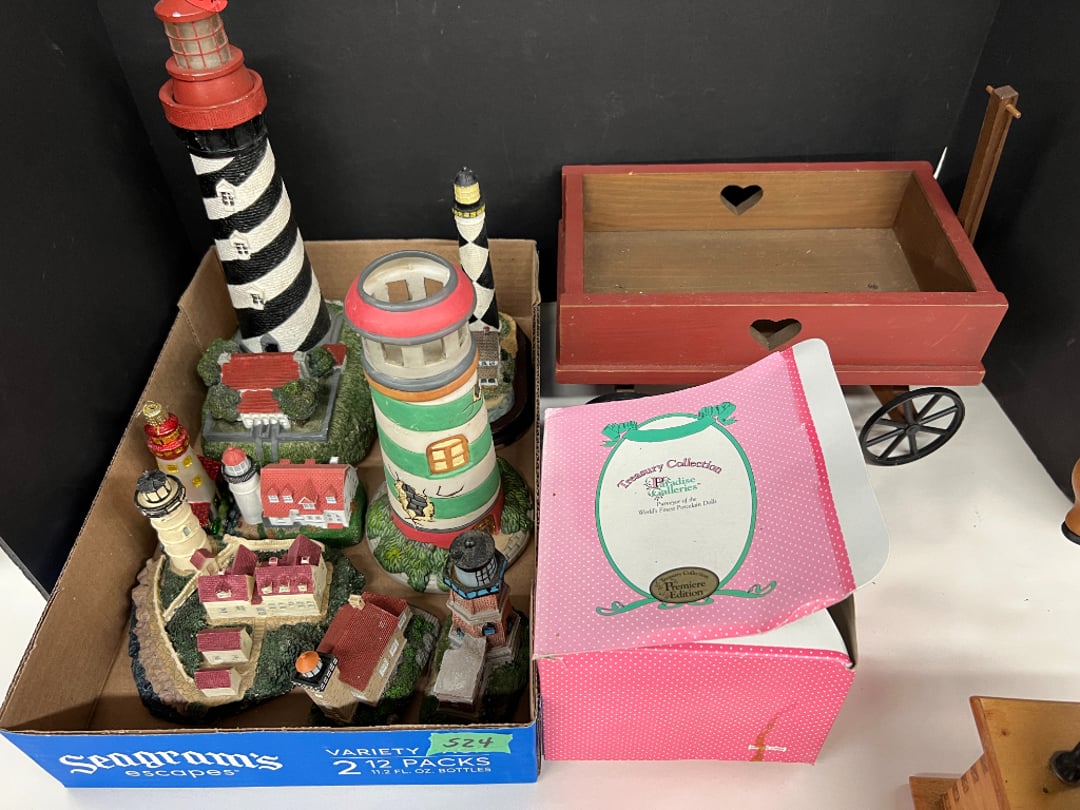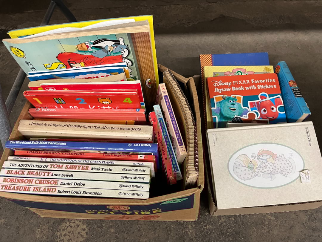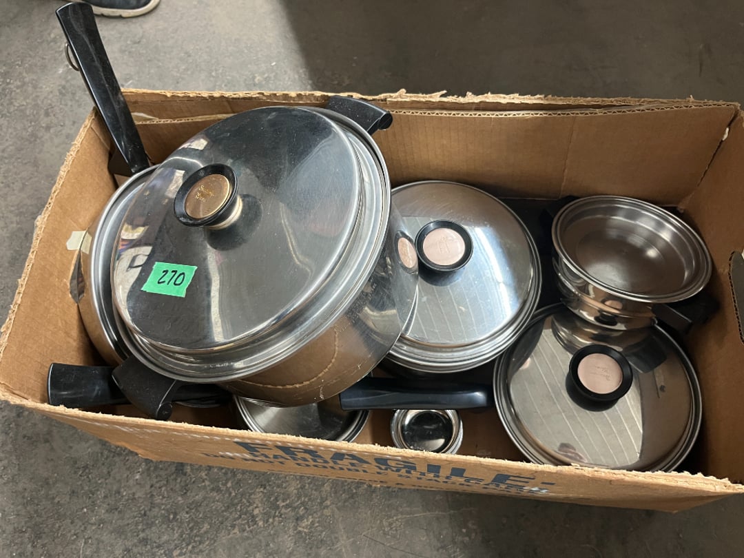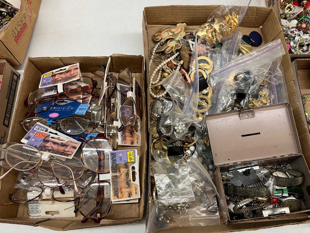 Butterfly Quilt 84" x 82", Child's Quilt 56"x48" & Blanket 47"x42", Knotted Bedspread 88"x60", 2 Vintage Quilts, 2 Vintage Quilts 82"x70" & 73"x52", Blow Mold Lighted Santa, Child's Oak & Bamboo Mirrored Dresser, NIB 55pc.Texas-Ware Dish Set, NIB 55pc.Texas-Ware Dish Set, Aroma Roaster Oven, Sylvania Ionizer Fan, Mini Yum Yum Machine, Sunbeam Ice Cream Maker, Rival Mini Meat Grinder/Stuffer, Waring Food Dehydrator, GoWise USA Pressure Cooker , Igloo Industrial 5 gal. Drink Cooler, Excalibur Food Dehydrator, Kenmore Microwave, Cooks Essential Steamer, Bella Fluted Cake Maker & Hand Mixer, JC Penny Oscillating Fan & Patton Fan, Rival Crock-Pot & NIB Handmixer, Magic Chef Ice Maker, Rival Crock-Pot , Wards Signature Ice Cream Maker, CorningWare Programmable Slow Cooker, DeLonghi 60 Cup Coffee Maker, West Bend Colonial Cooker , Rival Crock-Pot, Casserol Crock-Pot, West Bend Buffet Server , Sm. Crock-Pot & Rival Crock-Pot, Rival Crock-Pot & Frypan Electric Skillet, Presto Cast Aluminum Fry Pan, Euro-Pro Digital Slow Cooker, George Forman Evolve Grill , Sunbeam Carousel Rotisserie, Cuisinart Blender/Food Processor , Crosman 600 Pellet Gun, Fairport, NY, Walther CP 88 Competition Pellet Gun, "Benjamin Franklin" Air Pistol 177, Benjamin Franklin Air Pistol 110, Crosman "130" 22. Cal., GE AM/FM Radio Cassette Recorder, Panasonic FM/AM radio cassette recorder, SONY Audio/Video Control Center, 2 Car Radios, Car Radio CD Player, Magnavox Cassette Recorder, Miscellaneous Electronics, Vintage Marbles, Radio Shack CD player, radio, cassette , Alpine FM/AM CD Recieiver , Sharp CD, Radio, Cassette Player, (3) Window Fans - Holmes & Duracraft, Vintage Groom Kewpie Bisque Doll, Vintage Records (33-45-78), (2) Stock Pots - , Presto Pressure Cooker & Stock Pot, Stainless Steel Stock Pot & Kettle Pot, (2) Stock Pots - 1 lid, Wagner Ware Magnalite Roaster, Lg. Wagner Ware Magnalite Roaster, Griswold 2qt. Pot & Sullivan Ware Pot, Magnalite Roaster & Pot, 3 pc. Magnalite Pans, Wagner Ware Magnalite Roaster (no lid) , Majestic ware pot with handle, stock, 3 Wagner ware Magnalite pans, 2 Magnalite Roasters, Mirro 8 liter & 14 qt Wearever Stock Pots, Cooks essentials 16 qt SS stock pot, 10qt Revere Ware SS Stock Pot, 16qt Tramontina SS Stock Pot, Vollrath SS Stock Pot, (4) Costume Jewelry , (2) Flats Costume Jewelry , Costume jewelry, (2) flats of costume jewelry, (3) Jewelry boxes with contents, (2) Flats of costume jewelry, Jewelry Chest, Jewelry Organizer, (3) Containers costume jewelry, (2) Flat custom jewelry, (3) Containers custom jewelry, (6) Farberware Pots and pans, SS double boiler, SS Roasting pan -, (4) pc SS Altima Cookware, (2) Nordic Ware & (2) Bunt pan molds -, (2) Granite roasters, Wagner ware, 14" Enterprise pan, (15) Baking sheets 13"x18", (8) Bakeware & Cooling rack, Character cake pans, round pans,, Graniteware pan – like new, Antique enamel bucket with lid, (3) Jacks, Milwaukee heavy duty 61/2" Saw, Miscellaneous tools, (3) Red Coca-Cola crates, Vintage joy time ice skates, vintage, Whites metal detector, Large amount of miscellaneous drill bits, Earthway EV–N -Spred grass spreader, (2) NIB Lazer Tag Systems, toys, Handy Andy 20 piece carpenters, (2) Barbie dolls, Madeline tea set, Wooden bunny rocker, fisher price, NIB Big bird express train, plastic farm buildings, Galileo Thermometer, (2) Vintage picnic baskets, (6) Baskets, (72) CD's & CD Containers, Child's suitcase with wheels & contents, William Lewis and sons violin, (1) Hohner, (1) Friend Harmonica,, Hans Jurgen Violin with case , SYNSONICS Acoustic Guitar FG907, May Bell - Acoustic Guitar With case, May-Bell Acoustic Guitar in case, Tambourine, Del Oro Acoustic Guitar with strap, Johnson Traditional Ukulele, First Act MG366 Acoustic Guitar, Autoharp , Quarz Guitar Tuner, Lady Bug Mandolin, Remo Weather King Banjo, George Washburn Mandolin, Rocky Mountain Dulcimer, Acoustic guitar, OAHU Publishing company Guitar, Vintage keys, padlocks, keychains, Jewelry assortment and compacts, Costume jewelry assortment with heel spoon, Custom jewelry – rings, broaches, cuff , (4) Boxes costume jewelry, Costume Jewelry, (3) Show cases of Costume Jewelry, (2) Flats Custom Jewelry, (2) Flats Costume Jewelry, (2) Flats Costume Jewelry, (3) Flats Costume Jewelry, (2) Flats Costume Jewelry, (2) Flats Costume Jewelry, (2) Flats Costume Jewelry, (2) Flats Costume Jewelry, (2) Flats Costume Jewelry, (2) Flats Costume Jewelry, (2) Flats Costume Jewelry, (2) Flats Costume Jewelry, (2) Flats Costume Jewelry, (2) Flats Costume Jewelry, (2) Flats Costume Jewelry, (2) Flats Costume Jewelry, (2) Flats Costume Jewelry, (2) Flats Costume Jewelry, (2) Flats Costume Jewelry, (2) Flats Costume Jewelry, (2) Flats Costume Jewelry, (2) Flats Costume Jewelry, (2) Flats Costume Jewelry, (2) Flats Costume Jewelry, (2) Flats Costume Jewelry, (2) Flats Costume Jewelry, (4) Boxes of cookbooks, (4) Boxes of cookbooks, (3) Boxes of cookbooks, (4) Boxes of cookbooks, (4) Boxes of cookbooks, (4) Boxes of cookbooks, (3) Boxes of cookbooks, (7) Antique reference books- Jewelry,, (4) Antique reference books- Collectibles, (5) Antique reference books - Tools, flea, (4) Boxes children's books, (3) Boxes children's books, Vintage last supper picture, (2) Boxes Cookbooks, Eagle pictures, 36"x24" Indian painted on velvet, (2) Containers of children's books, Large amount of Junior elf books, (2) Boxes of children's books, Assortment of children's activities and, Disney princess activities, Children's lunch bags and toys, Whitehead Hoag Letter Opener, Lincoln National Bank – book bank, Southern pacific RR lines playing, (2)Fountain pens, braves trucking pencil, Foreign coins, Leather coin pouch, (3) Miniature guns - Ranger Zee & 1 made, 1960's Kusan Inc. Toy Cap Gun, Togepi POKEMON 1999 23K gold, Copper eagle and arrows letter opener, RadioShack handheld digital trunking, (2) Plastic containers of doll clothes/, Brass Elephant, cast iron dog, China egg, Chunky stamps, super set gear