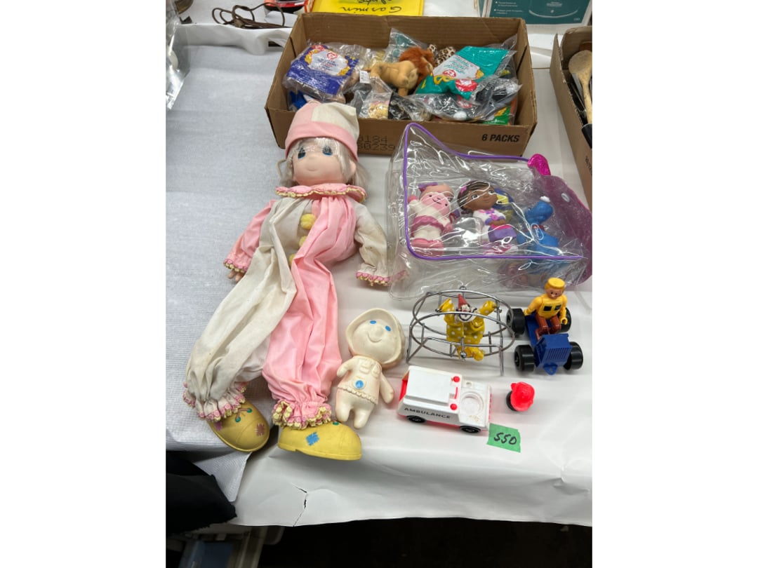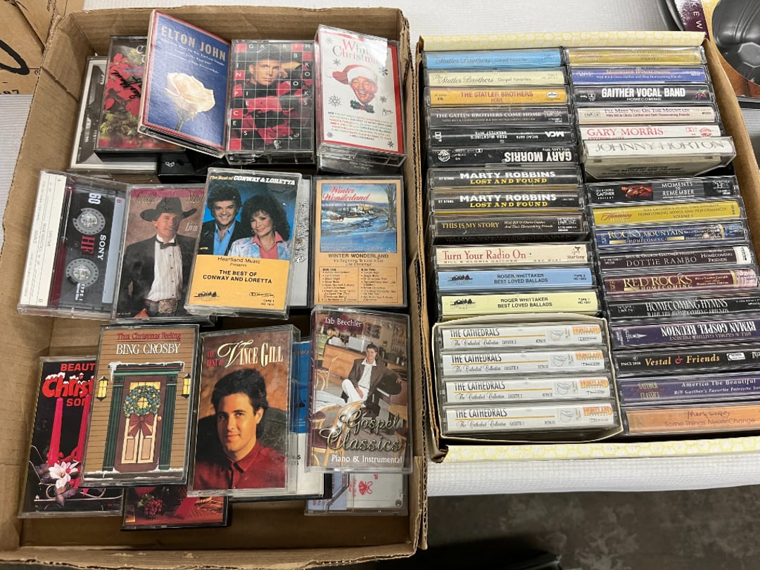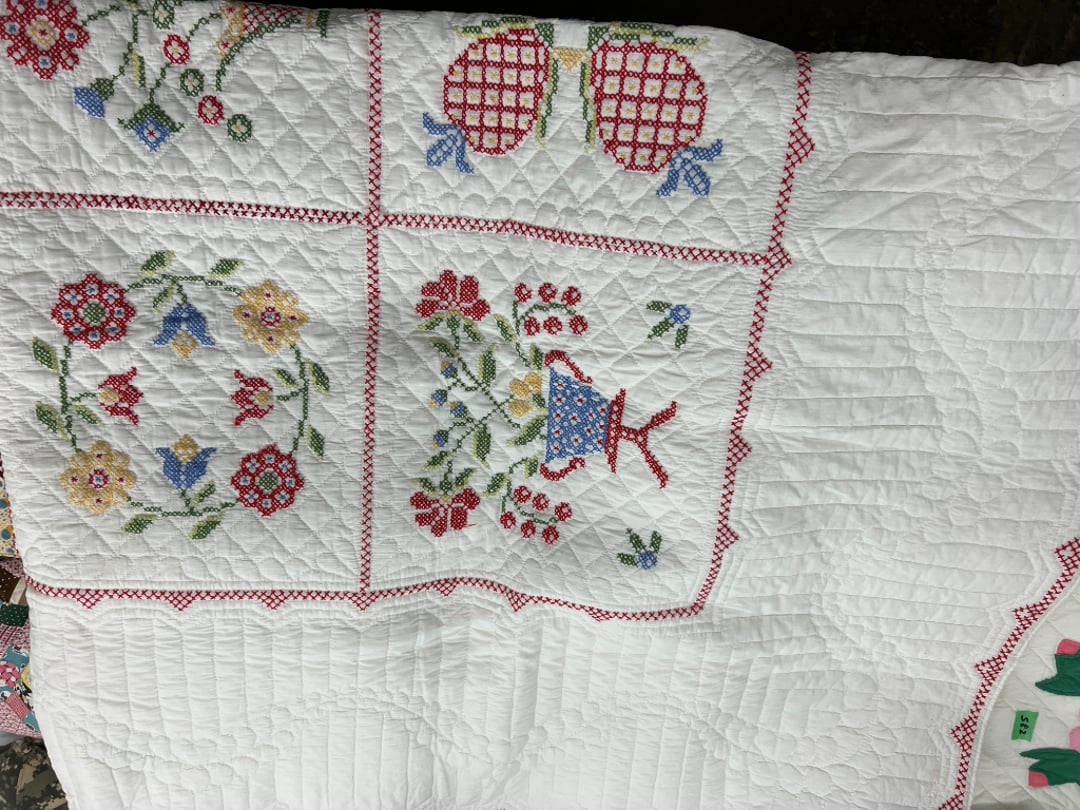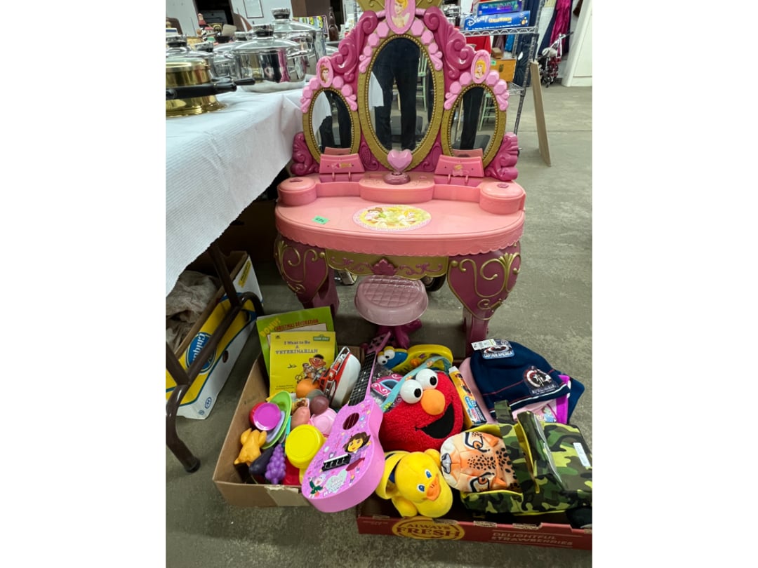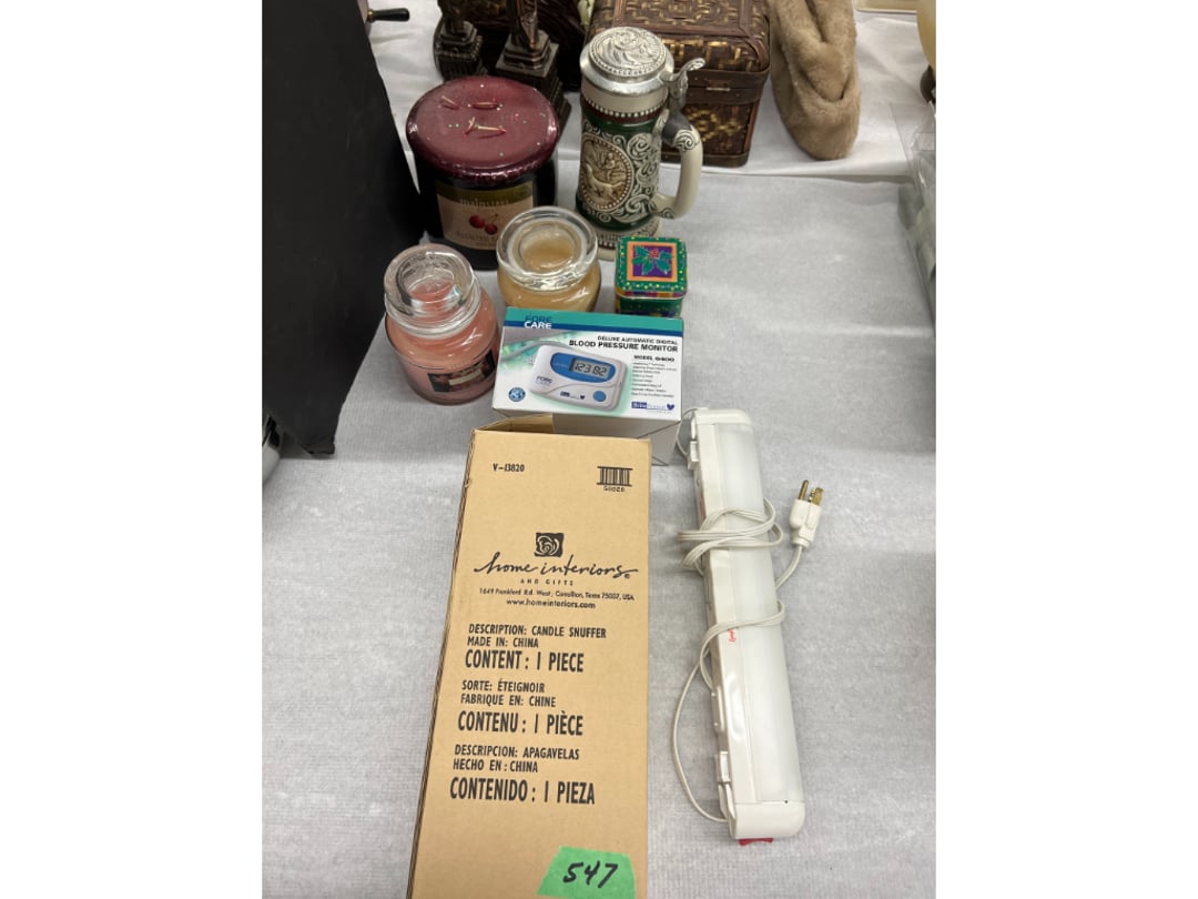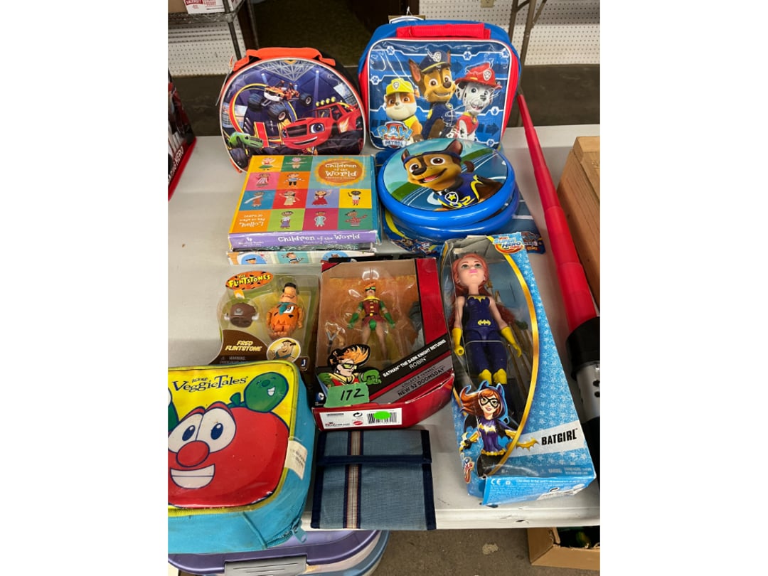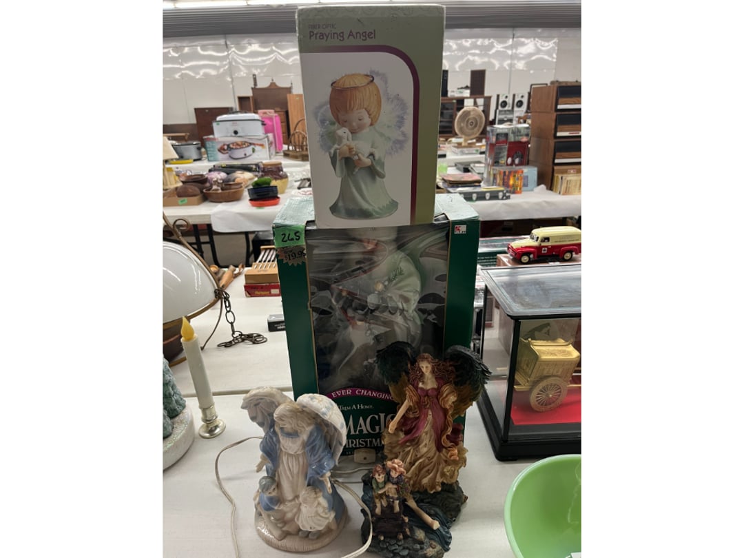 Butterfly Quilt 84" x 82", Child's Quilt 56"x48" & Blanket 47"x42", Knotted Bedspread 88"x60", 2 Vintage Quilts, 2 Vintage Quilts 82"x70" & 73"x52", Blow Mold Lighted Santa, Child's Oak & Bamboo Mirrored Dresser, NIB 55pc.Texas-Ware Dish Set, NIB 55pc.Texas-Ware Dish Set, Aroma Roaster Oven, Sylvania Ionizer Fan, Mini Yum Yum Machine, Sunbeam Ice Cream Maker, Rival Mini Meat Grinder/Stuffer, Waring Food Dehydrator, GoWise USA Pressure Cooker , Igloo Industrial 5 gal. Drink Cooler, Excalibur Food Dehydrator, Kenmore Microwave, Cooks Essential Steamer, Bella Fluted Cake Maker & Hand Mixer, JC Penny Oscillating Fan & Patton Fan, Rival Crock-Pot & NIB Handmixer, Magic Chef Ice Maker, Rival Crock-Pot , Wards Signature Ice Cream Maker, CorningWare Programmable Slow Cooker, DeLonghi 60 Cup Coffee Maker, West Bend Colonial Cooker , Rival Crock-Pot, Casserol Crock-Pot, West Bend Buffet Server , Sm. Crock-Pot & Rival Crock-Pot, Rival Crock-Pot & Frypan Electric Skillet, Presto Cast Aluminum Fry Pan, Euro-Pro Digital Slow Cooker, George Forman Evolve Grill , Sunbeam Carousel Rotisserie, Cuisinart Blender/Food Processor , Crosman 600 Pellet Gun, Fairport, NY, Walther CP 88 Competition Pellet Gun, "Benjamin Franklin" Air Pistol 177, Benjamin Franklin Air Pistol 110, Crosman "130" 22. Cal., GE AM/FM Radio Cassette Recorder, Panasonic FM/AM radio cassette recorder, SONY Audio/Video Control Center, 2 Car Radios, Car Radio CD Player, Magnavox Cassette Recorder, Miscellaneous Electronics, Vintage Marbles, Radio Shack CD player, radio, cassette , Alpine FM/AM CD Recieiver , Sharp CD, Radio, Cassette Player, (3) Window Fans - Holmes & Duracraft, Vintage Groom Kewpie Bisque Doll, Vintage Records (33-45-78), (2) Stock Pots - , Presto Pressure Cooker & Stock Pot, Stainless Steel Stock Pot & Kettle Pot, (2) Stock Pots - 1 lid, Wagner Ware Magnalite Roaster, Lg. Wagner Ware Magnalite Roaster, Griswold 2qt. Pot & Sullivan Ware Pot, Magnalite Roaster & Pot, 3 pc. Magnalite Pans, Wagner Ware Magnalite Roaster (no lid) , Majestic ware pot with handle, stock, 3 Wagner ware Magnalite pans, 2 Magnalite Roasters, Mirro 8 liter & 14 qt Wearever Stock Pots, Cooks essentials 16 qt SS stock pot, 10qt Revere Ware SS Stock Pot, 16qt Tramontina SS Stock Pot, Vollrath SS Stock Pot, (4) Costume Jewelry , (2) Flats Costume Jewelry , Costume jewelry, (2) flats of costume jewelry, (3) Jewelry boxes with contents, (2) Flats of costume jewelry, Jewelry Chest, Jewelry Organizer, (3) Containers costume jewelry, (2) Flat custom jewelry, (3) Containers custom jewelry, (6) Farberware Pots and pans, SS double boiler, SS Roasting pan -, (4) pc SS Altima Cookware, (2) Nordic Ware & (2) Bunt pan molds -, (2) Granite roasters, Wagner ware, 14" Enterprise pan, (15) Baking sheets 13"x18", (8) Bakeware & Cooling rack, Character cake pans, round pans,, Graniteware pan – like new, Antique enamel bucket with lid, (3) Jacks, Milwaukee heavy duty 61/2" Saw, Miscellaneous tools, (3) Red Coca-Cola crates, Vintage joy time ice skates, vintage, Whites metal detector, Large amount of miscellaneous drill bits, Earthway EV–N -Spred grass spreader, (2) NIB Lazer Tag Systems, toys, Handy Andy 20 piece carpenters, (2) Barbie dolls, Madeline tea set, Wooden bunny rocker, fisher price, NIB Big bird express train, plastic farm buildings, Galileo Thermometer, (2) Vintage picnic baskets, (6) Baskets, (72) CD's & CD Containers, Child's suitcase with wheels & contents, William Lewis and sons violin, (1) Hohner, (1) Friend Harmonica,, Hans Jurgen Violin with case , SYNSONICS Acoustic Guitar FG907, May Bell - Acoustic Guitar With case, May-Bell Acoustic Guitar in case, Tambourine, Del Oro Acoustic Guitar with strap, Johnson Traditional Ukulele, First Act MG366 Acoustic Guitar, Autoharp , Quarz Guitar Tuner, Lady Bug Mandolin, Remo Weather King Banjo, George Washburn Mandolin, Rocky Mountain Dulcimer, Acoustic guitar, OAHU Publishing company Guitar, Vintage keys, padlocks, keychains, Jewelry assortment and compacts, Costume jewelry assortment with heel spoon, Custom jewelry – rings, broaches, cuff , (4) Boxes costume jewelry, Costume Jewelry, (3) Show cases of Costume Jewelry, (2) Flats Custom Jewelry, (2) Flats Costume Jewelry, (2) Flats Costume Jewelry, (3) Flats Costume Jewelry, (2) Flats Costume Jewelry, (2) Flats Costume Jewelry, (2) Flats Costume Jewelry, (2) Flats Costume Jewelry, (2) Flats Costume Jewelry, (2) Flats Costume Jewelry, (2) Flats Costume Jewelry, (2) Flats Costume Jewelry, (2) Flats Costume Jewelry, (2) Flats Costume Jewelry, (2) Flats Costume Jewelry, (2) Flats Costume Jewelry, (2) Flats Costume Jewelry, (2) Flats Costume Jewelry, (2) Flats Costume Jewelry, (2) Flats Costume Jewelry, (2) Flats Costume Jewelry, (2) Flats Costume Jewelry, (2) Flats Costume Jewelry, (2) Flats Costume Jewelry, (2) Flats Costume Jewelry, (2) Flats Costume Jewelry, (4) Boxes of cookbooks, (4) Boxes of cookbooks, (3) Boxes of cookbooks, (4) Boxes of cookbooks, (4) Boxes of cookbooks, (4) Boxes of cookbooks, (3) Boxes of cookbooks, (7) Antique reference books- Jewelry,, (4) Antique reference books- Collectibles, (5) Antique reference books - Tools, flea, (4) Boxes children's books, (3) Boxes children's books, Vintage last supper picture, (2) Boxes Cookbooks, Eagle pictures, 36"x24" Indian painted on velvet, (2) Containers of children's books, Large amount of Junior elf books, (2) Boxes of children's books, Assortment of children's activities and, Disney princess activities, Children's lunch bags and toys, Whitehead Hoag Letter Opener, Lincoln National Bank – book bank, Southern pacific RR lines playing, (2)Fountain pens, braves trucking pencil, Foreign coins, Leather coin pouch, (3) Miniature guns - Ranger Zee & 1 made, 1960's Kusan Inc. Toy Cap Gun, Togepi POKEMON 1999 23K gold, Copper eagle and arrows letter opener, RadioShack handheld digital trunking, (2) Plastic containers of doll clothes/, Brass Elephant, cast iron dog, China egg, Chunky stamps, super set gear