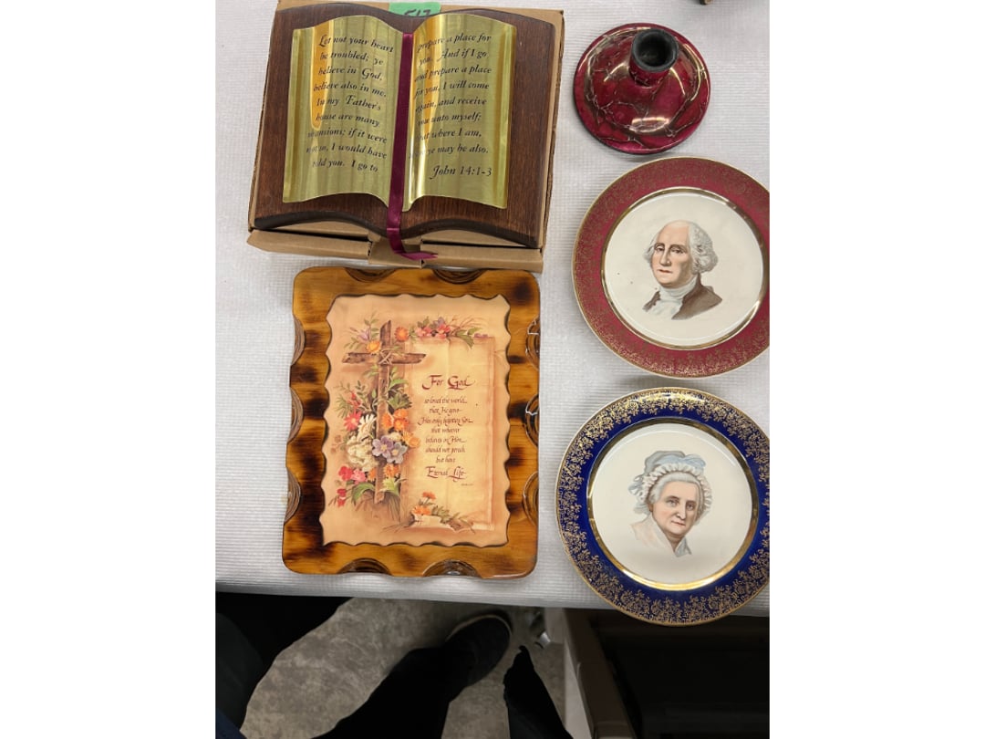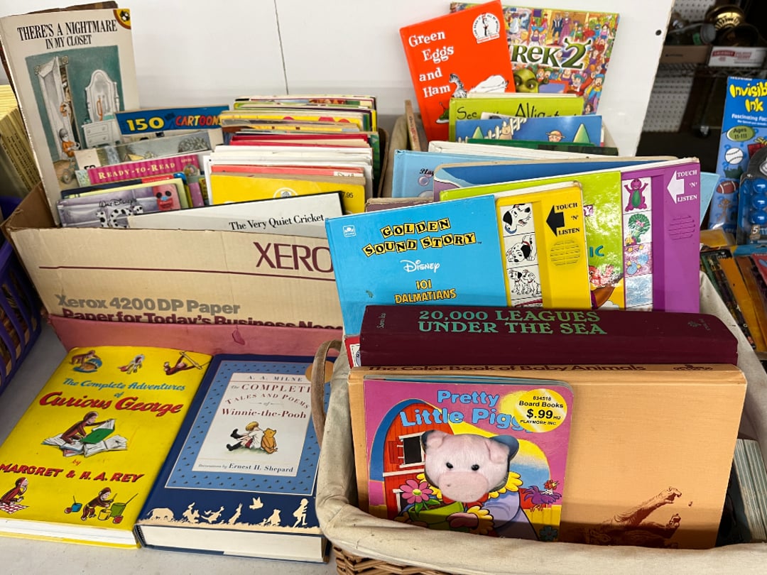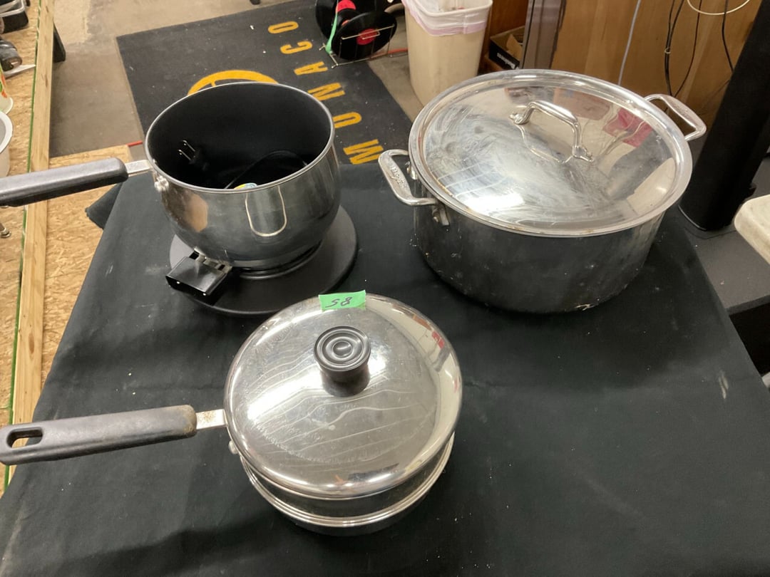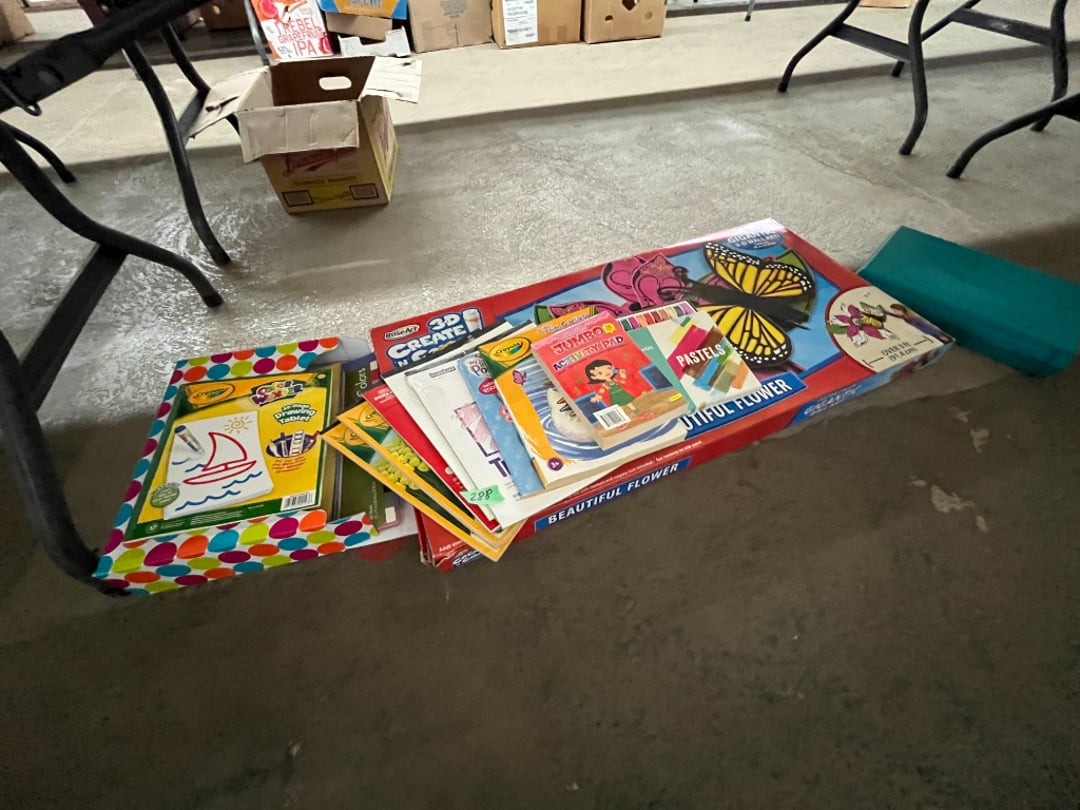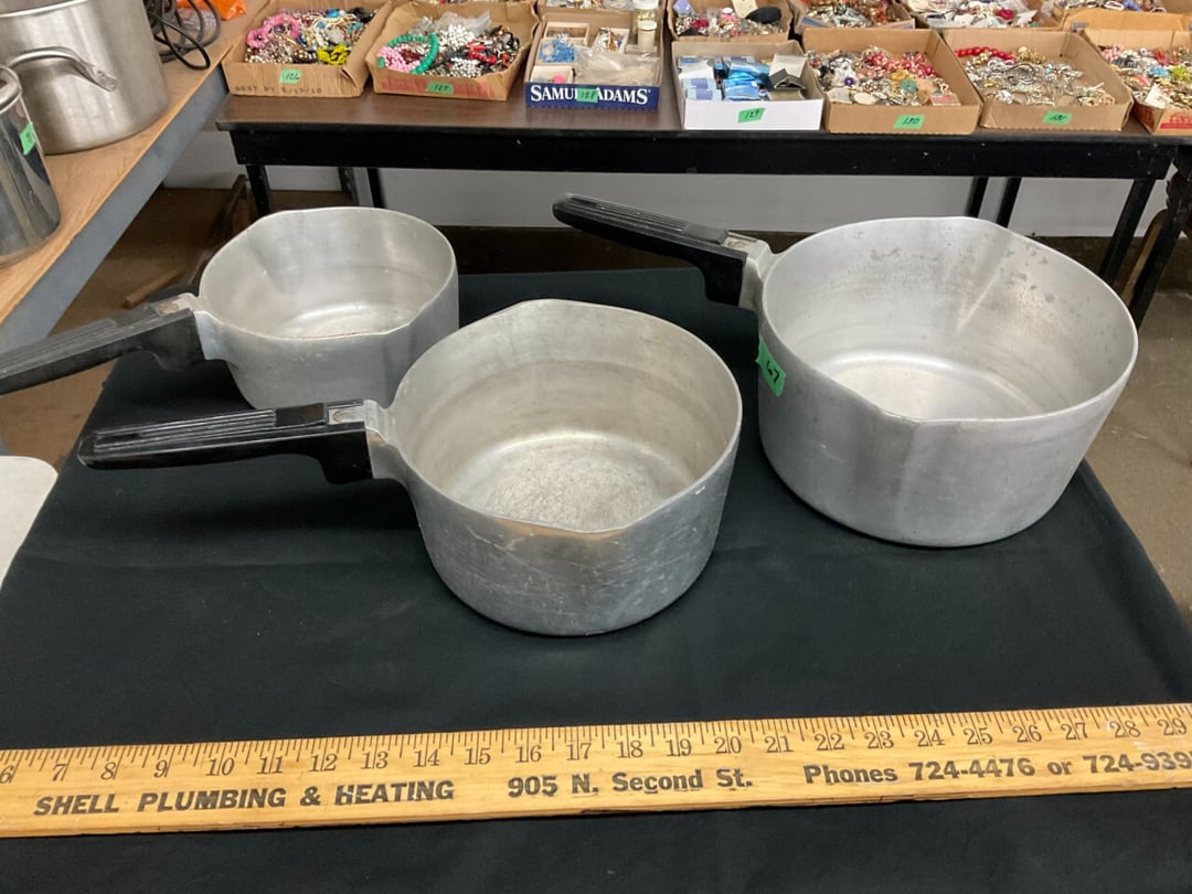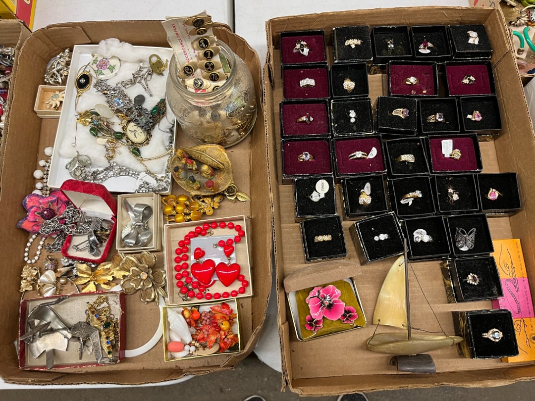 Butterfly Quilt 84" x 82", Child's Quilt 56"x48" & Blanket 47"x42", Knotted Bedspread 88"x60", 2 Vintage Quilts, 2 Vintage Quilts 82"x70" & 73"x52", Blow Mold Lighted Santa, Child's Oak & Bamboo Mirrored Dresser, NIB 55pc.Texas-Ware Dish Set, NIB 55pc.Texas-Ware Dish Set, Aroma Roaster Oven, Sylvania Ionizer Fan, Mini Yum Yum Machine, Sunbeam Ice Cream Maker, Rival Mini Meat Grinder/Stuffer, Waring Food Dehydrator, GoWise USA Pressure Cooker , Igloo Industrial 5 gal. Drink Cooler, Excalibur Food Dehydrator, Kenmore Microwave, Cooks Essential Steamer, Bella Fluted Cake Maker & Hand Mixer, JC Penny Oscillating Fan & Patton Fan, Rival Crock-Pot & NIB Handmixer, Magic Chef Ice Maker, Rival Crock-Pot , Wards Signature Ice Cream Maker, CorningWare Programmable Slow Cooker, DeLonghi 60 Cup Coffee Maker, West Bend Colonial Cooker , Rival Crock-Pot, Casserol Crock-Pot, West Bend Buffet Server , Sm. Crock-Pot & Rival Crock-Pot, Rival Crock-Pot & Frypan Electric Skillet, Presto Cast Aluminum Fry Pan, Euro-Pro Digital Slow Cooker, George Forman Evolve Grill , Sunbeam Carousel Rotisserie, Cuisinart Blender/Food Processor , Crosman 600 Pellet Gun, Fairport, NY, Walther CP 88 Competition Pellet Gun, "Benjamin Franklin" Air Pistol 177, Benjamin Franklin Air Pistol 110, Crosman "130" 22. Cal., GE AM/FM Radio Cassette Recorder, Panasonic FM/AM radio cassette recorder, SONY Audio/Video Control Center, 2 Car Radios, Car Radio CD Player, Magnavox Cassette Recorder, Miscellaneous Electronics, Vintage Marbles, Radio Shack CD player, radio, cassette , Alpine FM/AM CD Recieiver , Sharp CD, Radio, Cassette Player, (3) Window Fans - Holmes & Duracraft, Vintage Groom Kewpie Bisque Doll, Vintage Records (33-45-78), (2) Stock Pots - , Presto Pressure Cooker & Stock Pot, Stainless Steel Stock Pot & Kettle Pot, (2) Stock Pots - 1 lid, Wagner Ware Magnalite Roaster, Lg. Wagner Ware Magnalite Roaster, Griswold 2qt. Pot & Sullivan Ware Pot, Magnalite Roaster & Pot, 3 pc. Magnalite Pans, Wagner Ware Magnalite Roaster (no lid) , Majestic ware pot with handle, stock, 3 Wagner ware Magnalite pans, 2 Magnalite Roasters, Mirro 8 liter & 14 qt Wearever Stock Pots, Cooks essentials 16 qt SS stock pot, 10qt Revere Ware SS Stock Pot, 16qt Tramontina SS Stock Pot, Vollrath SS Stock Pot, (4) Costume Jewelry , (2) Flats Costume Jewelry , Costume jewelry, (2) flats of costume jewelry, (3) Jewelry boxes with contents, (2) Flats of costume jewelry, Jewelry Chest, Jewelry Organizer, (3) Containers costume jewelry, (2) Flat custom jewelry, (3) Containers custom jewelry, (6) Farberware Pots and pans, SS double boiler, SS Roasting pan -, (4) pc SS Altima Cookware, (2) Nordic Ware & (2) Bunt pan molds -, (2) Granite roasters, Wagner ware, 14" Enterprise pan, (15) Baking sheets 13"x18", (8) Bakeware & Cooling rack, Character cake pans, round pans,, Graniteware pan – like new, Antique enamel bucket with lid, (3) Jacks, Milwaukee heavy duty 61/2" Saw, Miscellaneous tools, (3) Red Coca-Cola crates, Vintage joy time ice skates, vintage, Whites metal detector, Large amount of miscellaneous drill bits, Earthway EV–N -Spred grass spreader, (2) NIB Lazer Tag Systems, toys, Handy Andy 20 piece carpenters, (2) Barbie dolls, Madeline tea set, Wooden bunny rocker, fisher price, NIB Big bird express train, plastic farm buildings, Galileo Thermometer, (2) Vintage picnic baskets, (6) Baskets, (72) CD's & CD Containers, Child's suitcase with wheels & contents, William Lewis and sons violin, (1) Hohner, (1) Friend Harmonica,, Hans Jurgen Violin with case , SYNSONICS Acoustic Guitar FG907, May Bell - Acoustic Guitar With case, May-Bell Acoustic Guitar in case, Tambourine, Del Oro Acoustic Guitar with strap, Johnson Traditional Ukulele, First Act MG366 Acoustic Guitar, Autoharp , Quarz Guitar Tuner, Lady Bug Mandolin, Remo Weather King Banjo, George Washburn Mandolin, Rocky Mountain Dulcimer, Acoustic guitar, OAHU Publishing company Guitar, Vintage keys, padlocks, keychains, Jewelry assortment and compacts, Costume jewelry assortment with heel spoon, Custom jewelry – rings, broaches, cuff , (4) Boxes costume jewelry, Costume Jewelry, (3) Show cases of Costume Jewelry, (2) Flats Custom Jewelry, (2) Flats Costume Jewelry, (2) Flats Costume Jewelry, (3) Flats Costume Jewelry, (2) Flats Costume Jewelry, (2) Flats Costume Jewelry, (2) Flats Costume Jewelry, (2) Flats Costume Jewelry, (2) Flats Costume Jewelry, (2) Flats Costume Jewelry, (2) Flats Costume Jewelry, (2) Flats Costume Jewelry, (2) Flats Costume Jewelry, (2) Flats Costume Jewelry, (2) Flats Costume Jewelry, (2) Flats Costume Jewelry, (2) Flats Costume Jewelry, (2) Flats Costume Jewelry, (2) Flats Costume Jewelry, (2) Flats Costume Jewelry, (2) Flats Costume Jewelry, (2) Flats Costume Jewelry, (2) Flats Costume Jewelry, (2) Flats Costume Jewelry, (2) Flats Costume Jewelry, (2) Flats Costume Jewelry, (4) Boxes of cookbooks, (4) Boxes of cookbooks, (3) Boxes of cookbooks, (4) Boxes of cookbooks, (4) Boxes of cookbooks, (4) Boxes of cookbooks, (3) Boxes of cookbooks, (7) Antique reference books- Jewelry,, (4) Antique reference books- Collectibles, (5) Antique reference books - Tools, flea, (4) Boxes children's books, (3) Boxes children's books, Vintage last supper picture, (2) Boxes Cookbooks, Eagle pictures, 36"x24" Indian painted on velvet, (2) Containers of children's books, Large amount of Junior elf books, (2) Boxes of children's books, Assortment of children's activities and, Disney princess activities, Children's lunch bags and toys, Whitehead Hoag Letter Opener, Lincoln National Bank – book bank, Southern pacific RR lines playing, (2)Fountain pens, braves trucking pencil, Foreign coins, Leather coin pouch, (3) Miniature guns - Ranger Zee & 1 made, 1960's Kusan Inc. Toy Cap Gun, Togepi POKEMON 1999 23K gold, Copper eagle and arrows letter opener, RadioShack handheld digital trunking, (2) Plastic containers of doll clothes/, Brass Elephant, cast iron dog, China egg, Chunky stamps, super set gear
