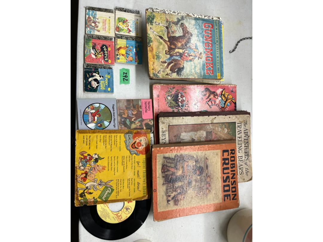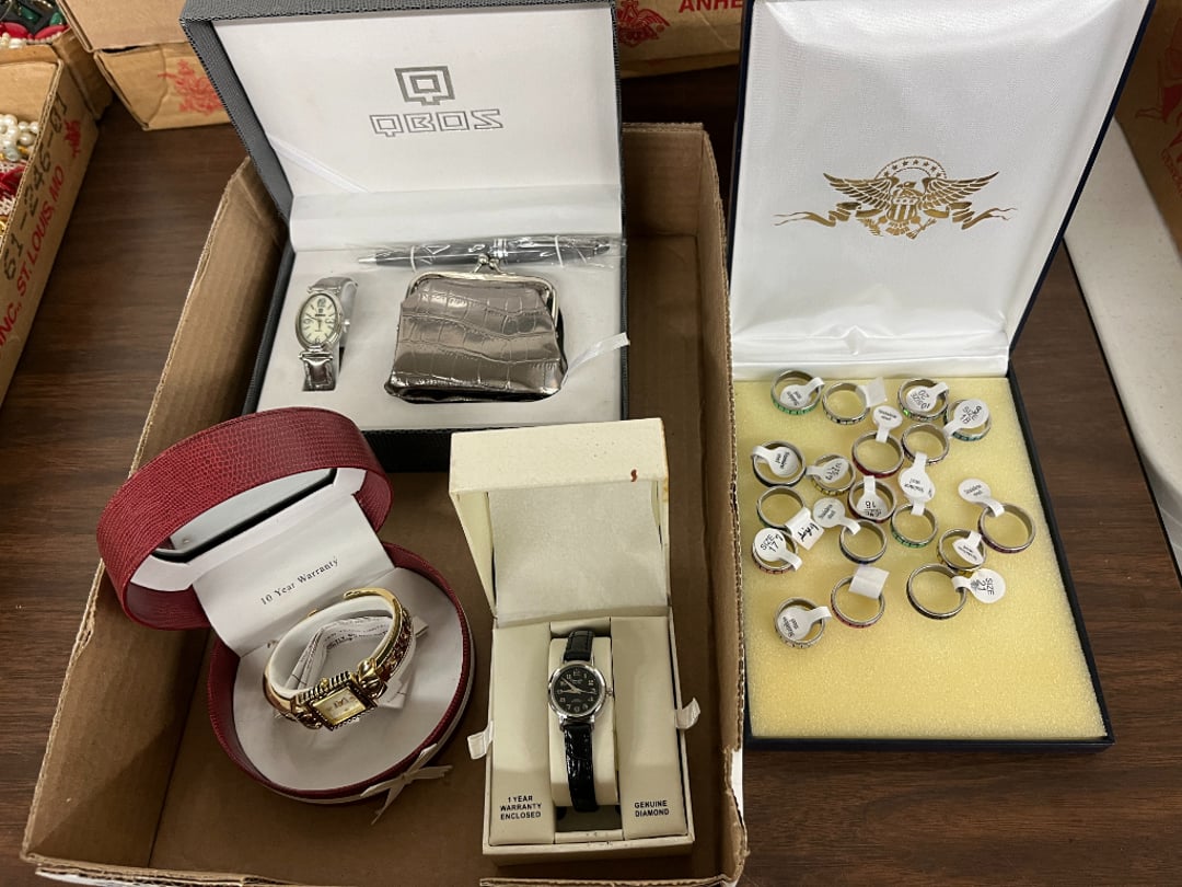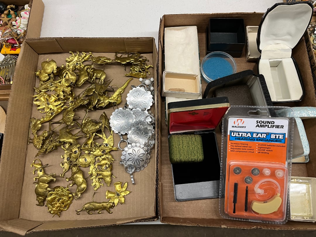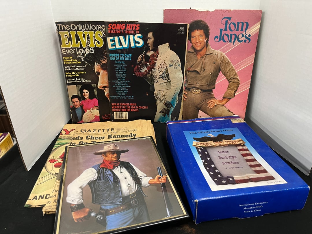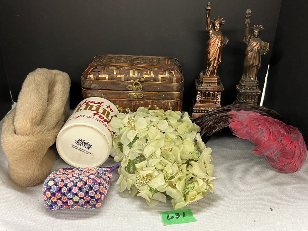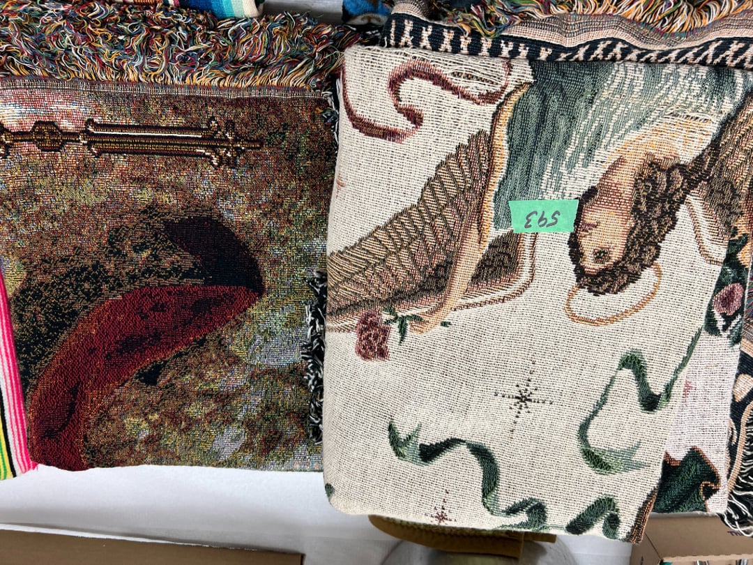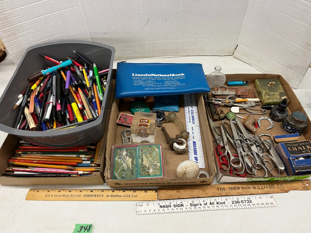 Butterfly Quilt 84" x 82", Child's Quilt 56"x48" & Blanket 47"x42", Knotted Bedspread 88"x60", 2 Vintage Quilts, 2 Vintage Quilts 82"x70" & 73"x52", Blow Mold Lighted Santa, Child's Oak & Bamboo Mirrored Dresser, NIB 55pc.Texas-Ware Dish Set, NIB 55pc.Texas-Ware Dish Set, Aroma Roaster Oven, Sylvania Ionizer Fan, Mini Yum Yum Machine, Sunbeam Ice Cream Maker, Rival Mini Meat Grinder/Stuffer, Waring Food Dehydrator, GoWise USA Pressure Cooker , Igloo Industrial 5 gal. Drink Cooler, Excalibur Food Dehydrator, Kenmore Microwave, Cooks Essential Steamer, Bella Fluted Cake Maker & Hand Mixer, JC Penny Oscillating Fan & Patton Fan, Rival Crock-Pot & NIB Handmixer, Magic Chef Ice Maker, Rival Crock-Pot , Wards Signature Ice Cream Maker, CorningWare Programmable Slow Cooker, DeLonghi 60 Cup Coffee Maker, West Bend Colonial Cooker , Rival Crock-Pot, Casserol Crock-Pot, West Bend Buffet Server , Sm. Crock-Pot & Rival Crock-Pot, Rival Crock-Pot & Frypan Electric Skillet, Presto Cast Aluminum Fry Pan, Euro-Pro Digital Slow Cooker, George Forman Evolve Grill , Sunbeam Carousel Rotisserie, Cuisinart Blender/Food Processor , Crosman 600 Pellet Gun, Fairport, NY, Walther CP 88 Competition Pellet Gun, "Benjamin Franklin" Air Pistol 177, Benjamin Franklin Air Pistol 110, Crosman "130" 22. Cal., GE AM/FM Radio Cassette Recorder, Panasonic FM/AM radio cassette recorder, SONY Audio/Video Control Center, 2 Car Radios, Car Radio CD Player, Magnavox Cassette Recorder, Miscellaneous Electronics, Vintage Marbles, Radio Shack CD player, radio, cassette , Alpine FM/AM CD Recieiver , Sharp CD, Radio, Cassette Player, (3) Window Fans - Holmes & Duracraft, Vintage Groom Kewpie Bisque Doll, Vintage Records (33-45-78), (2) Stock Pots - , Presto Pressure Cooker & Stock Pot, Stainless Steel Stock Pot & Kettle Pot, (2) Stock Pots - 1 lid, Wagner Ware Magnalite Roaster, Lg. Wagner Ware Magnalite Roaster, Griswold 2qt. Pot & Sullivan Ware Pot, Magnalite Roaster & Pot, 3 pc. Magnalite Pans, Wagner Ware Magnalite Roaster (no lid) , Majestic ware pot with handle, stock, 3 Wagner ware Magnalite pans, 2 Magnalite Roasters, Mirro 8 liter & 14 qt Wearever Stock Pots, Cooks essentials 16 qt SS stock pot, 10qt Revere Ware SS Stock Pot, 16qt Tramontina SS Stock Pot, Vollrath SS Stock Pot, (4) Costume Jewelry , (2) Flats Costume Jewelry , Costume jewelry, (2) flats of costume jewelry, (3) Jewelry boxes with contents, (2) Flats of costume jewelry, Jewelry Chest, Jewelry Organizer, (3) Containers costume jewelry, (2) Flat custom jewelry, (3) Containers custom jewelry, (6) Farberware Pots and pans, SS double boiler, SS Roasting pan -, (4) pc SS Altima Cookware, (2) Nordic Ware & (2) Bunt pan molds -, (2) Granite roasters, Wagner ware, 14" Enterprise pan, (15) Baking sheets 13"x18", (8) Bakeware & Cooling rack, Character cake pans, round pans,, Graniteware pan – like new, Antique enamel bucket with lid, (3) Jacks, Milwaukee heavy duty 61/2" Saw, Miscellaneous tools, (3) Red Coca-Cola crates, Vintage joy time ice skates, vintage, Whites metal detector, Large amount of miscellaneous drill bits, Earthway EV–N -Spred grass spreader, (2) NIB Lazer Tag Systems, toys, Handy Andy 20 piece carpenters, (2) Barbie dolls, Madeline tea set, Wooden bunny rocker, fisher price, NIB Big bird express train, plastic farm buildings, Galileo Thermometer, (2) Vintage picnic baskets, (6) Baskets, (72) CD's & CD Containers, Child's suitcase with wheels & contents, William Lewis and sons violin, (1) Hohner, (1) Friend Harmonica,, Hans Jurgen Violin with case , SYNSONICS Acoustic Guitar FG907, May Bell - Acoustic Guitar With case, May-Bell Acoustic Guitar in case, Tambourine, Del Oro Acoustic Guitar with strap, Johnson Traditional Ukulele, First Act MG366 Acoustic Guitar, Autoharp , Quarz Guitar Tuner, Lady Bug Mandolin, Remo Weather King Banjo, George Washburn Mandolin, Rocky Mountain Dulcimer, Acoustic guitar, OAHU Publishing company Guitar, Vintage keys, padlocks, keychains, Jewelry assortment and compacts, Costume jewelry assortment with heel spoon, Custom jewelry – rings, broaches, cuff , (4) Boxes costume jewelry, Costume Jewelry, (3) Show cases of Costume Jewelry, (2) Flats Custom Jewelry, (2) Flats Costume Jewelry, (2) Flats Costume Jewelry, (3) Flats Costume Jewelry, (2) Flats Costume Jewelry, (2) Flats Costume Jewelry, (2) Flats Costume Jewelry, (2) Flats Costume Jewelry, (2) Flats Costume Jewelry, (2) Flats Costume Jewelry, (2) Flats Costume Jewelry, (2) Flats Costume Jewelry, (2) Flats Costume Jewelry, (2) Flats Costume Jewelry, (2) Flats Costume Jewelry, (2) Flats Costume Jewelry, (2) Flats Costume Jewelry, (2) Flats Costume Jewelry, (2) Flats Costume Jewelry, (2) Flats Costume Jewelry, (2) Flats Costume Jewelry, (2) Flats Costume Jewelry, (2) Flats Costume Jewelry, (2) Flats Costume Jewelry, (2) Flats Costume Jewelry, (2) Flats Costume Jewelry, (4) Boxes of cookbooks, (4) Boxes of cookbooks, (3) Boxes of cookbooks, (4) Boxes of cookbooks, (4) Boxes of cookbooks, (4) Boxes of cookbooks, (3) Boxes of cookbooks, (7) Antique reference books- Jewelry,, (4) Antique reference books- Collectibles, (5) Antique reference books - Tools, flea, (4) Boxes children's books, (3) Boxes children's books, Vintage last supper picture, (2) Boxes Cookbooks, Eagle pictures, 36"x24" Indian painted on velvet, (2) Containers of children's books, Large amount of Junior elf books, (2) Boxes of children's books, Assortment of children's activities and, Disney princess activities, Children's lunch bags and toys, Whitehead Hoag Letter Opener, Lincoln National Bank – book bank, Southern pacific RR lines playing, (2)Fountain pens, braves trucking pencil, Foreign coins, Leather coin pouch, (3) Miniature guns - Ranger Zee & 1 made, 1960's Kusan Inc. Toy Cap Gun, Togepi POKEMON 1999 23K gold, Copper eagle and arrows letter opener, RadioShack handheld digital trunking, (2) Plastic containers of doll clothes/, Brass Elephant, cast iron dog, China egg, Chunky stamps, super set gear