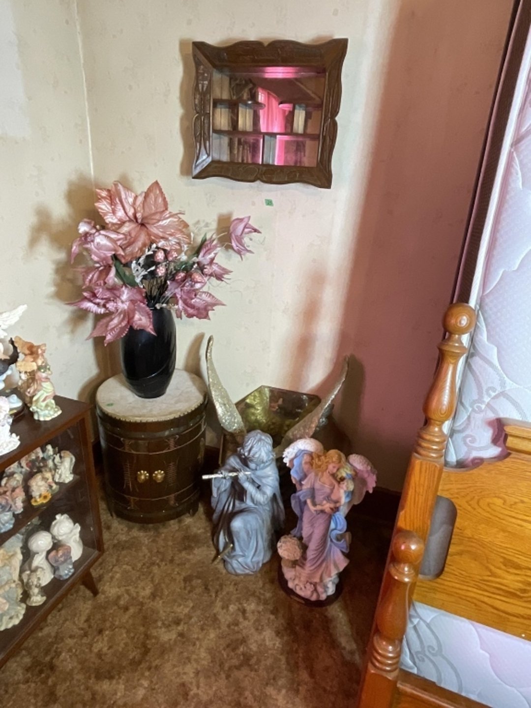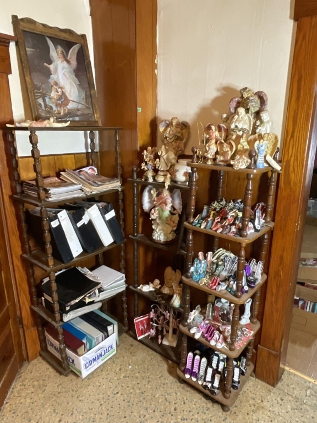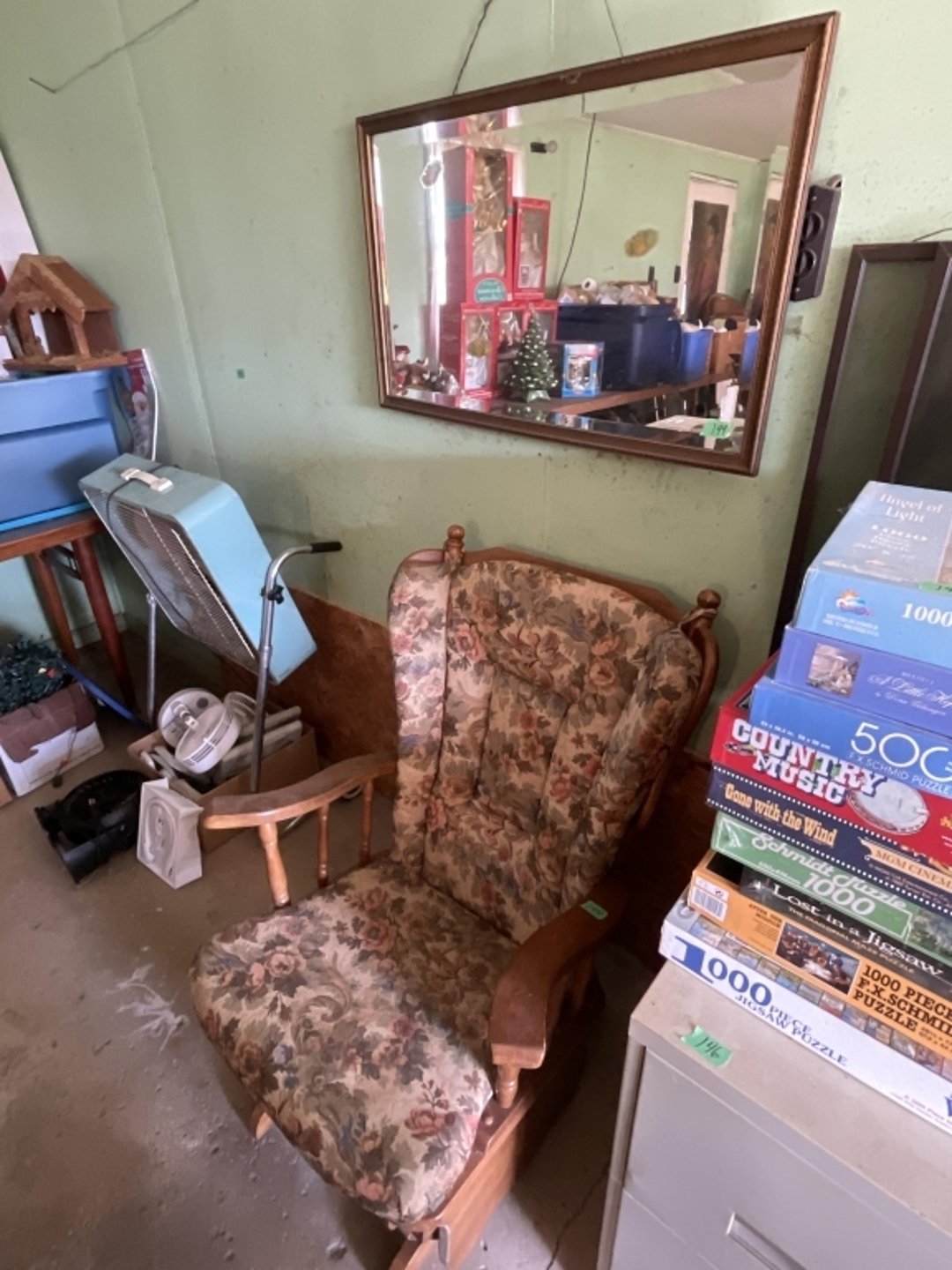 Rowe Furniture Sitting Chair, Tv Stand, End Table, Assorted Collectibles, Ash, Aqua Swivel Chair with Ottoman, Vintage RCA TV With Decor on Top- Boyd, Candles,, Antique Waterfall Standing Dresser & Vanity, Crochet Chevron Blanket, Assorted Sheets, Oval Coffee Table & Pair of End Tables, Sealy Mattress & Bed Frame- Full, Monteverdi Collection Record & 8 Track Player, Akai Crossfield Head x-360 & Solid State RCA TV, Corner Contents of Room- Chair, Blankets, Fans, 3 Assorted End Tables- Rough, Queen Southerland Mattress, Frame & Vintage Dresser, Floor & End Table Lamps, Antique Hanging Mirror & Homco Cherub Angels, Rolling Tv Stand, 2 Small Shelfs, Memorex Radio, CD & Record Player, Closet Full of Christmas Items, Large Assortment of Angel Figurine Decor, Bow Front Curio Cabinet, DVD Player, Shelf Full of Assorted CDS, Queen Bed Frame with Mattress, Tuck Etched Mirror, Round End "Drum" Table, MCM Style Shelf with Large Angel Collection, 10 Plus Angels & 2 Cats Decor, 30 Vinyl Albums- Roger Miller, Bill Cosby & More, 30 Vinyl Albums- Johnny Cash, Wanda Jackson, Etc., 30 Vinyl Albums- Johnny Cash, George Jones Etc., 30 Vinyl Albums- Dolly Parton, Patsy Cline Etc., 30 Vinyl Albums- Jimmy Rogers, George Strait Etc., 30 Albums- Johnny Cash, Tom Jones Etc., 40 Vinyl Albums- George Jones, Patsy Cline Etc., Metal Rack, & 40 Vinyl Albums, Elvis Books, & Records, Tv Stand & Two End Table Lamps, 96" x 81" Hand Stitched Quilt, 80" x 90" Hand Stitched Quilt, 76" x 61.5" Hand Stitched Quilt, Assorted Blankets, Large Collection of Figurines & Wax Figurine, Assorted Sheets & Sheet Sets, Small Foot Stools, Mickey Decor, Doll "Car Seat", Amber Hurricane & Desk Lamps, Assorted Figurines, Collectible Figurines, Angels & Music Box Angels, Antique Pair of Dressers, Wooden Corner Shelf W/ Dog Figurines, 51" Samsung Flat Screen TV & Stand, Large Assortment of Debbie Macomber Chapter Books, Assorted Mixed Author Chapter Books, DVD Stand, DVDS & Sylvania DVD Player, Curio Cabinet Full of Angel Figurines, Assorted New DVD Players, Assorted 45s Records, Antique 21.5" Mantle Clock, 15" Brass Weiner Dog Boot Cleaner, 4 Queen Bed Sheet Sets, Assorted Collectibles- Geneva Can Opener, Assorted Clothe Coolers & Grocery Bags, Assorted Stuffed Animals, Mickey, Racoon & More, Large Collection of Music Tapes, Panasonic Cd Player & CD Collection, Corner Stand, Wall Decor, & Figurines, Large Assortment of VHS & RCA VHS Player, Antique Etched Top Rocker, Wind Chimes & Collectible Angels, 3 Antique Decorative End Table Lamps, Ashley Furniture Lighted Cabinet & Angel Figures, Cleaning Supply Brooms, Rulers, Mops, Swifter, Household Cleaning Supply, Assorted Collectible Angels, Assorted Tea Pots, Pyrex, Backing Tins, Frying Pan, Corning ware, Nescafe Mugs, Coca Cola Glasses, Assorted Cut Glass Items, Ashtray, Butter Dish, Assorted Kitchen Utensils, Kitchen Utensils - Forks, knives, Cheese Graders, Un Used Candles- Better Homes, Tuscany & More, Ovenware Bowl, Stoneware, Halls, & Others, Pyrex Casserole Bowls, Fire King Dishes, Ashtrays, Batteries, Hand Fans, Tape, Mainstay Blender, Rival Mixer, Tea Kettle, Majestic & Other Pots & Pans Assortment, Yellow Step Stool & Medical Chair, Duck Dynasty Book Collection, Duck Dynasty Beach Towels & Pillows, Cochrane Bay Colony Table w/ 4 Chairs, Microwave, Hutch, Cook Books, CD Player & CDs, Two Rolling Computer Desk Chairs, Corner Hutch 70" T x 36" L, Contents of Hutch - Angels & Tea Cups, Harmony House Standing Dresser, Assorted Games, Cards, Baseball Bats, Contents Of Back Room- Mainly Clothes, Travel Gear Suit Cases & Assorted Purses, Convalescent Items- Chair, Walker, Stools, Fan Etc., Assorted Women's Hats & Scarves, Assorted Computer Monitors, Printer, Keyboards &, Folding Table & 4 Chairs, Computer Chair & Plastic Storage, HP Windows Vista Laptop, 53.5" x 41.5" Table & 4 Chairs, Assorted Native American Angels, Closet Full of Towels, Sheets, Blankets, Table Cloths, Cloth Rings, Bags, Duck Dynasty Bobble Head & More Collection, Assorted Duck Collection, Large Angel Collection with Shelf, Corner Collection Angels, High heel Collectibles &, Closet Full of Crafting Supply- Buttons, &, Assorted Chapter Books & Corner Shelf, Assorted Dvds, Player, Shelves, High Heel Collection & Two Shelves, Shelf Full of Danielle Steel Books, Shelf Full of Danielle Steel Books, Standing Jewelry Cabinet Armoire, Fisher Price Baby Rocker & Small Chest, Large High Heel Collection & Shelves, Assorted Electrical Cords, Large Quantity of Floral Decor, Scotch Magnetic Tapes, Swan Vase & Purse Pouch, Large Assortment of Hand Tools, Assorted Office Supply- Phones, Paper, & More, Lightbulbs, Lights & Miscellaneous, Hoover Sweeper, Eureka Sweeper & Bags, Singer Electronic Control Sewing Machine, Singer Electronic Control Sewing Machine, Security Light & 2 Bell Lightbars, Assorted Flashlights & Lanterns, Vintage Shell Gas Can, Velbon Camera Stand, Binoculars, TV & Recorder, 18" Drop Forge Pipe Wrench, Assorted End Tables, Small Shelves &, Metal Shelf w/ Assorted Collectibles, Metal Shelf with Assorted Christmas Decorations, Antique School Desk, Baskets & Assorted Wall Decor, Convalescent Items- Chair, Walker, Crutches, &, Drive Wheel Chair W/ 2 Cushions, Large Selection of Yarn Supply, Ceramic Christmas Tree & Merry Go Round, Motion Christmas Collection, Large Assortment of Christmas Decor, Vintage Wooden Table 8' x 30", Sunbeam Heater, Stool, & Cooker, Large Assortment of Christmas Decor., Vintage Wooden Table 33.5" x 60", Box Fans & Assorted Deck Fans, Wooden Saw Horses, Wood Glider Rocker & Mirror, Assorted Puzzles- Some New, Two Drawer Metal File Cabinet, 2 Ironing Boards & Clothes Hanger, Assorted Lawn Tools- Rakes, Brooms & More, Assorted Coolers- Coleman, Igloo ETC., Propane Bottle? Missing Handle, Vintage Shop Cabinet/Desk & Supplies Inside, Trash Can W/ Assorted Grabbers, Assorted Garage Supply- D Con, Pennzoil &, Sunbeam Mini Sewing Machine & Mini Air Cooler, Assorted Barbies & Kissing Dolls, Mini Sewing Machin