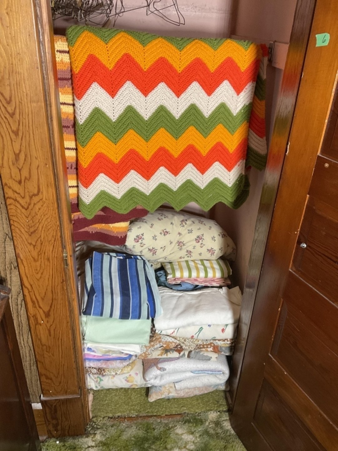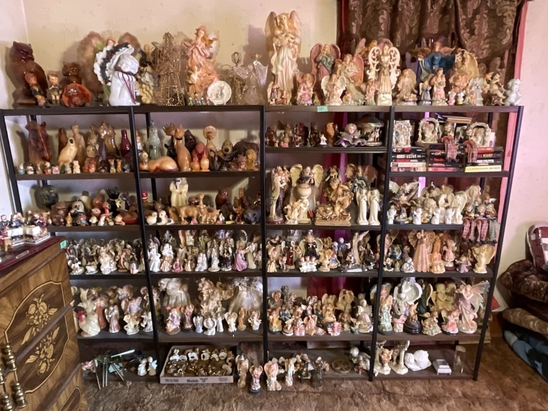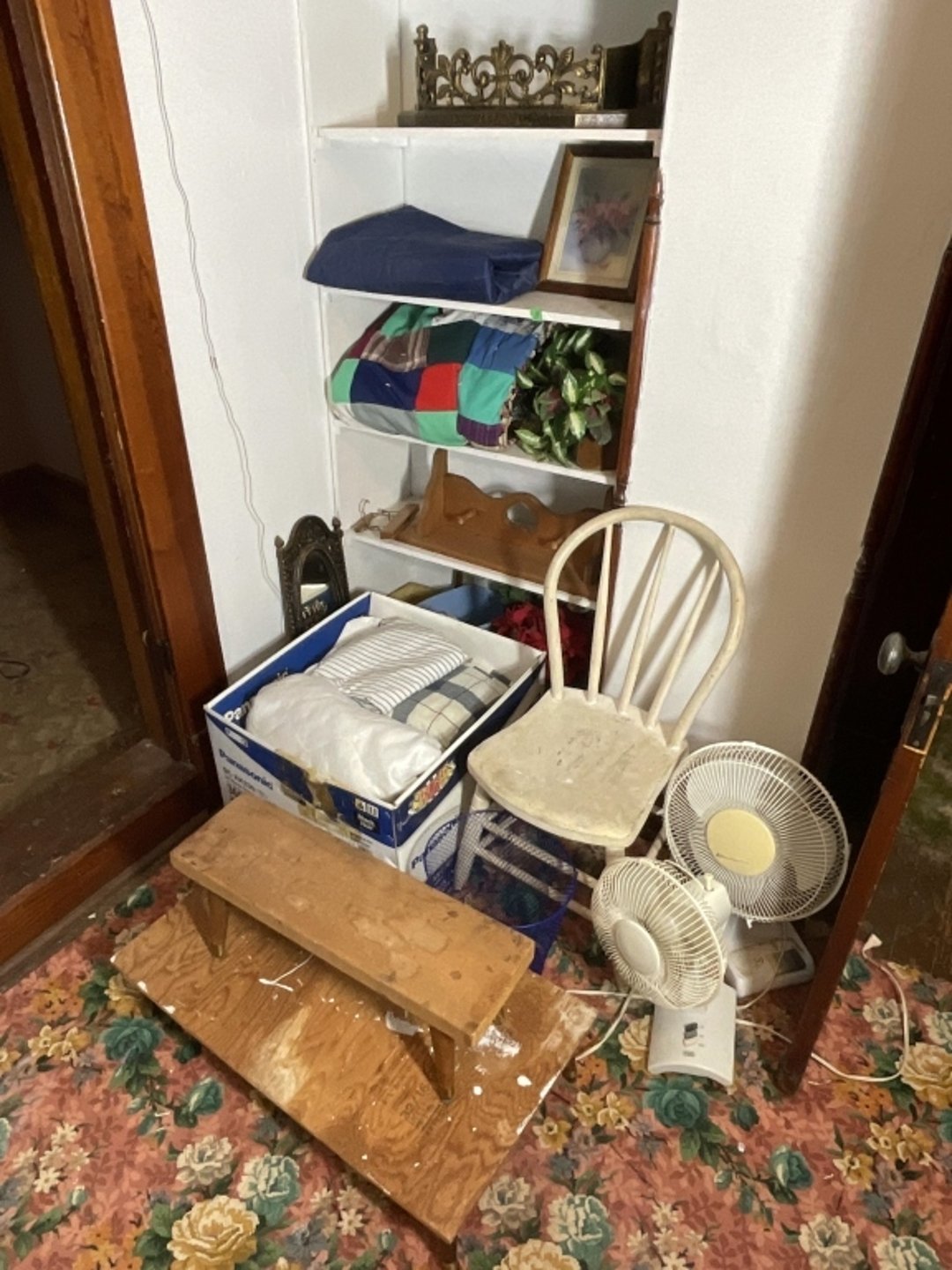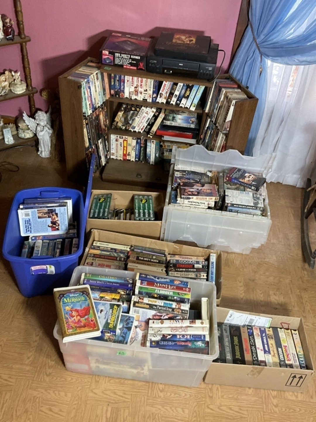 Rowe Furniture Sitting Chair, Tv Stand, End Table, Assorted Collectibles, Ash, Aqua Swivel Chair with Ottoman, Vintage RCA TV With Decor on Top- Boyd, Candles,, Antique Waterfall Standing Dresser & Vanity, Crochet Chevron Blanket, Assorted Sheets, Oval Coffee Table & Pair of End Tables, Sealy Mattress & Bed Frame- Full, Monteverdi Collection Record & 8 Track Player, Akai Crossfield Head x-360 & Solid State RCA TV, Corner Contents of Room- Chair, Blankets, Fans, 3 Assorted End Tables- Rough, Queen Southerland Mattress, Frame & Vintage Dresser, Floor & End Table Lamps, Antique Hanging Mirror & Homco Cherub Angels, Rolling Tv Stand, 2 Small Shelfs, Memorex Radio, CD & Record Player, Closet Full of Christmas Items, Large Assortment of Angel Figurine Decor, Bow Front Curio Cabinet, DVD Player, Shelf Full of Assorted CDS, Queen Bed Frame with Mattress, Tuck Etched Mirror, Round End "Drum" Table, MCM Style Shelf with Large Angel Collection, 10 Plus Angels & 2 Cats Decor, 30 Vinyl Albums- Roger Miller, Bill Cosby & More, 30 Vinyl Albums- Johnny Cash, Wanda Jackson, Etc., 30 Vinyl Albums- Johnny Cash, George Jones Etc., 30 Vinyl Albums- Dolly Parton, Patsy Cline Etc., 30 Vinyl Albums- Jimmy Rogers, George Strait Etc., 30 Albums- Johnny Cash, Tom Jones Etc., 40 Vinyl Albums- George Jones, Patsy Cline Etc., Metal Rack, & 40 Vinyl Albums, Elvis Books, & Records, Tv Stand & Two End Table Lamps, 96" x 81" Hand Stitched Quilt, 80" x 90" Hand Stitched Quilt, 76" x 61.5" Hand Stitched Quilt, Assorted Blankets, Large Collection of Figurines & Wax Figurine, Assorted Sheets & Sheet Sets, Small Foot Stools, Mickey Decor, Doll "Car Seat", Amber Hurricane & Desk Lamps, Assorted Figurines, Collectible Figurines, Angels & Music Box Angels, Antique Pair of Dressers, Wooden Corner Shelf W/ Dog Figurines, 51" Samsung Flat Screen TV & Stand, Large Assortment of Debbie Macomber Chapter Books, Assorted Mixed Author Chapter Books, DVD Stand, DVDS & Sylvania DVD Player, Curio Cabinet Full of Angel Figurines, Assorted New DVD Players, Assorted 45s Records, Antique 21.5" Mantle Clock, 15" Brass Weiner Dog Boot Cleaner, 4 Queen Bed Sheet Sets, Assorted Collectibles- Geneva Can Opener, Assorted Clothe Coolers & Grocery Bags, Assorted Stuffed Animals, Mickey, Racoon & More, Large Collection of Music Tapes, Panasonic Cd Player & CD Collection, Corner Stand, Wall Decor, & Figurines, Large Assortment of VHS & RCA VHS Player, Antique Etched Top Rocker, Wind Chimes & Collectible Angels, 3 Antique Decorative End Table Lamps, Ashley Furniture Lighted Cabinet & Angel Figures, Cleaning Supply Brooms, Rulers, Mops, Swifter, Household Cleaning Supply, Assorted Collectible Angels, Assorted Tea Pots, Pyrex, Backing Tins, Frying Pan, Corning ware, Nescafe Mugs, Coca Cola Glasses, Assorted Cut Glass Items, Ashtray, Butter Dish, Assorted Kitchen Utensils, Kitchen Utensils - Forks, knives, Cheese Graders, Un Used Candles- Better Homes, Tuscany & More, Ovenware Bowl, Stoneware, Halls, & Others, Pyrex Casserole Bowls, Fire King Dishes, Ashtrays, Batteries, Hand Fans, Tape, Mainstay Blender, Rival Mixer, Tea Kettle, Majestic & Other Pots & Pans Assortment, Yellow Step Stool & Medical Chair, Duck Dynasty Book Collection, Duck Dynasty Beach Towels & Pillows, Cochrane Bay Colony Table w/ 4 Chairs, Microwave, Hutch, Cook Books, CD Player & CDs, Two Rolling Computer Desk Chairs, Corner Hutch 70" T x 36" L, Contents of Hutch - Angels & Tea Cups, Harmony House Standing Dresser, Assorted Games, Cards, Baseball Bats, Contents Of Back Room- Mainly Clothes, Travel Gear Suit Cases & Assorted Purses, Convalescent Items- Chair, Walker, Stools, Fan Etc., Assorted Women's Hats & Scarves, Assorted Computer Monitors, Printer, Keyboards &, Folding Table & 4 Chairs, Computer Chair & Plastic Storage, HP Windows Vista Laptop, 53.5" x 41.5" Table & 4 Chairs, Assorted Native American Angels, Closet Full of Towels, Sheets, Blankets, Table Cloths, Cloth Rings, Bags, Duck Dynasty Bobble Head & More Collection, Assorted Duck Collection, Large Angel Collection with Shelf, Corner Collection Angels, High heel Collectibles &, Closet Full of Crafting Supply- Buttons, &, Assorted Chapter Books & Corner Shelf, Assorted Dvds, Player, Shelves, High Heel Collection & Two Shelves, Shelf Full of Danielle Steel Books, Shelf Full of Danielle Steel Books, Standing Jewelry Cabinet Armoire, Fisher Price Baby Rocker & Small Chest, Large High Heel Collection & Shelves, Assorted Electrical Cords, Large Quantity of Floral Decor, Scotch Magnetic Tapes, Swan Vase & Purse Pouch, Large Assortment of Hand Tools, Assorted Office Supply- Phones, Paper, & More, Lightbulbs, Lights & Miscellaneous, Hoover Sweeper, Eureka Sweeper & Bags, Singer Electronic Control Sewing Machine, Singer Electronic Control Sewing Machine, Security Light & 2 Bell Lightbars, Assorted Flashlights & Lanterns, Vintage Shell Gas Can, Velbon Camera Stand, Binoculars, TV & Recorder, 18" Drop Forge Pipe Wrench, Assorted End Tables, Small Shelves &, Metal Shelf w/ Assorted Collectibles, Metal Shelf with Assorted Christmas Decorations, Antique School Desk, Baskets & Assorted Wall Decor, Convalescent Items- Chair, Walker, Crutches, &, Drive Wheel Chair W/ 2 Cushions, Large Selection of Yarn Supply, Ceramic Christmas Tree & Merry Go Round, Motion Christmas Collection, Large Assortment of Christmas Decor, Vintage Wooden Table 8' x 30", Sunbeam Heater, Stool, & Cooker, Large Assortment of Christmas Decor., Vintage Wooden Table 33.5" x 60", Box Fans & Assorted Deck Fans, Wooden Saw Horses, Wood Glider Rocker & Mirror, Assorted Puzzles- Some New, Two Drawer Metal File Cabinet, 2 Ironing Boards & Clothes Hanger, Assorted Lawn Tools- Rakes, Brooms & More, Assorted Coolers- Coleman, Igloo ETC., Propane Bottle? Missing Handle, Vintage Shop Cabinet/Desk & Supplies Inside, Trash Can W/ Assorted Grabbers, Assorted Garage Supply- D Con, Pennzoil &, Sunbeam Mini Sewing Machine & Mini Air Cooler, Assorted Barbies & Kissing Dolls, Mini Sewing Machin