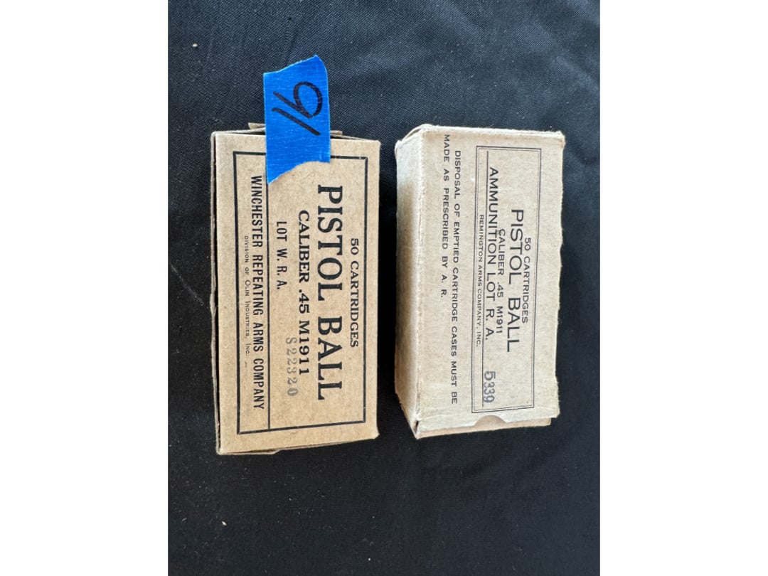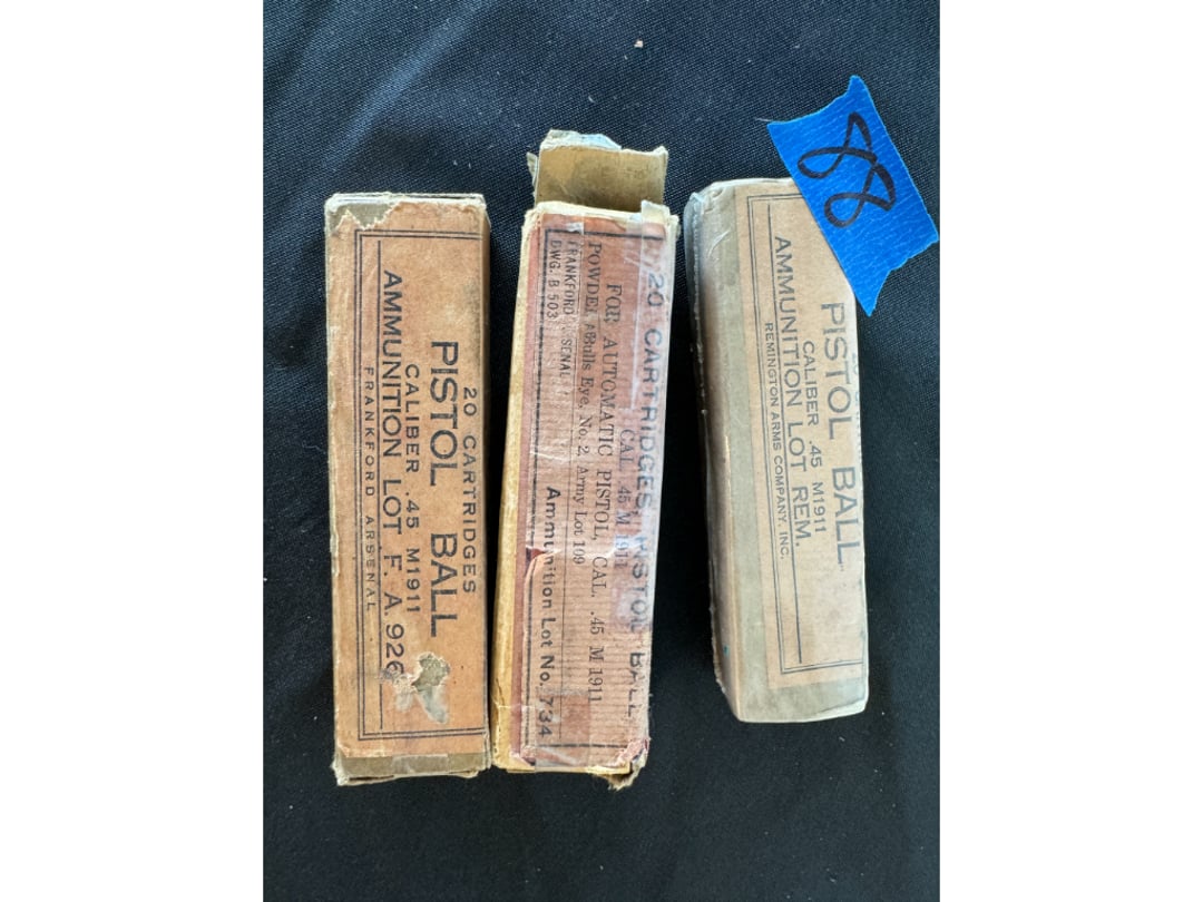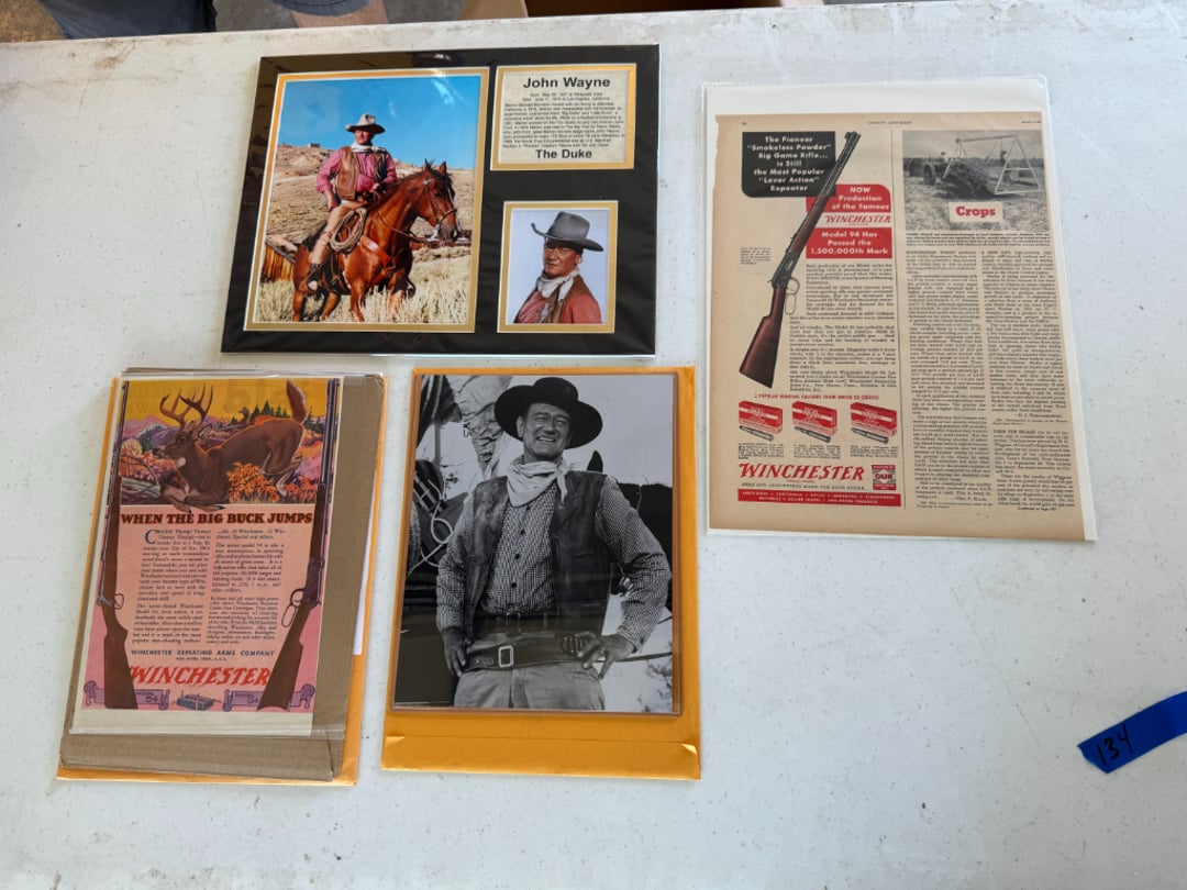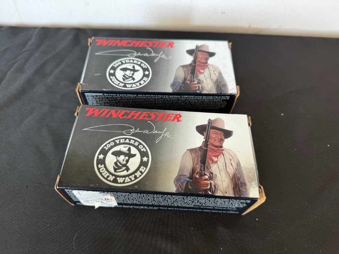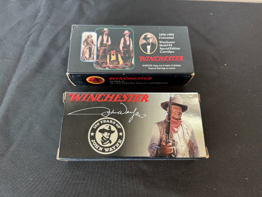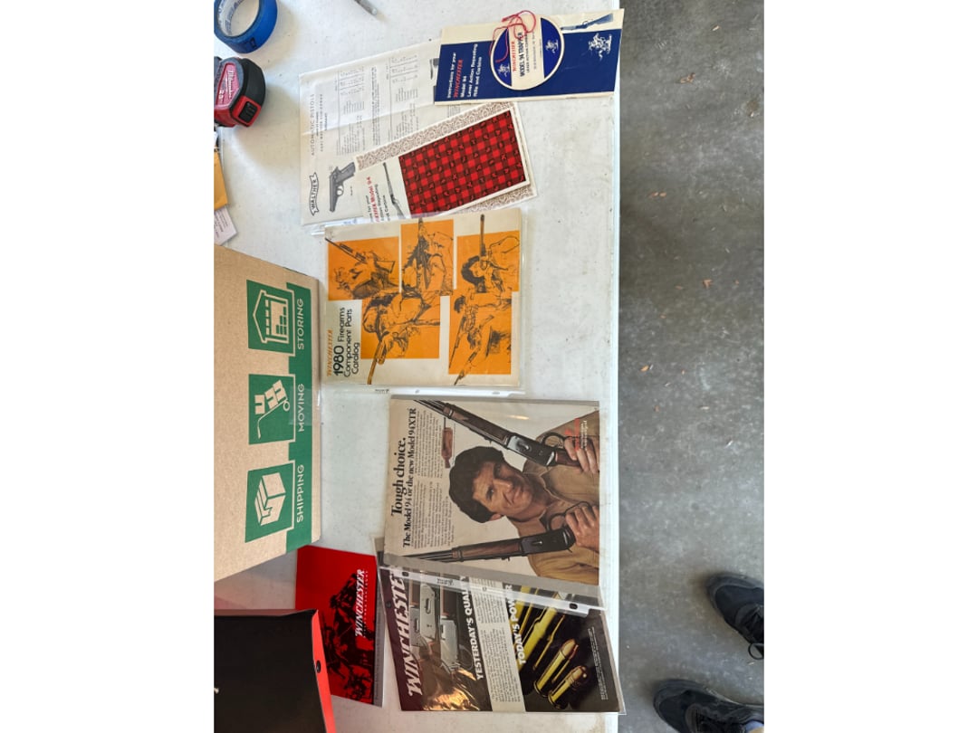 Automatic Pistol .45 m1911A1 Sign, Colt Revolvers & Pistols Tin Sign, Colt Rubber Mat, Reproduction ammo Box , Vintage Red Head Long Rifle Case, Shooting Bag & Ear Plugs 2 Hand Guns , (68) .45 Auto ACP Ammo , 150 .45 Federal Ammunition 23 Grain, 200 Winchester .45 Auto Full Metal Jacket 230 GR., 150 Remington .32 Auto 71 Grain, 100 Reloads .45ACP win LP .230 GR Full Metal Jacket, 70 Reloads .45 ACP, 100 .45 ACP, 150 .32 Auto 71 GR, 400 Winchester 9mm full metal jacket .115 GR, 150 Remington 9mm Luger 147 Grain, Mixed & Partial, 100 .32 Auto, .9MM & .45 Auto, Reloads 50 .45ACP 230Gr & Empty 50 .45 Cases, 30-30, .38 Special, 46 Remington .357 Magnum , Reloads 50 .45 Colt , 2003 Walter p99 9x19, Reloads 100 9x19MM, 100 .44/40 Winchester 200 GR, 1981 Colt .45 ACP MK IV Series 70 Gold Cup, 100 .44/40 Winchester 200 GR, 100 Winchester .45 250Gr John Wayne Edition , 3 Walther p99 10 Round clips, 20 Winchester 30-30 150gr Silvertip , 1953 Beretta .25 Model 418, 40 Winchester 30-30 Win. 150gr John Wayne Edition, 50 Winchester 44-40 win 200gr 150 year edition, Colt Soft Handgun Case, 1943 Colt 1911A1 US Army, 20 Winchester 30-30 Win 150 GR John Wayne edition , 50 Winchester 30-30 Win 150 GR Theodore Roosevelt edition, 40 Winchester 30-30 Win 150gr 150 Year Edition, 40 Winchester 30-30 Win 150gr Oliver F Winchester Edition , 1997 Colt Single Action Army .45 Revolver , 40 Winchester 45 Colt 250gr Oliver F Winchester Edition, Remington .45 Colt MOVIE BLANKS, 20 Winchester 44-40 Little Big Horn Edition , 150 .25 Auto , 1898 Colt Frontier Six Shooter .44/40, 20 Winchester 30-30 170gr , 50 Remington .44-40 200gr Soft Point Bullet , 50 Winchester .44-40 200gr Soft Point Bullet, 1968 Walter PPK 7.65 , 50 Remington .45 Targetmaster 185hr, 20 Winchester 30-30 150gr Silvertip, Walter PPK Black Pistol Grip, (3) 7.65 Clips , After market 7.65 Brown Clip extensions, (2) 7.65 Clips , 60 Remington 30-30 Win 170gr Softtip, 40 Federal 30-30 win 170gr Softpoint Hi-shok , 20 30-30 Winchester 170gr 20 Hawthorne 30-30 win 150gr, 100 .45 Auto , Mossburg 930 .12 GA Semi Auto w/ Light , Gun Cleaning Kit , 70 9MM , Browning A Bolt .30-06 w/ Nikon Buckmaster 3-9x40 Scope, 3 Ammo Cans , World War II Pistol Belt , Cowboy Belt W/ .45 Colt & Buck Knife , Tanker Holster For .45 Army Pistol, 2012 Beretta V02027S Double Barrel .12 GA, .45 Colt Cowboy Leather Holster W/ 18 Rounds .45 Colt , 18 Rounds .12 & .32 Browning Auto , Tristar Raptor DU Black .12GA, 3 Military.45 Clips , 5 .45 Clips , 2 Colt .45 Auto Clips , .32/.380 Leather Holster , 1984 Winchester 1873 .44 Lever Action, Colt 1911 Leather Holster , Bianchi Walter P99 Leather Holster , Colt Single Action Leather Holster, Small Holster For Walther PPK, 1996 Winchester 1894 .30-30 Lever Action , Holster Used in James Bond Movies , NEW Ruger 4 5/8" Blackhawk Leather Holster, 1980 Winchester Model 94 30-30 Win Lever Action , 1911 Holster , Remake US Clip Holster, 60 .45 M1911, 100 .45 M1911, 1943-1948 Winchester Model 94 30-30 Lever Action , 100 .45 M1911, 100 .45 M1911, 150 .45 M1911, 100 .45 M1911, 1904 Winchester Mod 1894 .30 Lever Action , 200 .45 M1911, 150 .45 M1911, 100 .45 M1911, 25 rounds .45 Automatic , 18 M1911 Ammo , US G1 WWII or Korean War Ammo Can, 2 Ammo Cans, 30-06 Die Set, .44-40 3 Die Set, .45 Colt Die, RCBS Master Reloading Kit , Koehlinger Fireguard 2557CTS Safe, Empty Case .45 Long Colt , Reloading Tools, .45 Long Colt Bullets 260gr, Smokeless Powder, Primer Tray, Older Primers, Colt 1911 Tools , Colt 1911 Tools , Winchester Model 94 Ring, winchester rifle leather scabbard, Empty Brass, Locks, & Fake Rounds to Keep Spring Down , 3rd Generation Stag SAA Grips, Colt Single Action Army Tool W/ Colt Tin , Replica Texas Ranger Badges, 1911 Genuine Colt 1911 Grips, Colt Single Action Army Paperwork, Shoulder Holster For .45 Colt , Shoulder Holster For Walther PPK, Vintage Walther Manuals , Vintage Winchester Manuals & Catalogs, Vintage Winchester Manuals & Catalogs, Army Manual M1911A .45 Reprint?, Basic Field Manual & Patch, US Military Hatchet, Collectors Guide Colt .45 1911 & 1911A1, IN handgun law & Travels guide, Colt Firearms Yearly Catalogs, Military Manuals & Mis. John Wayne & Winchester Posters