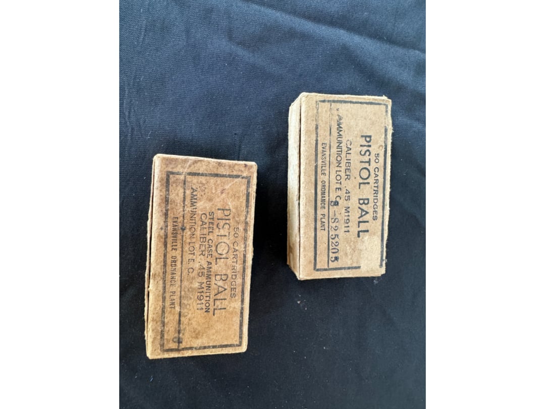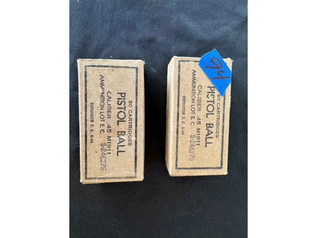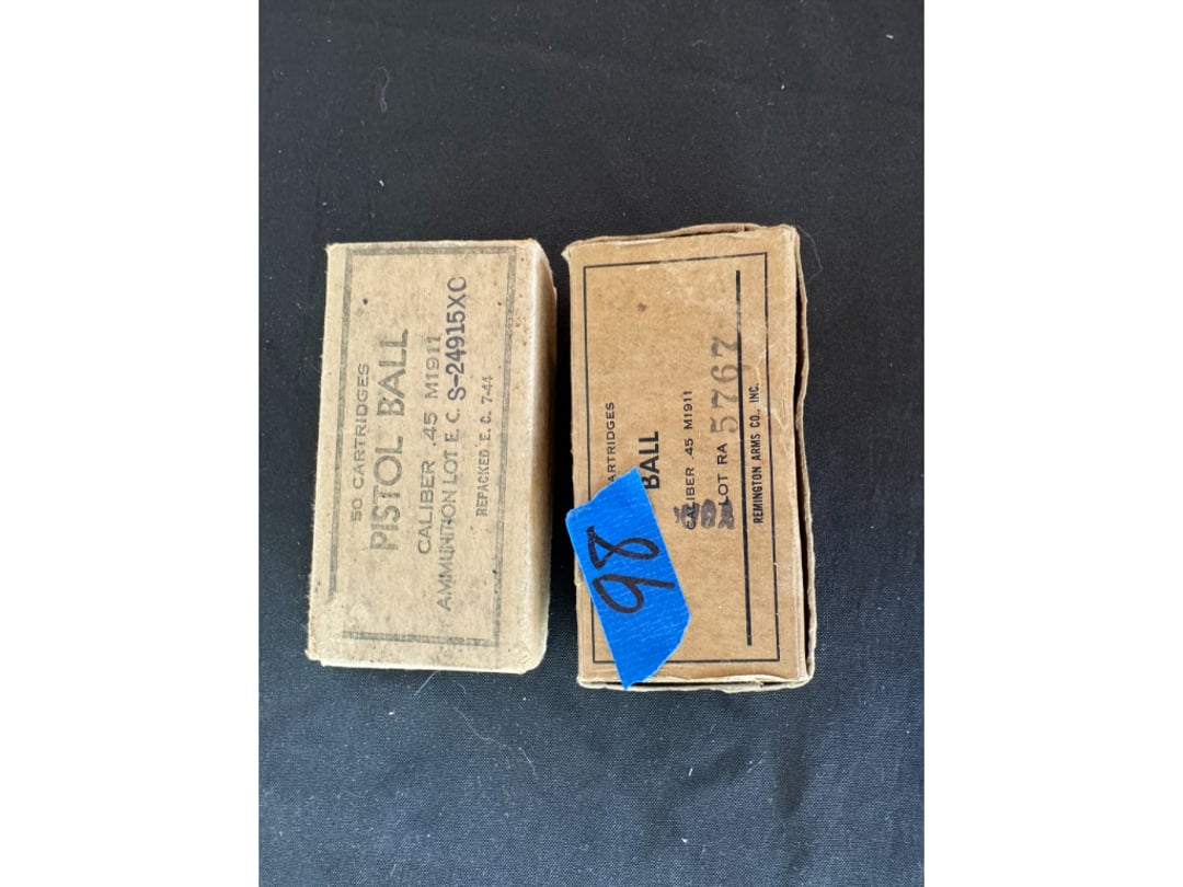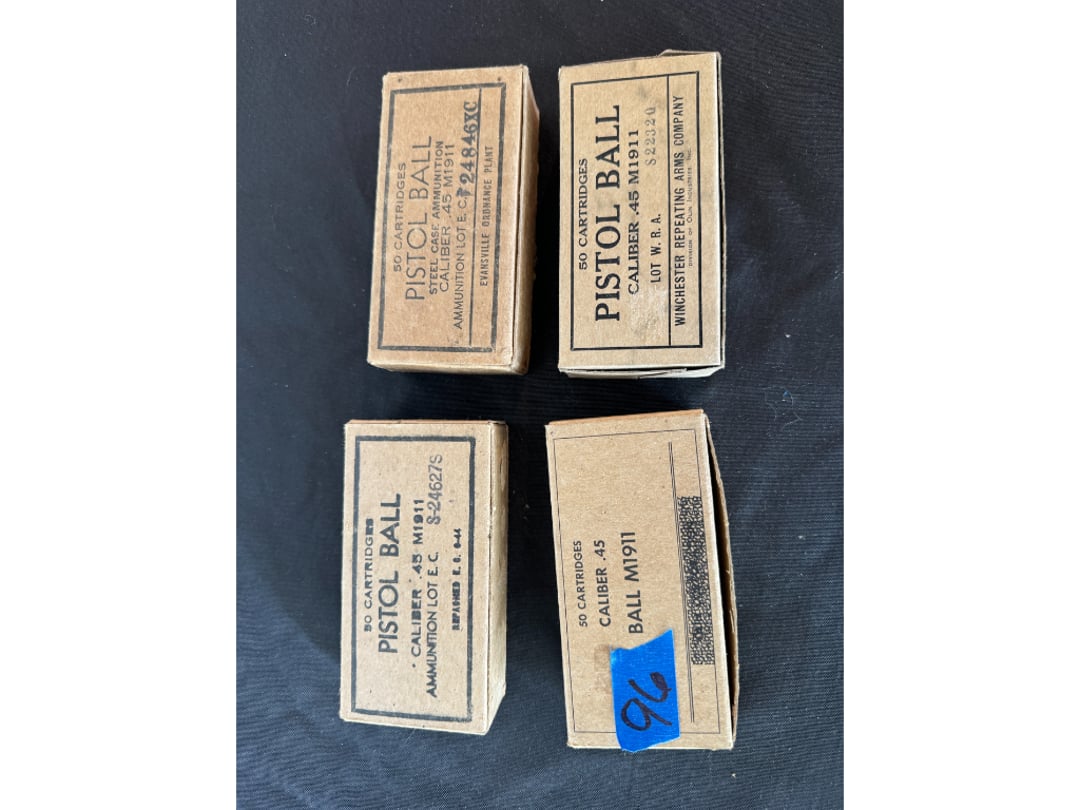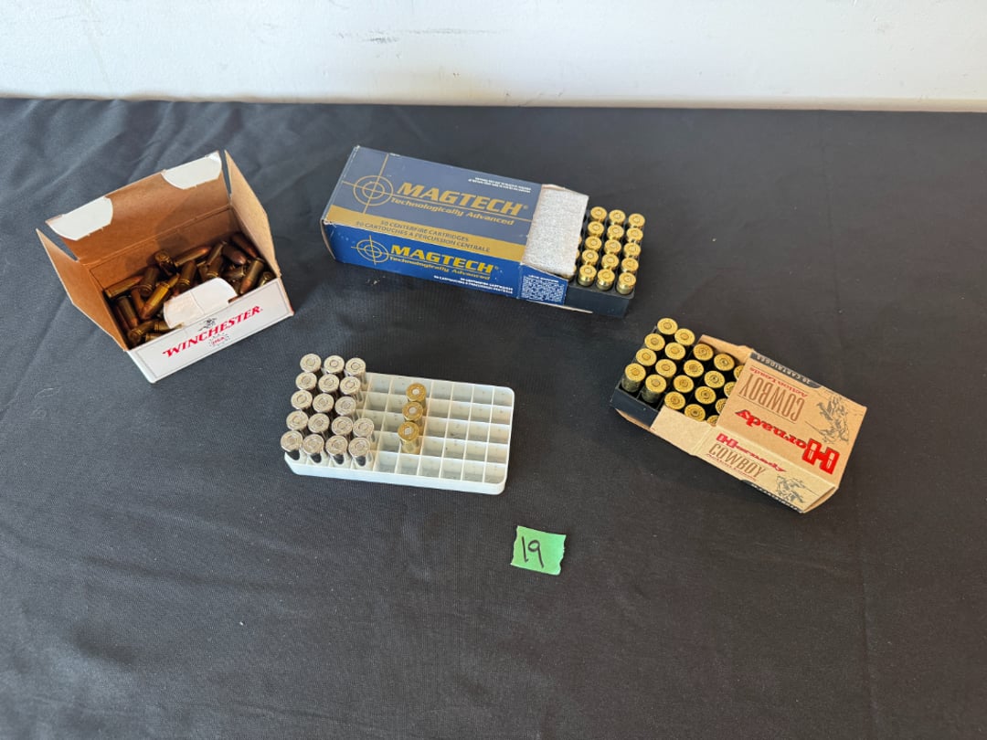 Automatic Pistol .45 m1911A1 Sign, Colt Revolvers & Pistols Tin Sign, Colt Rubber Mat, Reproduction ammo Box , Vintage Red Head Long Rifle Case, Shooting Bag & Ear Plugs 2 Hand Guns , (68) .45 Auto ACP Ammo , 150 .45 Federal Ammunition 23 Grain, 200 Winchester .45 Auto Full Metal Jacket 230 GR., 150 Remington .32 Auto 71 Grain, 100 Reloads .45ACP win LP .230 GR Full Metal Jacket, 70 Reloads .45 ACP, 100 .45 ACP, 150 .32 Auto 71 GR, 400 Winchester 9mm full metal jacket .115 GR, 150 Remington 9mm Luger 147 Grain, Mixed & Partial, 100 .32 Auto, .9MM & .45 Auto, Reloads 50 .45ACP 230Gr & Empty 50 .45 Cases, 30-30, .38 Special, 46 Remington .357 Magnum , Reloads 50 .45 Colt , 2003 Walter p99 9x19, Reloads 100 9x19MM, 100 .44/40 Winchester 200 GR, 1981 Colt .45 ACP MK IV Series 70 Gold Cup, 100 .44/40 Winchester 200 GR, 100 Winchester .45 250Gr John Wayne Edition , 3 Walther p99 10 Round clips, 20 Winchester 30-30 150gr Silvertip , 1953 Beretta .25 Model 418, 40 Winchester 30-30 Win. 150gr John Wayne Edition, 50 Winchester 44-40 win 200gr 150 year edition, Colt Soft Handgun Case, 1943 Colt 1911A1 US Army, 20 Winchester 30-30 Win 150 GR John Wayne edition , 50 Winchester 30-30 Win 150 GR Theodore Roosevelt edition, 40 Winchester 30-30 Win 150gr 150 Year Edition, 40 Winchester 30-30 Win 150gr Oliver F Winchester Edition , 1997 Colt Single Action Army .45 Revolver , 40 Winchester 45 Colt 250gr Oliver F Winchester Edition, Remington .45 Colt MOVIE BLANKS, 20 Winchester 44-40 Little Big Horn Edition , 150 .25 Auto , 1898 Colt Frontier Six Shooter .44/40, 20 Winchester 30-30 170gr , 50 Remington .44-40 200gr Soft Point Bullet , 50 Winchester .44-40 200gr Soft Point Bullet, 1968 Walter PPK 7.65 , 50 Remington .45 Targetmaster 185hr, 20 Winchester 30-30 150gr Silvertip, Walter PPK Black Pistol Grip, (3) 7.65 Clips , After market 7.65 Brown Clip extensions, (2) 7.65 Clips , 60 Remington 30-30 Win 170gr Softtip, 40 Federal 30-30 win 170gr Softpoint Hi-shok , 20 30-30 Winchester 170gr 20 Hawthorne 30-30 win 150gr, 100 .45 Auto , Mossburg 930 .12 GA Semi Auto w/ Light , Gun Cleaning Kit , 70 9MM , Browning A Bolt .30-06 w/ Nikon Buckmaster 3-9x40 Scope, 3 Ammo Cans , World War II Pistol Belt , Cowboy Belt W/ .45 Colt & Buck Knife , Tanker Holster For .45 Army Pistol, 2012 Beretta V02027S Double Barrel .12 GA, .45 Colt Cowboy Leather Holster W/ 18 Rounds .45 Colt , 18 Rounds .12 & .32 Browning Auto , Tristar Raptor DU Black .12GA, 3 Military.45 Clips , 5 .45 Clips , 2 Colt .45 Auto Clips , .32/.380 Leather Holster , 1984 Winchester 1873 .44 Lever Action, Colt 1911 Leather Holster , Bianchi Walter P99 Leather Holster , Colt Single Action Leather Holster, Small Holster For Walther PPK, 1996 Winchester 1894 .30-30 Lever Action , Holster Used in James Bond Movies , NEW Ruger 4 5/8" Blackhawk Leather Holster, 1980 Winchester Model 94 30-30 Win Lever Action , 1911 Holster , Remake US Clip Holster, 60 .45 M1911, 100 .45 M1911, 1943-1948 Winchester Model 94 30-30 Lever Action , 100 .45 M1911, 100 .45 M1911, 150 .45 M1911, 100 .45 M1911, 1904 Winchester Mod 1894 .30 Lever Action , 200 .45 M1911, 150 .45 M1911, 100 .45 M1911, 25 rounds .45 Automatic , 18 M1911 Ammo , US G1 WWII or Korean War Ammo Can, 2 Ammo Cans, 30-06 Die Set, .44-40 3 Die Set, .45 Colt Die, RCBS Master Reloading Kit , Koehlinger Fireguard 2557CTS Safe, Empty Case .45 Long Colt , Reloading Tools, .45 Long Colt Bullets 260gr, Smokeless Powder, Primer Tray, Older Primers, Colt 1911 Tools , Colt 1911 Tools , Winchester Model 94 Ring, winchester rifle leather scabbard, Empty Brass, Locks, & Fake Rounds to Keep Spring Down , 3rd Generation Stag SAA Grips, Colt Single Action Army Tool W/ Colt Tin , Replica Texas Ranger Badges, 1911 Genuine Colt 1911 Grips, Colt Single Action Army Paperwork, Shoulder Holster For .45 Colt , Shoulder Holster For Walther PPK, Vintage Walther Manuals , Vintage Winchester Manuals & Catalogs, Vintage Winchester Manuals & Catalogs, Army Manual M1911A .45 Reprint?, Basic Field Manual & Patch, US Military Hatchet, Collectors Guide Colt .45 1911 & 1911A1, IN handgun law & Travels guide, Colt Firearms Yearly Catalogs, Military Manuals & Mis. John Wayne & Winchester Posters