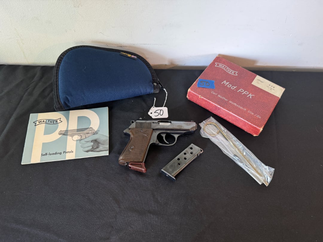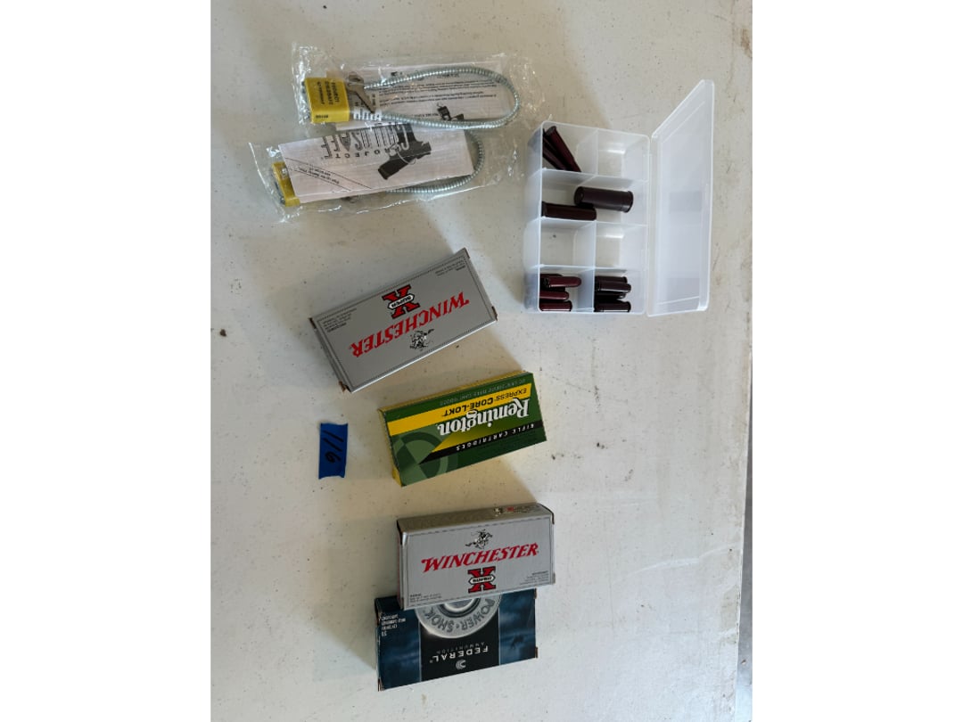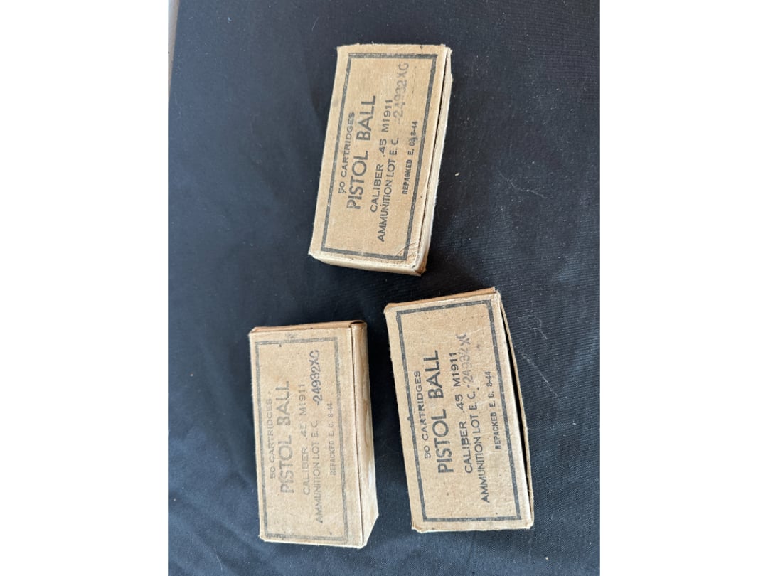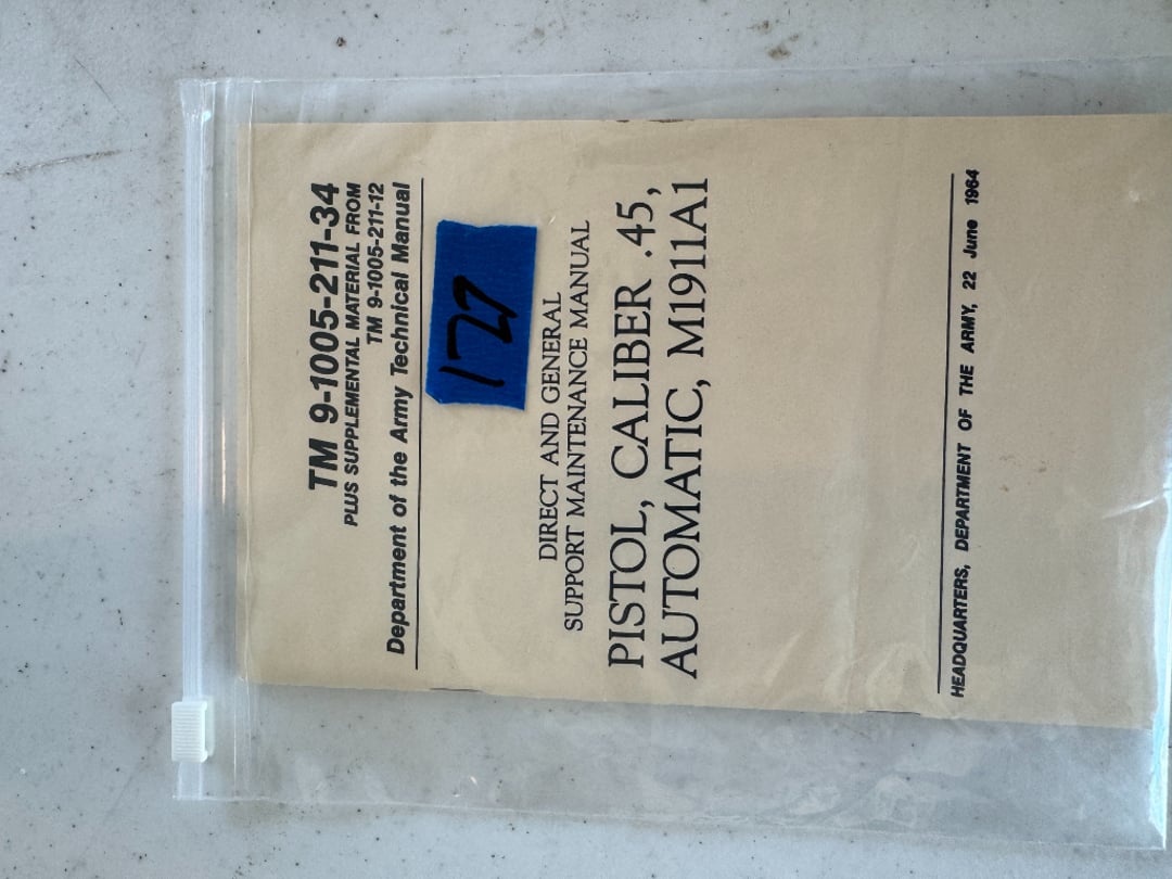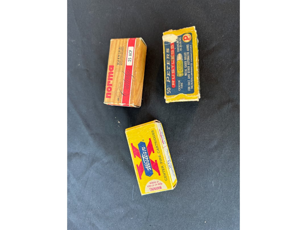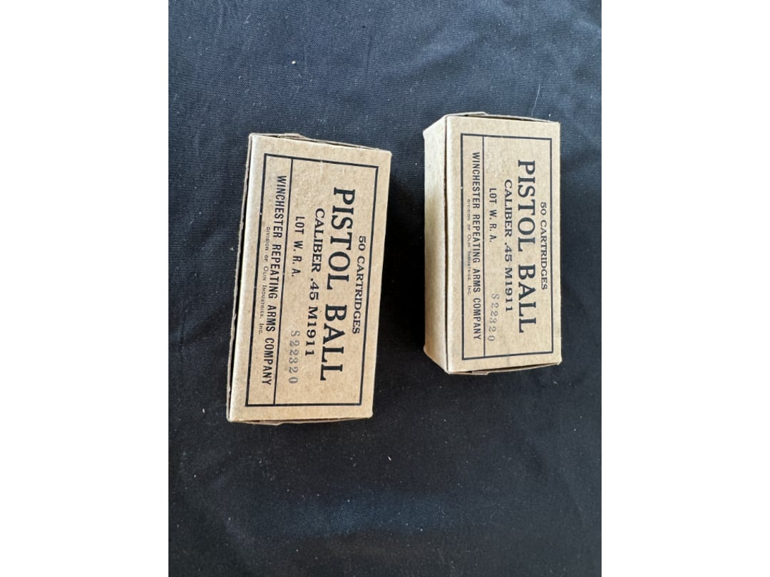 Automatic Pistol .45 m1911A1 Sign, Colt Revolvers & Pistols Tin Sign, Colt Rubber Mat, Reproduction ammo Box , Vintage Red Head Long Rifle Case, Shooting Bag & Ear Plugs 2 Hand Guns , (68) .45 Auto ACP Ammo , 150 .45 Federal Ammunition 23 Grain, 200 Winchester .45 Auto Full Metal Jacket 230 GR., 150 Remington .32 Auto 71 Grain, 100 Reloads .45ACP win LP .230 GR Full Metal Jacket, 70 Reloads .45 ACP, 100 .45 ACP, 150 .32 Auto 71 GR, 400 Winchester 9mm full metal jacket .115 GR, 150 Remington 9mm Luger 147 Grain, Mixed & Partial, 100 .32 Auto, .9MM & .45 Auto, Reloads 50 .45ACP 230Gr & Empty 50 .45 Cases, 30-30, .38 Special, 46 Remington .357 Magnum , Reloads 50 .45 Colt , 2003 Walter p99 9x19, Reloads 100 9x19MM, 100 .44/40 Winchester 200 GR, 1981 Colt .45 ACP MK IV Series 70 Gold Cup, 100 .44/40 Winchester 200 GR, 100 Winchester .45 250Gr John Wayne Edition , 3 Walther p99 10 Round clips, 20 Winchester 30-30 150gr Silvertip , 1953 Beretta .25 Model 418, 40 Winchester 30-30 Win. 150gr John Wayne Edition, 50 Winchester 44-40 win 200gr 150 year edition, Colt Soft Handgun Case, 1943 Colt 1911A1 US Army, 20 Winchester 30-30 Win 150 GR John Wayne edition , 50 Winchester 30-30 Win 150 GR Theodore Roosevelt edition, 40 Winchester 30-30 Win 150gr 150 Year Edition, 40 Winchester 30-30 Win 150gr Oliver F Winchester Edition , 1997 Colt Single Action Army .45 Revolver , 40 Winchester 45 Colt 250gr Oliver F Winchester Edition, Remington .45 Colt MOVIE BLANKS, 20 Winchester 44-40 Little Big Horn Edition , 150 .25 Auto , 1898 Colt Frontier Six Shooter .44/40, 20 Winchester 30-30 170gr , 50 Remington .44-40 200gr Soft Point Bullet , 50 Winchester .44-40 200gr Soft Point Bullet, 1968 Walter PPK 7.65 , 50 Remington .45 Targetmaster 185hr, 20 Winchester 30-30 150gr Silvertip, Walter PPK Black Pistol Grip, (3) 7.65 Clips , After market 7.65 Brown Clip extensions, (2) 7.65 Clips , 60 Remington 30-30 Win 170gr Softtip, 40 Federal 30-30 win 170gr Softpoint Hi-shok , 20 30-30 Winchester 170gr 20 Hawthorne 30-30 win 150gr, 100 .45 Auto , Mossburg 930 .12 GA Semi Auto w/ Light , Gun Cleaning Kit , 70 9MM , Browning A Bolt .30-06 w/ Nikon Buckmaster 3-9x40 Scope, 3 Ammo Cans , World War II Pistol Belt , Cowboy Belt W/ .45 Colt & Buck Knife , Tanker Holster For .45 Army Pistol, 2012 Beretta V02027S Double Barrel .12 GA, .45 Colt Cowboy Leather Holster W/ 18 Rounds .45 Colt , 18 Rounds .12 & .32 Browning Auto , Tristar Raptor DU Black .12GA, 3 Military.45 Clips , 5 .45 Clips , 2 Colt .45 Auto Clips , .32/.380 Leather Holster , 1984 Winchester 1873 .44 Lever Action, Colt 1911 Leather Holster , Bianchi Walter P99 Leather Holster , Colt Single Action Leather Holster, Small Holster For Walther PPK, 1996 Winchester 1894 .30-30 Lever Action , Holster Used in James Bond Movies , NEW Ruger 4 5/8" Blackhawk Leather Holster, 1980 Winchester Model 94 30-30 Win Lever Action , 1911 Holster , Remake US Clip Holster, 60 .45 M1911, 100 .45 M1911, 1943-1948 Winchester Model 94 30-30 Lever Action , 100 .45 M1911, 100 .45 M1911, 150 .45 M1911, 100 .45 M1911, 1904 Winchester Mod 1894 .30 Lever Action , 200 .45 M1911, 150 .45 M1911, 100 .45 M1911, 25 rounds .45 Automatic , 18 M1911 Ammo , US G1 WWII or Korean War Ammo Can, 2 Ammo Cans, 30-06 Die Set, .44-40 3 Die Set, .45 Colt Die, RCBS Master Reloading Kit , Koehlinger Fireguard 2557CTS Safe, Empty Case .45 Long Colt , Reloading Tools, .45 Long Colt Bullets 260gr, Smokeless Powder, Primer Tray, Older Primers, Colt 1911 Tools , Colt 1911 Tools , Winchester Model 94 Ring, winchester rifle leather scabbard, Empty Brass, Locks, & Fake Rounds to Keep Spring Down , 3rd Generation Stag SAA Grips, Colt Single Action Army Tool W/ Colt Tin , Replica Texas Ranger Badges, 1911 Genuine Colt 1911 Grips, Colt Single Action Army Paperwork, Shoulder Holster For .45 Colt , Shoulder Holster For Walther PPK, Vintage Walther Manuals , Vintage Winchester Manuals & Catalogs, Vintage Winchester Manuals & Catalogs, Army Manual M1911A .45 Reprint?, Basic Field Manual & Patch, US Military Hatchet, Collectors Guide Colt .45 1911 & 1911A1, IN handgun law & Travels guide, Colt Firearms Yearly Catalogs, Military Manuals & Mis. John Wayne & Winchester Posters