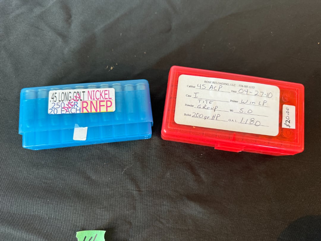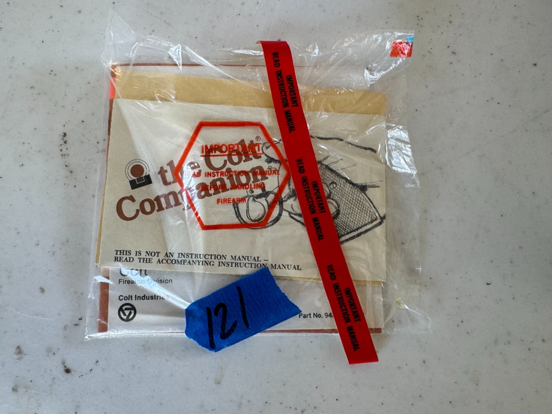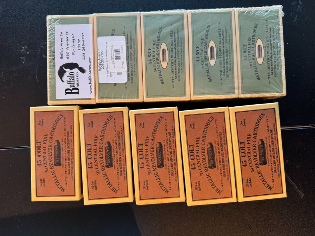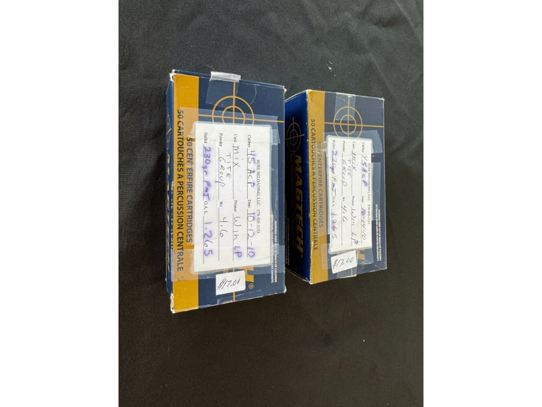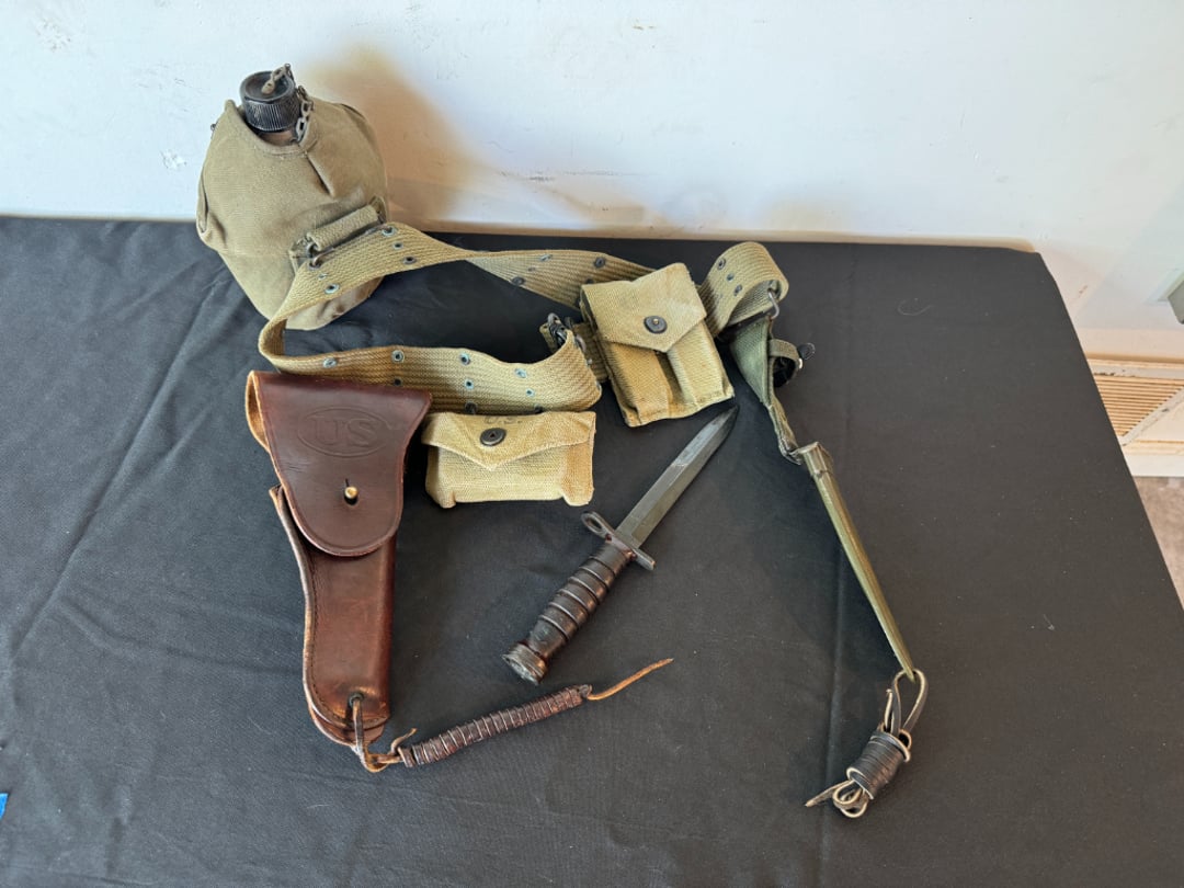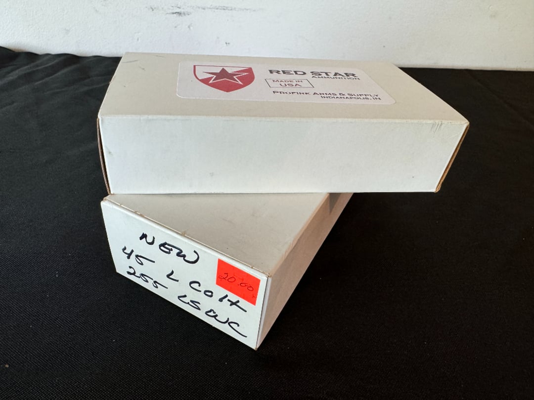 Automatic Pistol .45 m1911A1 Sign, Colt Revolvers & Pistols Tin Sign, Colt Rubber Mat, Reproduction ammo Box , Vintage Red Head Long Rifle Case, Shooting Bag & Ear Plugs 2 Hand Guns , (68) .45 Auto ACP Ammo , 150 .45 Federal Ammunition 23 Grain, 200 Winchester .45 Auto Full Metal Jacket 230 GR., 150 Remington .32 Auto 71 Grain, 100 Reloads .45ACP win LP .230 GR Full Metal Jacket, 70 Reloads .45 ACP, 100 .45 ACP, 150 .32 Auto 71 GR, 400 Winchester 9mm full metal jacket .115 GR, 150 Remington 9mm Luger 147 Grain, Mixed & Partial, 100 .32 Auto, .9MM & .45 Auto, Reloads 50 .45ACP 230Gr & Empty 50 .45 Cases, 30-30, .38 Special, 46 Remington .357 Magnum , Reloads 50 .45 Colt , 2003 Walter p99 9x19, Reloads 100 9x19MM, 100 .44/40 Winchester 200 GR, 1981 Colt .45 ACP MK IV Series 70 Gold Cup, 100 .44/40 Winchester 200 GR, 100 Winchester .45 250Gr John Wayne Edition , 3 Walther p99 10 Round clips, 20 Winchester 30-30 150gr Silvertip , 1953 Beretta .25 Model 418, 40 Winchester 30-30 Win. 150gr John Wayne Edition, 50 Winchester 44-40 win 200gr 150 year edition, Colt Soft Handgun Case, 1943 Colt 1911A1 US Army, 20 Winchester 30-30 Win 150 GR John Wayne edition , 50 Winchester 30-30 Win 150 GR Theodore Roosevelt edition, 40 Winchester 30-30 Win 150gr 150 Year Edition, 40 Winchester 30-30 Win 150gr Oliver F Winchester Edition , 1997 Colt Single Action Army .45 Revolver , 40 Winchester 45 Colt 250gr Oliver F Winchester Edition, Remington .45 Colt MOVIE BLANKS, 20 Winchester 44-40 Little Big Horn Edition , 150 .25 Auto , 1898 Colt Frontier Six Shooter .44/40, 20 Winchester 30-30 170gr , 50 Remington .44-40 200gr Soft Point Bullet , 50 Winchester .44-40 200gr Soft Point Bullet, 1968 Walter PPK 7.65 , 50 Remington .45 Targetmaster 185hr, 20 Winchester 30-30 150gr Silvertip, Walter PPK Black Pistol Grip, (3) 7.65 Clips , After market 7.65 Brown Clip extensions, (2) 7.65 Clips , 60 Remington 30-30 Win 170gr Softtip, 40 Federal 30-30 win 170gr Softpoint Hi-shok , 20 30-30 Winchester 170gr 20 Hawthorne 30-30 win 150gr, 100 .45 Auto , Mossburg 930 .12 GA Semi Auto w/ Light , Gun Cleaning Kit , 70 9MM , Browning A Bolt .30-06 w/ Nikon Buckmaster 3-9x40 Scope, 3 Ammo Cans , World War II Pistol Belt , Cowboy Belt W/ .45 Colt & Buck Knife , Tanker Holster For .45 Army Pistol, 2012 Beretta V02027S Double Barrel .12 GA, .45 Colt Cowboy Leather Holster W/ 18 Rounds .45 Colt , 18 Rounds .12 & .32 Browning Auto , Tristar Raptor DU Black .12GA, 3 Military.45 Clips , 5 .45 Clips , 2 Colt .45 Auto Clips , .32/.380 Leather Holster , 1984 Winchester 1873 .44 Lever Action, Colt 1911 Leather Holster , Bianchi Walter P99 Leather Holster , Colt Single Action Leather Holster, Small Holster For Walther PPK, 1996 Winchester 1894 .30-30 Lever Action , Holster Used in James Bond Movies , NEW Ruger 4 5/8" Blackhawk Leather Holster, 1980 Winchester Model 94 30-30 Win Lever Action , 1911 Holster , Remake US Clip Holster, 60 .45 M1911, 100 .45 M1911, 1943-1948 Winchester Model 94 30-30 Lever Action , 100 .45 M1911, 100 .45 M1911, 150 .45 M1911, 100 .45 M1911, 1904 Winchester Mod 1894 .30 Lever Action , 200 .45 M1911, 150 .45 M1911, 100 .45 M1911, 25 rounds .45 Automatic , 18 M1911 Ammo , US G1 WWII or Korean War Ammo Can, 2 Ammo Cans, 30-06 Die Set, .44-40 3 Die Set, .45 Colt Die, RCBS Master Reloading Kit , Koehlinger Fireguard 2557CTS Safe, Empty Case .45 Long Colt , Reloading Tools, .45 Long Colt Bullets 260gr, Smokeless Powder, Primer Tray, Older Primers, Colt 1911 Tools , Colt 1911 Tools , Winchester Model 94 Ring, winchester rifle leather scabbard, Empty Brass, Locks, & Fake Rounds to Keep Spring Down , 3rd Generation Stag SAA Grips, Colt Single Action Army Tool W/ Colt Tin , Replica Texas Ranger Badges, 1911 Genuine Colt 1911 Grips, Colt Single Action Army Paperwork, Shoulder Holster For .45 Colt , Shoulder Holster For Walther PPK, Vintage Walther Manuals , Vintage Winchester Manuals & Catalogs, Vintage Winchester Manuals & Catalogs, Army Manual M1911A .45 Reprint?, Basic Field Manual & Patch, US Military Hatchet, Collectors Guide Colt .45 1911 & 1911A1, IN handgun law & Travels guide, Colt Firearms Yearly Catalogs, Military Manuals & Mis. John Wayne & Winchester Posters