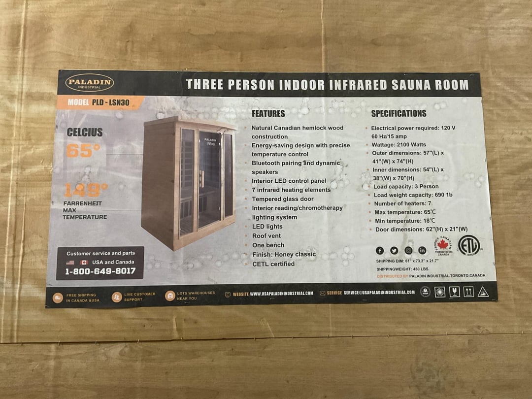 •Paladin 3 Person Indoor Infrared Sauna Room