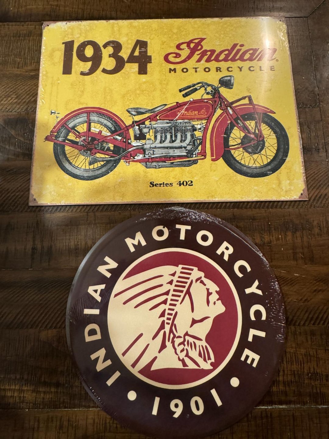 •"2 Retro Vintage Signs" Indian Motorcyles