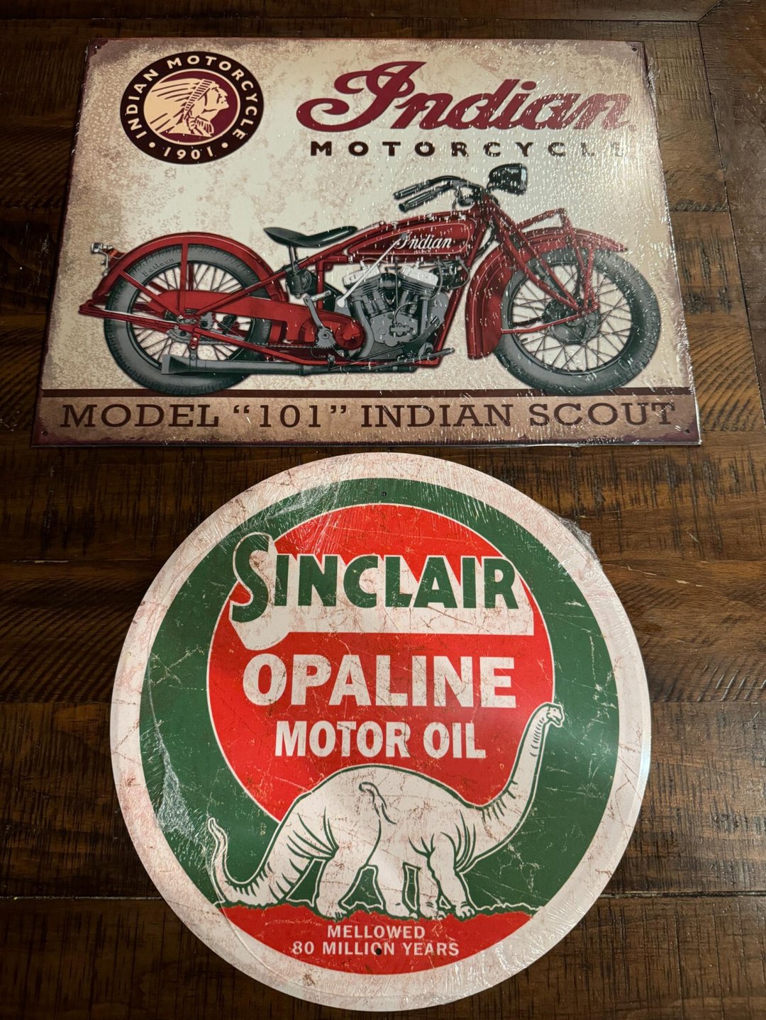 •"2 Retro Vintage Signs" Sinclair & Indian Motorcycle