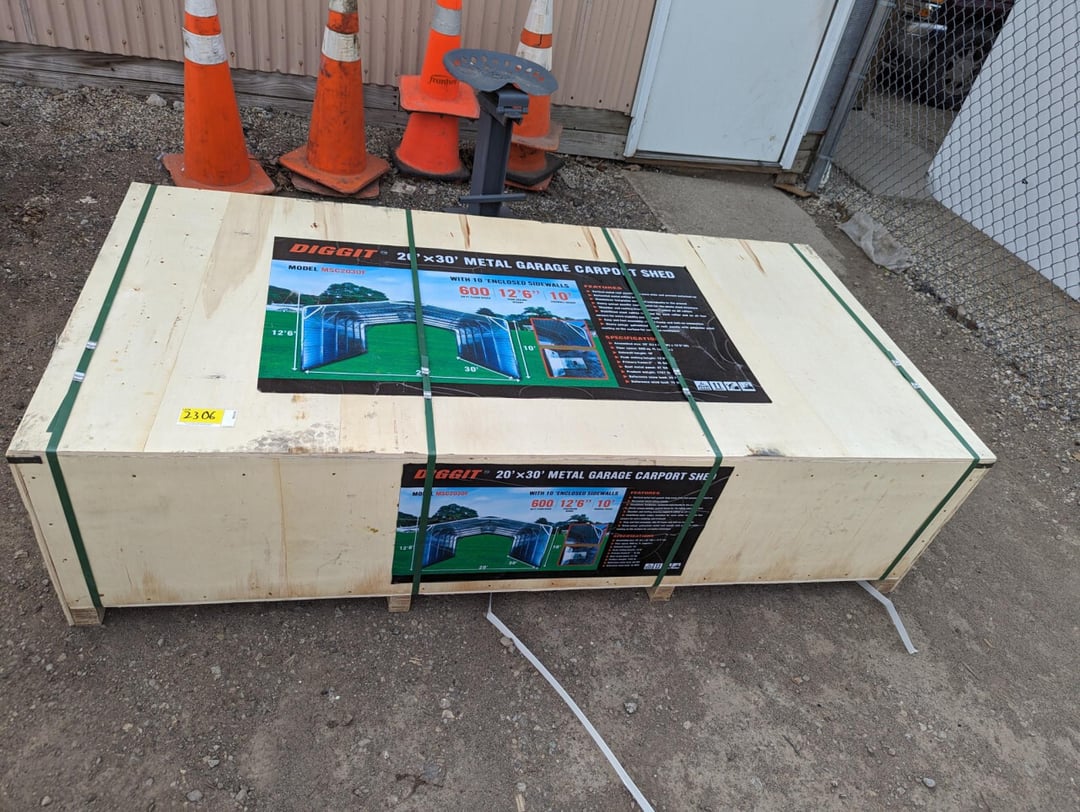 - 100 + Various Skid Loader Attachments, Tool Boxes Workbenches, Iron Gates, Chains & Binders,1 Trip 40' High Side Shipping Container w/ Side Doors, Dome Shelter Containers, Various Truck Take off Parts & Much More!