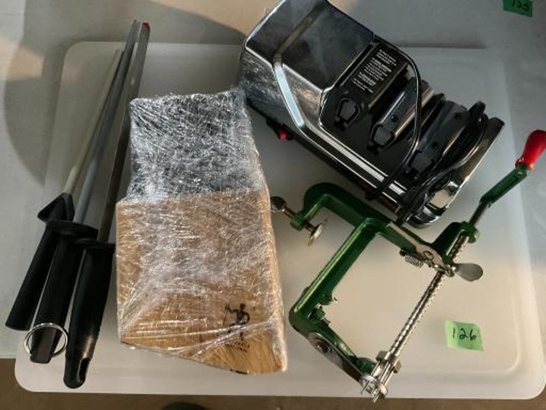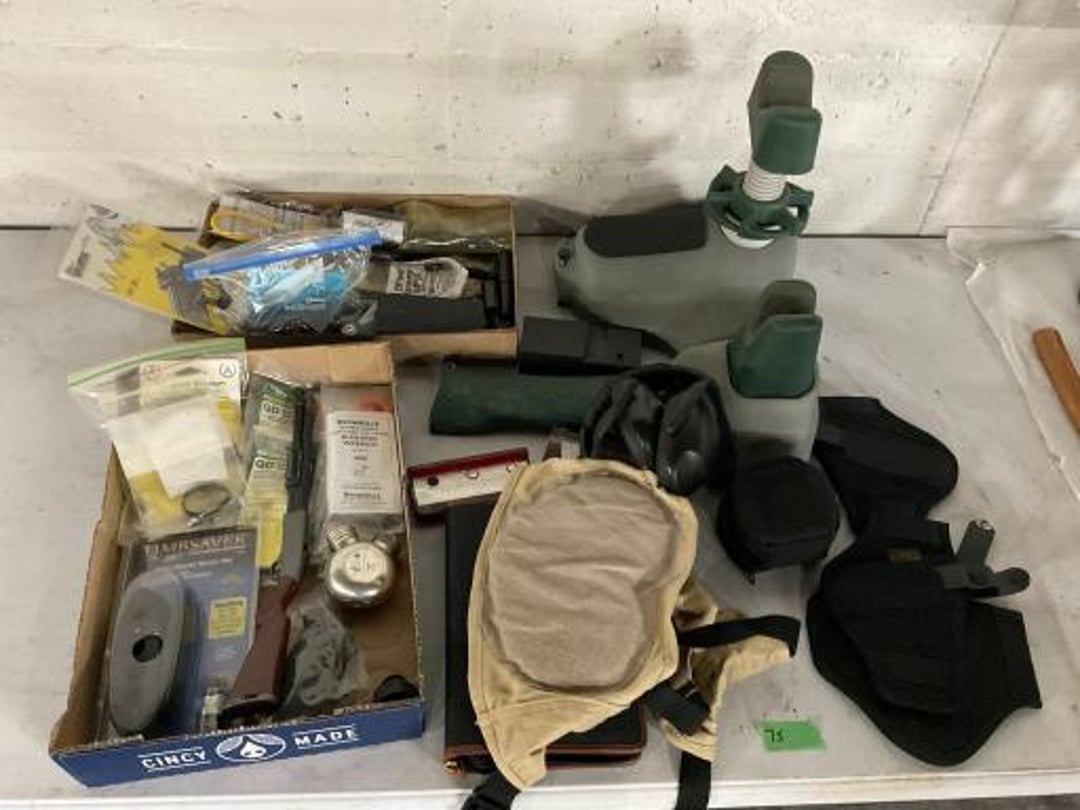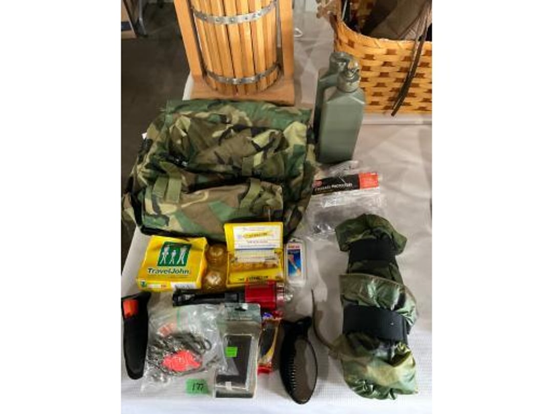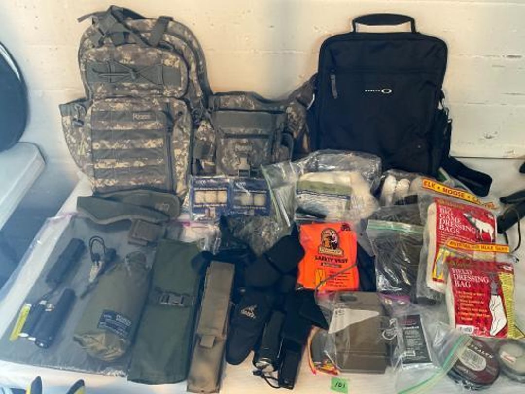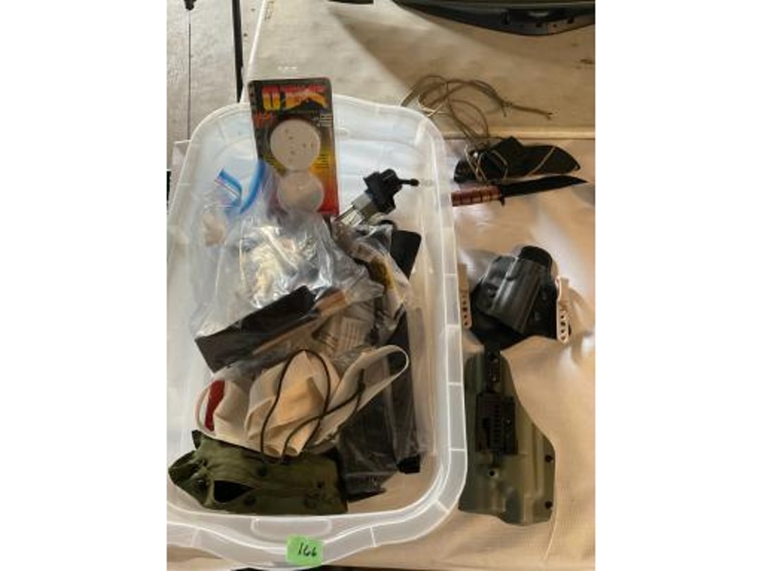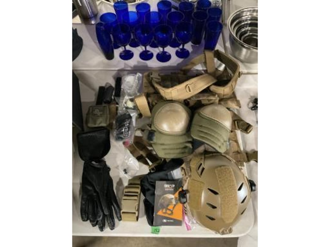 Keller 16' Aluminum Painters Ladder, (2) 5' Aluminum Step Ladders, Rakes, Shovels, Mops, (3) 1/2'' Mill Vice, C clamp, Prairie Clamp, Grizzly Belt Sander W/ extra belts, 1/2'', 1/4'', 3/8'' socket sets, Assorted Craftsman sockets, Shop Craft 1/2" Torque Wrench, Craftsman 1/4" Torque Wrench, 8mm-19mm Craftsman Wrench Set, Assorted Pipe Supply & Hand Tools, Assorted Hand Tools, 26" Tool Box W/ Contents, Assorted Sockets & Ratchets, Wood Chisels & Files, Marples Wooden Mallet, & , 2 Ton Power Pull Come Along , Micronta Range Double & Electrical Cord, Assorted Hand Tools, 19" Plastic tool box W/ Grease Gun &, Thorsen Wrench Set 8mm-19mm, Master Mechanic Wrench Set 1/4"-13/16", Contico Tool Box W/ Contents, 24"x19"x17" Dog Cage, 18" FloPro Fan, Oregon 18" Electric Chainsaw, Mcculloch 16" Electric Chainsaw, Assorted Walking Sticks, Drill Bits & Threading Tools, 21" Plastic Tool Box W/ Contents, 21" Master Mechanic Tool Box W/ , Electrical Cord, ShoeMaker Battery Charger, Electrical Cord W/ Reel, 22" Husky Tool Box W/ Clamps & Stapler, Assorted Tapes, Stapler & , Electric Toro Blower, Brasscraft Shower Valve Wrench Set, Dremel Power Tool, Flaring Tool, Pipe Cutter, Hand Drill, 2 Stanley Planes, Crow Foot Wrench Set 1 1/16"- 2", 16" Plastic Tool Box, 14" Ammo Box, Crowsfoot Wrenches 3/8"- 1 1/4", Good Wrench Set 10mm-19mm, B & D Drill, Jigsaw, Stapler & Torch Kit, (2) 14" Great Neck Pipe Wrenches, Porter Cable & Circular Saw, Dewalt 20V Drill W/ Battery & Charger, Husky 15 Piece Wrench Set 7mm-22mm, 8" & 15" Crescent Wrench, 18" East Wing Smooth Faced Bricklayers Hammer, Assorted Hand Tools, Roberts Carpet Stretcher, Saws & East Wing Hammer, 13" Estwing Bricklayers Hammer, Ryobi Sander & Porter Cable Disk Sander, Husky 11 Piece 1/2" Impact Set, Husky Air Tool Set, Electronic Digital Pallet, Bell Hook Sheep Shears & Triangle, Daisy Receiver Sight & BB's, Gun Cleaning Supply, Luger 8mm Hollow Point Bullets & , 250 .22 Cal Cartridges & Empty .44 Mag Shells, 293 Rounds of .357 Magnum Bullets, 25 Crossman CO2 Cartridges, 40 Copperhead C02 Cartridges, 140 Gold Dot .357 Magnum Bullets, Antler Table tamp & Antler Decor, Assorted Gun Supplies, Cabelas 28x28" Arrow target, Coleman Battery Powered Lantern, Battery Powered Coleman Lantern, Cabelas 28" x 28" Arrow target, Magnum Plano Tackle Box W/ Lures & , Corona Professionals 23" Tempered Steel Machete, Corona Professionals 23" Tempered Steel Machete, (12) Traditional Hunter Arrows W/ Hard Case, JT Paintball Mask, JT Paintball Mask, Everlast Sparring Gloves & Century Pads, Knee pads, Elbow Pads & Helmets, Frosts Heavy Duty Knife , Hunting Calls & Fanny Pack, Cold Steel Rubber Training Military Knives, Cold Steel Rubber Training Military Knives, Arrow Roadcrafter Riding Gear, HJC Helmet AC-10 , Guyot Designs water Bottles & Flip Pump, Cabelas Bag & High Sierra Satchel, Assorted Camping Supply, Into The Wild Large Kite, 18" Machete, 17.5" CRKT Machete , Fiskars Hatchet & Recon Knife, Large Assortment Of Outdoor Gear, (2) 24" Laundry Baskets, (2) 24" Laundry Baskets, RubberMaid 24" Hamper, 34" Igloo Cooler, Large Assortment Of Camera Gear, (2) Canon EOS Cameras, Vintage Kodak Filters & Booklets, Canon AE 1 Camera W/ Extra Lenses & Bag, Indiana Triumphant Tribute Print, S&P Shaker, Panasonic Mixer & , Cuisinart Toaster Oven, Cutting Board & Pressure Cooker, Lodge Assorted Cast Iron, Lodge Cast Kettle, Food Saver, Le Creuset Pot, Wonder Junior Hand Operated Grain Mill, Presto Fry Daddy & Hamilton Beach Toaster, Plates, Mugs, Bowls, Etc., Emeril & Revere Assorted Pots & Pans, Crock Pot, Meat Chopper, Strainer, Baking Sheets &, Stainless Mixing Bowl & Other Bowls, Blue Drinking Glasses & Wine Glasses, Cutting Board, Apple Peeler, Knife Sharpener , Stainless Mixing Bowl Set, Baking Pans & Granite Ware, Singer Sewing Machine W/ Foot Pedal, Civil War Stamps 32 Set USA, Smith N Wesson Watch, Accutron Watch, Smith N Wesson Watch Stainless steel, Wheat Pennies, 1949, 1964 Nickels & 1942 Dime, (2) EngelHard .999 Fine Silver 1 Troy OZ., Mexico 1948 Silver Coin, (2) Spools Of String, Marble Mortar & Pestle, Glass Pitcher & (2) Canister Jars, Pie Pans & Sugar Shakers, Simax Glass Roaster, Wine Press & Wine Bottles, Decorative Pillows, Basket & Wine Rack, Assorted Hand Tools, Walkie Talkies &, (4) Fixed Blade Knives, Assorted Folding Pocket Knives, Case XX Fixed Blade Knife & Vintage Mexican Knife, Heckler & Koch .45 Auto, Heckler & Koch .45 Auto Tactical , Bushmaster XM15-E2S .223 & 5.56 w/ Light , Derringer Philadelphia Black Powder Pistol , ADG Hard Gun Case , 26 Boxes Winchester 5.56 55GR Metal jacket , 205 Rounds Hornady .223 REM , 160 Rounds 5.56 , 335 rounds .223 , 4 Boxes Hornady .223 Rem .55 gr , 4 Boxes Gold Dot .45 Auto 230 GR, 38 Rounds Federal .45 Auto, (6) .556 Cal Magazine, (1) .45 Cal Magazine, (9) Brownells Magazines, Gun Lasers, Lock Box & Flash Light, Pot Wire, Foam Cutter & Mini Mat Cutter, Ram Rod Cleaners, Apex B Plus Computer Charger, Adjustable Gun Stocks & Slings, Assorted Holsters, K Bar Knife & Gun Parts, Scott Seeder & Blower Pipes, Panasonic 42" Flat Screen TV W/ Remote, Electric Acoustic Ovation Guitar , Cahaya Sheet Music Stand, (2) Violin Soft Bags, Bear ML13 64" Montana Longbow W/ Case, Leather Crafting Supplies W/ Piano Chest, Scale Foot Massager & Amber Glass Jars, Plastic Totes W/ Loon Lake Dish Set &, Fiskars Hatchet, Tactical & Survival Gear, Mower Blades, Shears, Knee pads, Rope, Etc., Grilling Utensils, War Hammer, Lights, Shoe Stays, Rope, Etc., ExFil Helmet, Knee Pads, Molle Vest, Etc., Coleman Max Electric Lanterns, Coleman Max Electric Lanterns, Leather Whip, Sentry 1250 Safe, Apple TV, Logitech Speaker, Sony VHS Play , (2) Fluted Steel Buckler 12", Oil Lamp, Wicks, Dietz Lantern & More, Travel Tool Kit, 16" Tool Box, 11" Calterm Tool Box, Hyper Tough ToolBox W/ Tools & Man Crate, Milwaukee Electric Sawzall, 26" Stack On Tool Box, 16" & 19" Tool Boxes, Harley Ride N Shine 5 Gallon Tool Bucket, Dreo Electric Space Heater, Dreo Ele