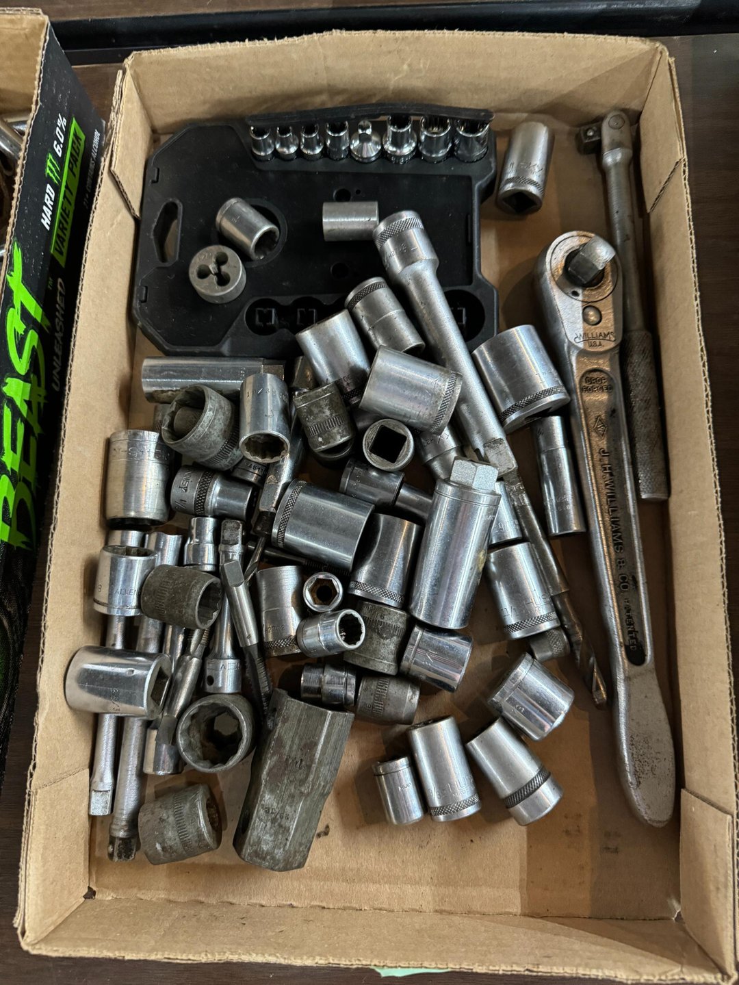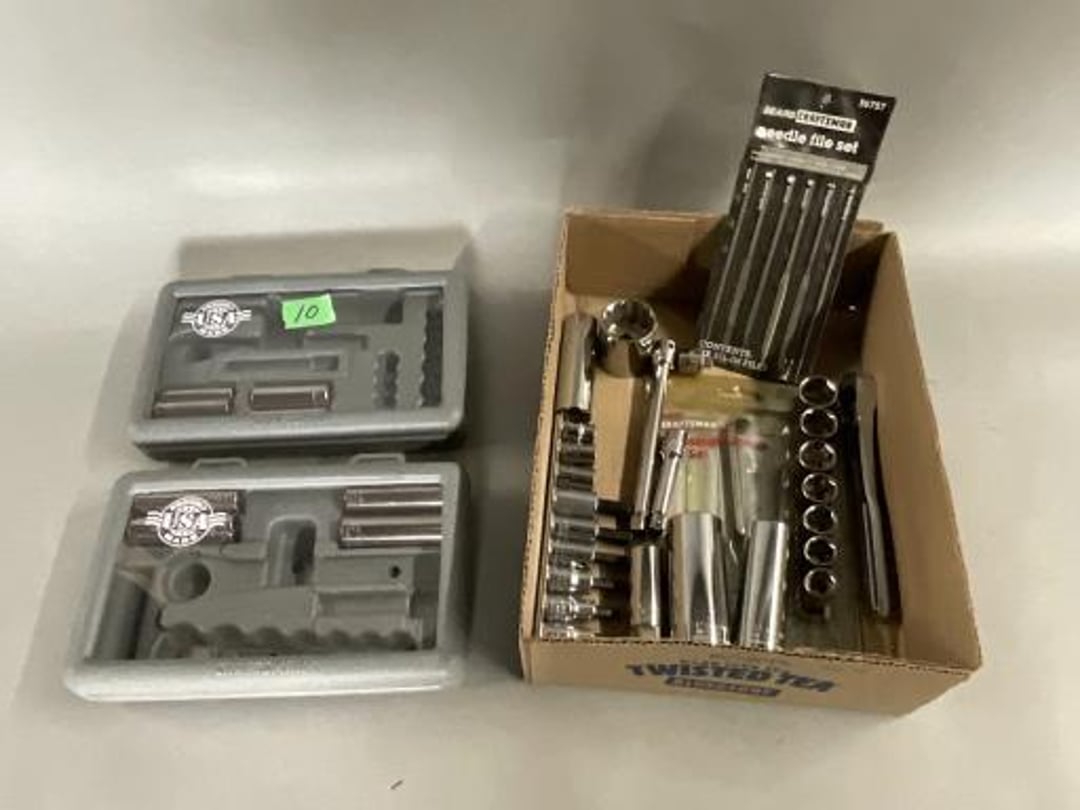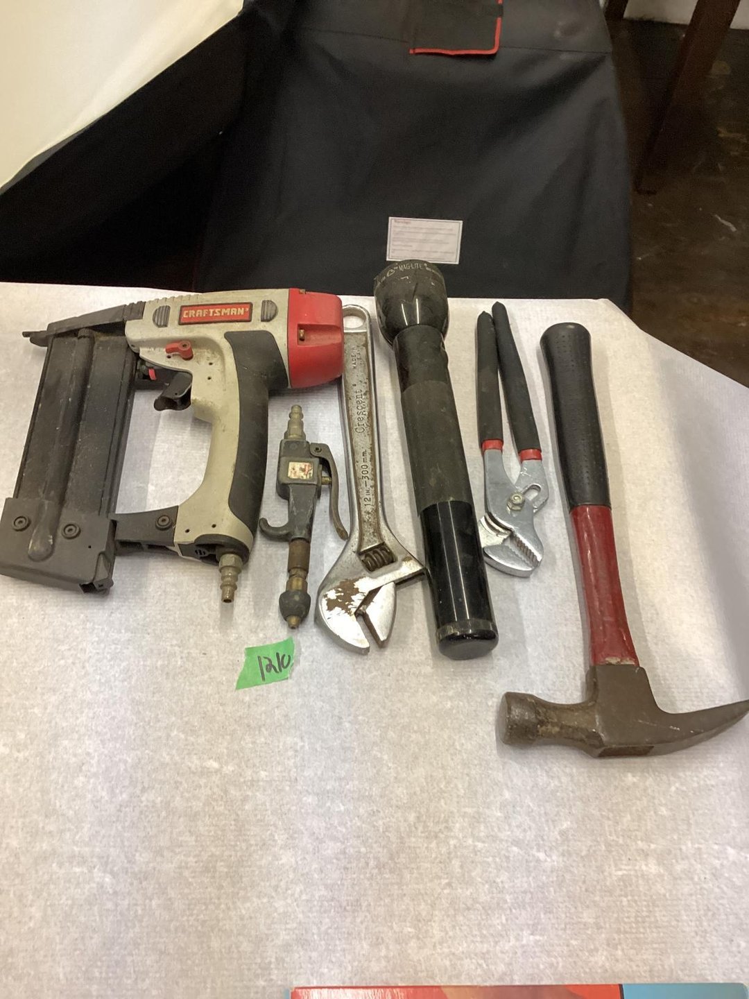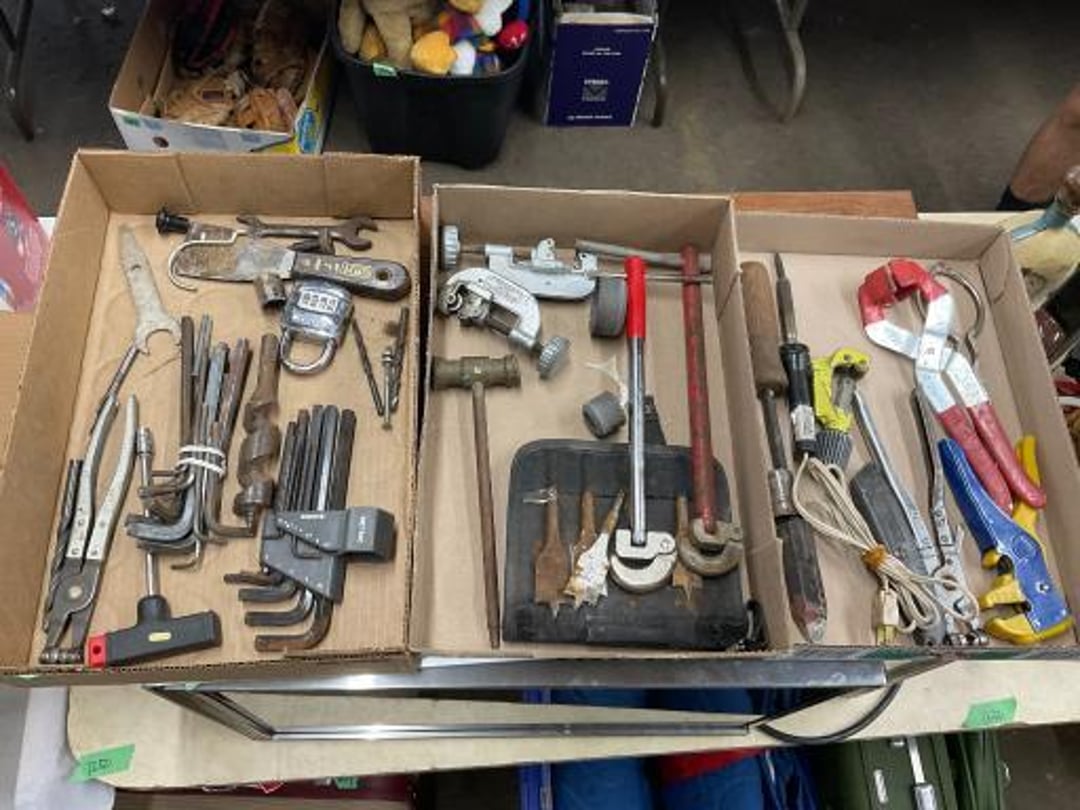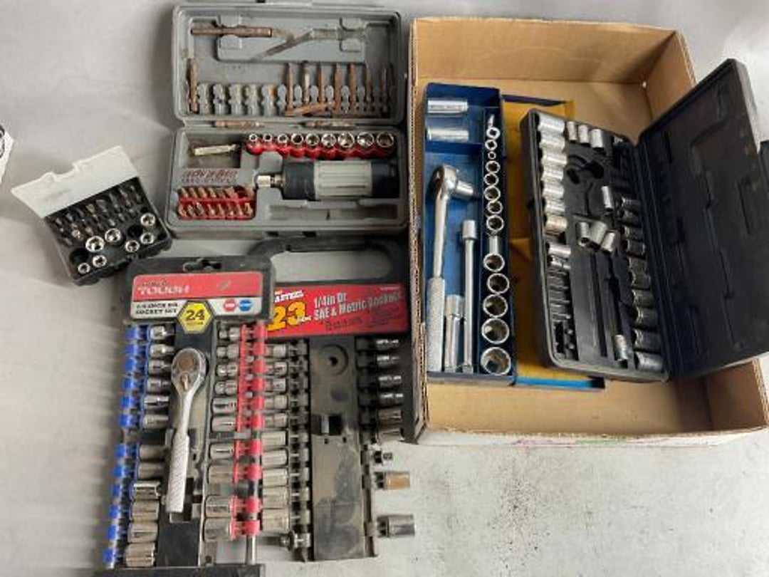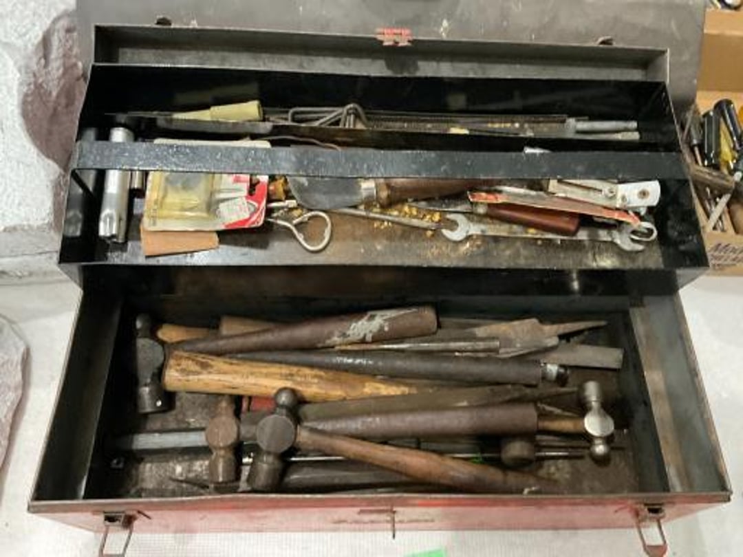Keller 16' Aluminum Painters Ladder, (2) 5' Aluminum Step Ladders, Rakes, Shovels, Mops, (3) 1/2'' Mill Vice, C clamp, Prairie Clamp, Grizzly Belt Sander W/ extra belts, 1/2'', 1/4'', 3/8'' socket sets, Assorted Craftsman sockets, Shop Craft 1/2" Torque Wrench, Craftsman 1/4" Torque Wrench, 8mm-19mm Craftsman Wrench Set, Assorted Pipe Supply & Hand Tools, Assorted Hand Tools, 26" Tool Box W/ Contents, Assorted Sockets & Ratchets, Wood Chisels & Files, Marples Wooden Mallet, & , 2 Ton Power Pull Come Along , Micronta Range Double & Electrical Cord, Assorted Hand Tools, 19" Plastic tool box W/ Grease Gun &, Thorsen Wrench Set 8mm-19mm, Master Mechanic Wrench Set 1/4"-13/16", Contico Tool Box W/ Contents, 24"x19"x17" Dog Cage, 18" FloPro Fan, Oregon 18" Electric Chainsaw, Mcculloch 16" Electric Chainsaw, Assorted Walking Sticks, Drill Bits & Threading Tools, 21" Plastic Tool Box W/ Contents, 21" Master Mechanic Tool Box W/ , Electrical Cord, ShoeMaker Battery Charger, Electrical Cord W/ Reel, 22" Husky Tool Box W/ Clamps & Stapler, Assorted Tapes, Stapler & , Electric Toro Blower, Brasscraft Shower Valve Wrench Set, Dremel Power Tool, Flaring Tool, Pipe Cutter, Hand Drill, 2 Stanley Planes, Crow Foot Wrench Set 1 1/16"- 2", 16" Plastic Tool Box, 14" Ammo Box, Crowsfoot Wrenches 3/8"- 1 1/4", Good Wrench Set 10mm-19mm, B & D Drill, Jigsaw, Stapler & Torch Kit, (2) 14" Great Neck Pipe Wrenches, Porter Cable & Circular Saw, Dewalt 20V Drill W/ Battery & Charger, Husky 15 Piece Wrench Set 7mm-22mm, 8" & 15" Crescent Wrench, 18" East Wing Smooth Faced Bricklayers Hammer, Assorted Hand Tools, Roberts Carpet Stretcher, Saws & East Wing Hammer, 13" Estwing Bricklayers Hammer, Ryobi Sander & Porter Cable Disk Sander, Husky 11 Piece 1/2" Impact Set, Husky Air Tool Set, Electronic Digital Pallet, Bell Hook Sheep Shears & Triangle, Daisy Receiver Sight & BB's, Gun Cleaning Supply, Luger 8mm Hollow Point Bullets & , 250 .22 Cal Cartridges & Empty .44 Mag Shells, 293 Rounds of .357 Magnum Bullets, 25 Crossman CO2 Cartridges, 40 Copperhead C02 Cartridges, 140 Gold Dot .357 Magnum Bullets, Antler Table tamp & Antler Decor, Assorted Gun Supplies, Cabelas 28x28" Arrow target, Coleman Battery Powered Lantern, Battery Powered Coleman Lantern, Cabelas 28" x 28" Arrow target, Magnum Plano Tackle Box W/ Lures & , Corona Professionals 23" Tempered Steel Machete, Corona Professionals 23" Tempered Steel Machete, (12) Traditional Hunter Arrows W/ Hard Case, JT Paintball Mask, JT Paintball Mask, Everlast Sparring Gloves & Century Pads, Knee pads, Elbow Pads & Helmets, Frosts Heavy Duty Knife , Hunting Calls & Fanny Pack, Cold Steel Rubber Training Military Knives, Cold Steel Rubber Training Military Knives, Arrow Roadcrafter Riding Gear, HJC Helmet AC-10 , Guyot Designs water Bottles & Flip Pump, Cabelas Bag & High Sierra Satchel, Assorted Camping Supply, Into The Wild Large Kite, 18" Machete, 17.5" CRKT Machete , Fiskars Hatchet & Recon Knife, Large Assortment Of Outdoor Gear, (2) 24" Laundry Baskets, (2) 24" Laundry Baskets, RubberMaid 24" Hamper, 34" Igloo Cooler, Large Assortment Of Camera Gear, (2) Canon EOS Cameras, Vintage Kodak Filters & Booklets, Canon AE 1 Camera W/ Extra Lenses & Bag, Indiana Triumphant Tribute Print, S&P Shaker, Panasonic Mixer & , Cuisinart Toaster Oven, Cutting Board & Pressure Cooker, Lodge Assorted Cast Iron, Lodge Cast Kettle, Food Saver, Le Creuset Pot, Wonder Junior Hand Operated Grain Mill, Presto Fry Daddy & Hamilton Beach Toaster, Plates, Mugs, Bowls, Etc., Emeril & Revere Assorted Pots & Pans, Crock Pot, Meat Chopper, Strainer, Baking Sheets &, Stainless Mixing Bowl & Other Bowls, Blue Drinking Glasses & Wine Glasses, Cutting Board, Apple Peeler, Knife Sharpener , Stainless Mixing Bowl Set, Baking Pans & Granite Ware, Singer Sewing Machine W/ Foot Pedal, Civil War Stamps 32 Set USA, Smith N Wesson Watch, Accutron Watch, Smith N Wesson Watch Stainless steel, Wheat Pennies, 1949, 1964 Nickels & 1942 Dime, (2) EngelHard .999 Fine Silver 1 Troy OZ., Mexico 1948 Silver Coin, (2) Spools Of String, Marble Mortar & Pestle, Glass Pitcher & (2) Canister Jars, Pie Pans & Sugar Shakers, Simax Glass Roaster, Wine Press & Wine Bottles, Decorative Pillows, Basket & Wine Rack, Assorted Hand Tools, Walkie Talkies &, (4) Fixed Blade Knives, Assorted Folding Pocket Knives, Case XX Fixed Blade Knife & Vintage Mexican Knife, Heckler & Koch .45 Auto, Heckler & Koch .45 Auto Tactical , Bushmaster XM15-E2S .223 & 5.56 w/ Light , Derringer Philadelphia Black Powder Pistol , ADG Hard Gun Case , 26 Boxes Winchester 5.56 55GR Metal jacket , 205 Rounds Hornady .223 REM , 160 Rounds 5.56 , 335 rounds .223 , 4 Boxes Hornady .223 Rem .55 gr , 4 Boxes Gold Dot .45 Auto 230 GR, 38 Rounds Federal .45 Auto, (6) .556 Cal Magazine, (1) .45 Cal Magazine, (9) Brownells Magazines, Gun Lasers, Lock Box & Flash Light, Pot Wire, Foam Cutter & Mini Mat Cutter, Ram Rod Cleaners, Apex B Plus Computer Charger, Adjustable Gun Stocks & Slings, Assorted Holsters, K Bar Knife & Gun Parts, Scott Seeder & Blower Pipes, Panasonic 42" Flat Screen TV W/ Remote, Electric Acoustic Ovation Guitar , Cahaya Sheet Music Stand, (2) Violin Soft Bags, Bear ML13 64" Montana Longbow W/ Case, Leather Crafting Supplies W/ Piano Chest, Scale Foot Massager & Amber Glass Jars, Plastic Totes W/ Loon Lake Dish Set &, Fiskars Hatchet, Tactical & Survival Gear, Mower Blades, Shears, Knee pads, Rope, Etc., Grilling Utensils, War Hammer, Lights, Shoe Stays, Rope, Etc., ExFil Helmet, Knee Pads, Molle Vest, Etc., Coleman Max Electric Lanterns, Coleman Max Electric Lanterns, Leather Whip, Sentry 1250 Safe, Apple TV, Logitech Speaker, Sony VHS Play , (2) Fluted Steel Buckler 12", Oil Lamp, Wicks, Dietz Lantern & More, Travel Tool Kit, 16" Tool Box, 11" Calterm Tool Box, Hyper Tough ToolBox W/ Tools & Man Crate, Milwaukee Electric Sawzall, 26" Stack On Tool Box, 16" & 19" Tool Boxes, Harley Ride N Shine 5 Gallon Tool Bucket, Dreo Electric Space Heater, Dreo Ele