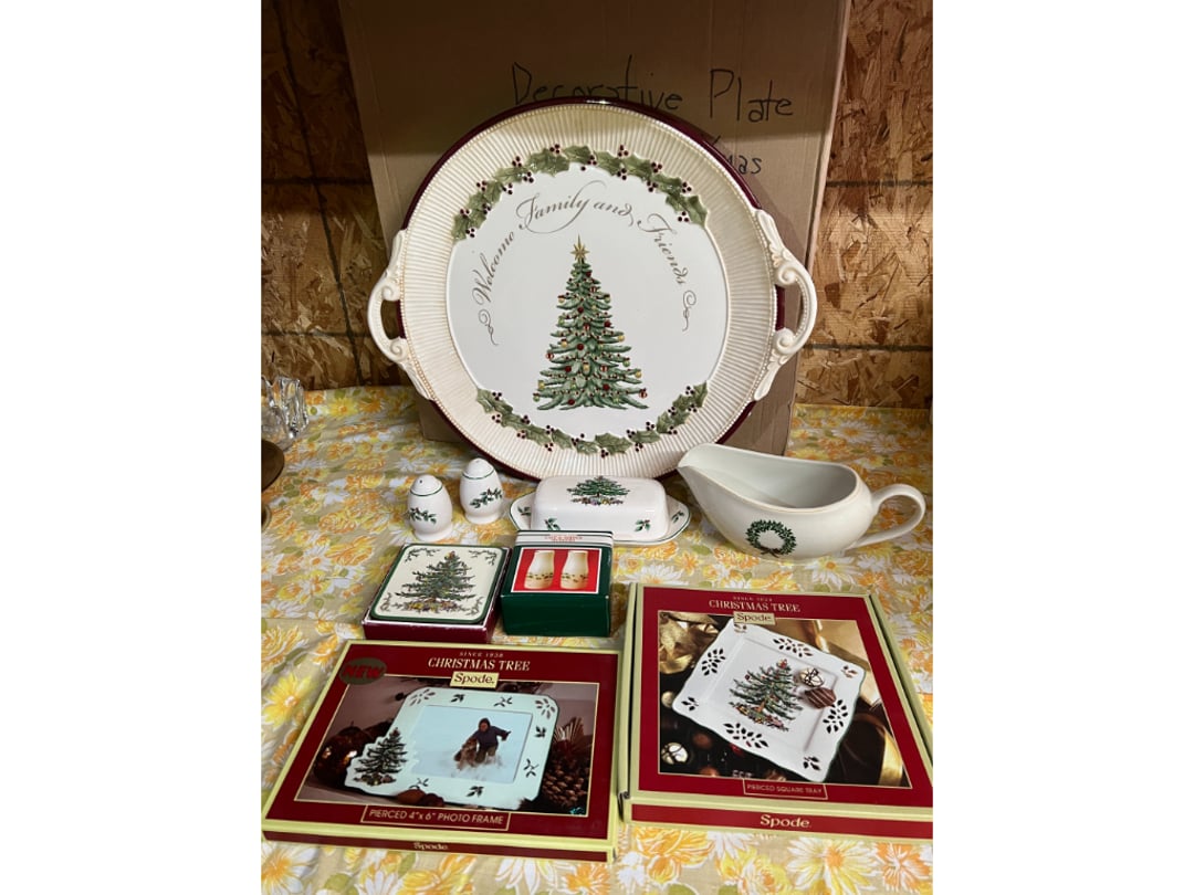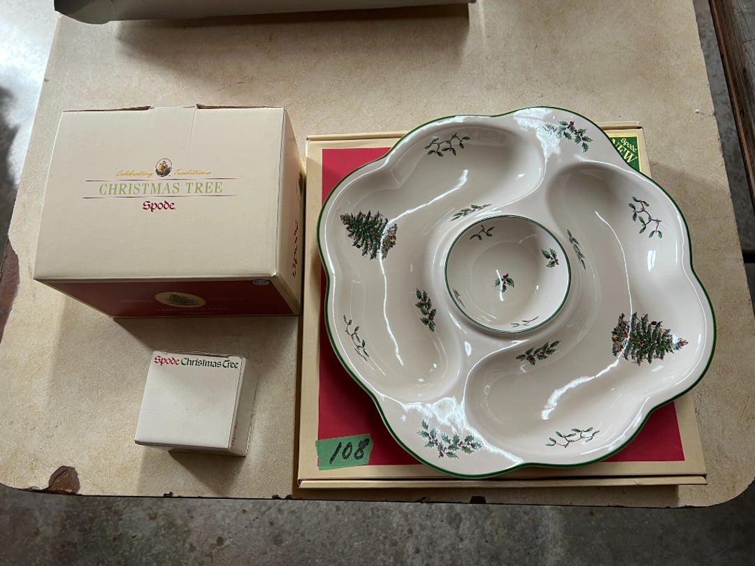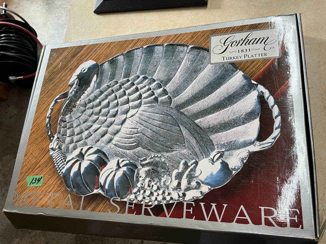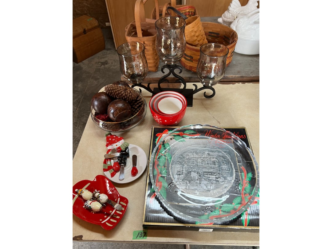 • Heavy Metal & Glass Candle Holder, Christmas Plate, (Lot #137)