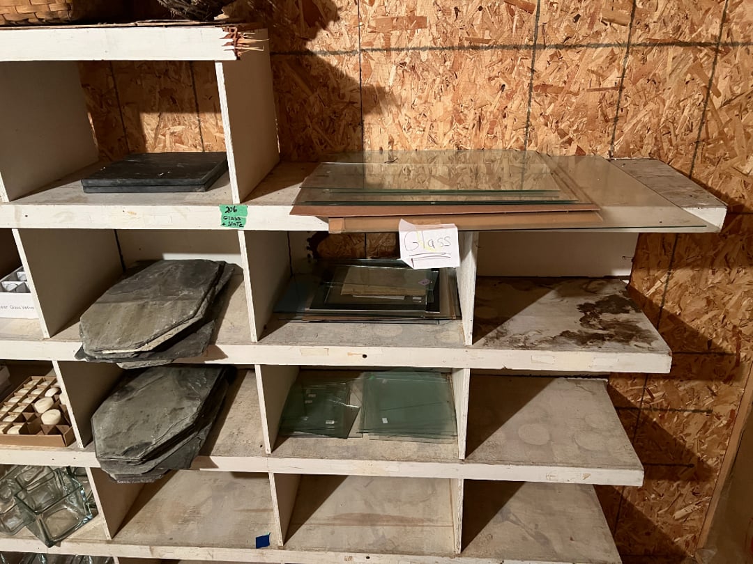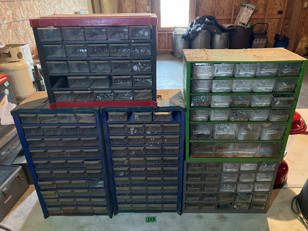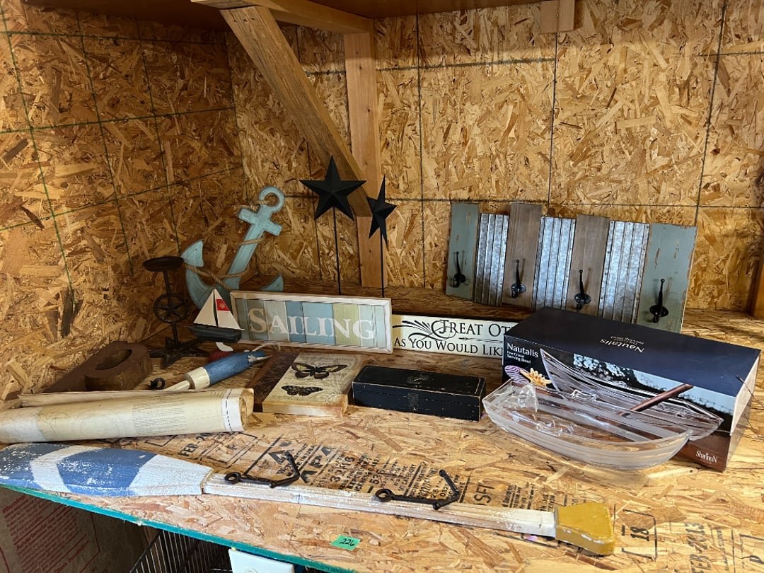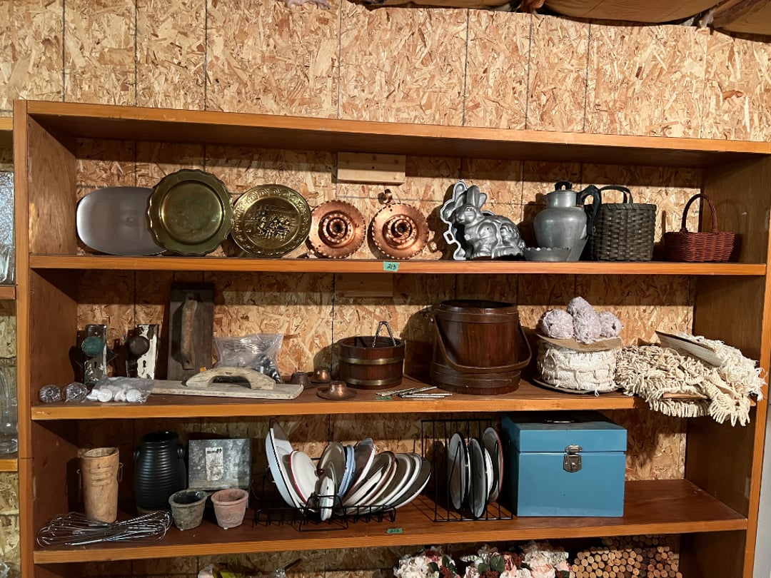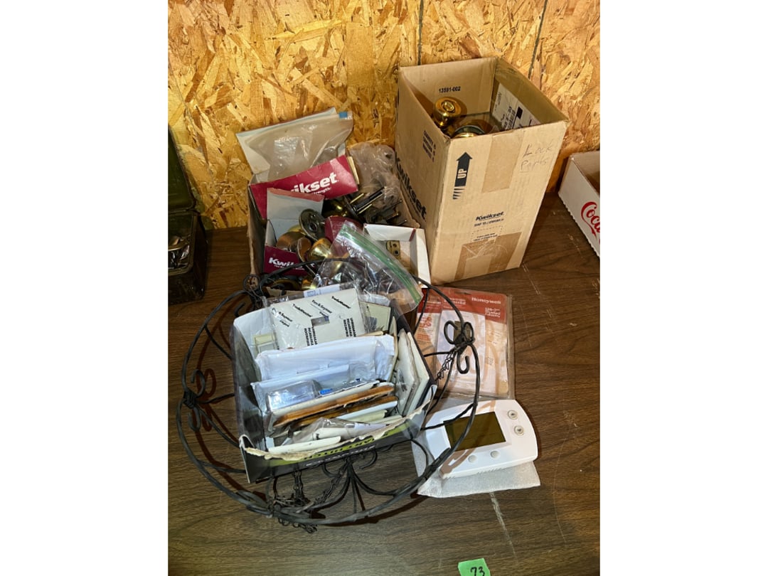 • Contents of 3 Shelves-Antique Door & Drawer hard- (Lot #213)