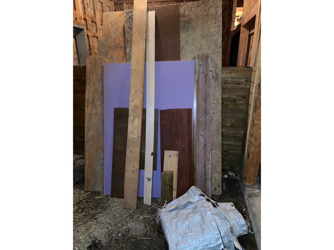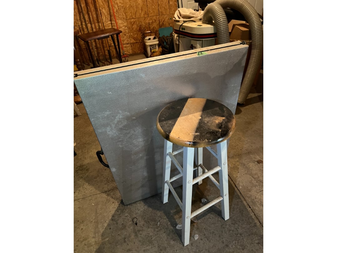 • Easel, Pallet, Wood Ironing Board Top, Stove for (Lot #84)