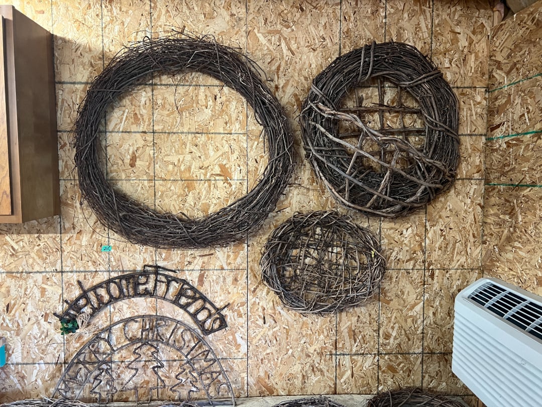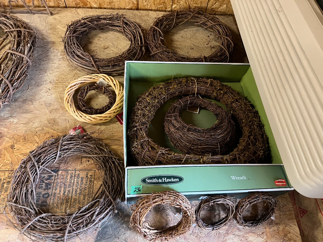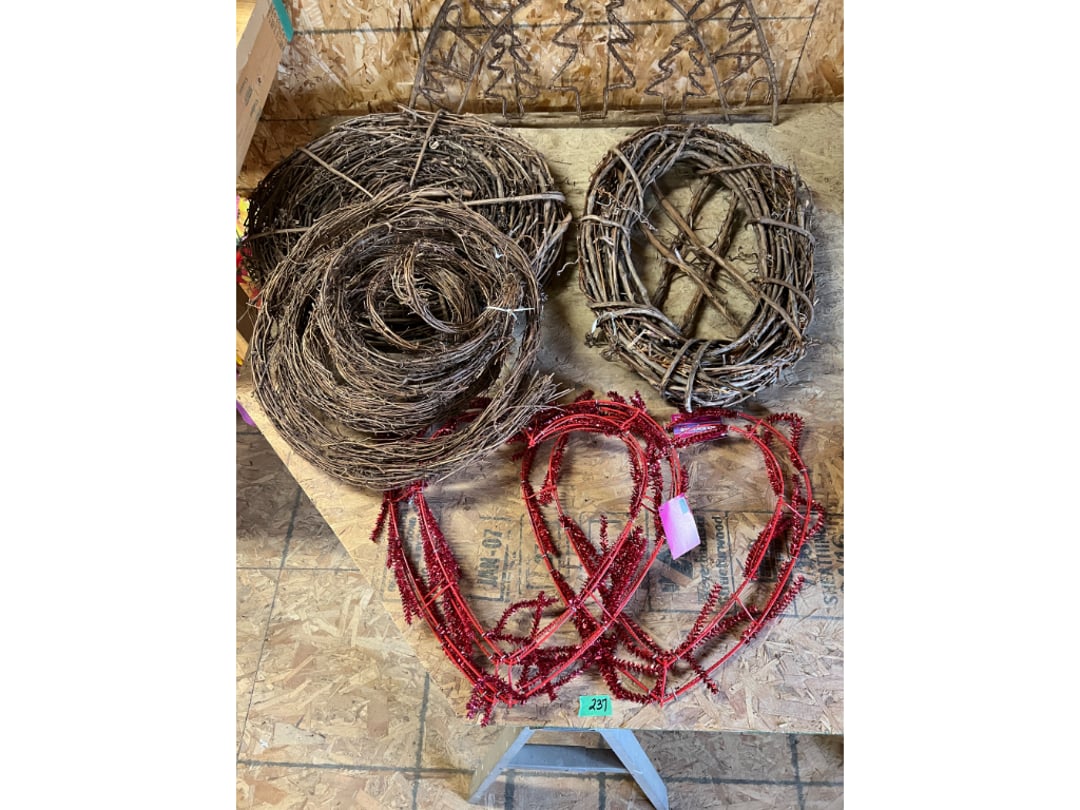 • Grapevine Wreaths & wire Hearts (Lot #237)