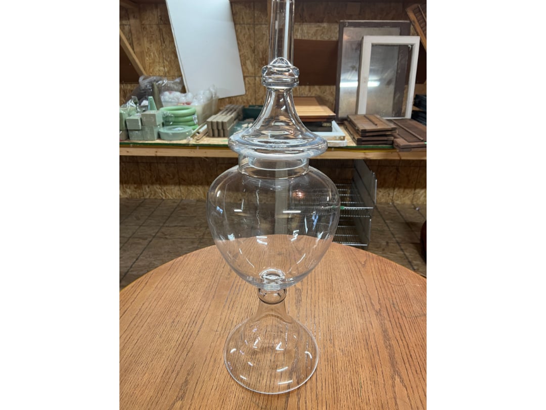 • 28" Tall Apothecary Jar w/ Finial Lid & Footed Ped- (Lot #246)
