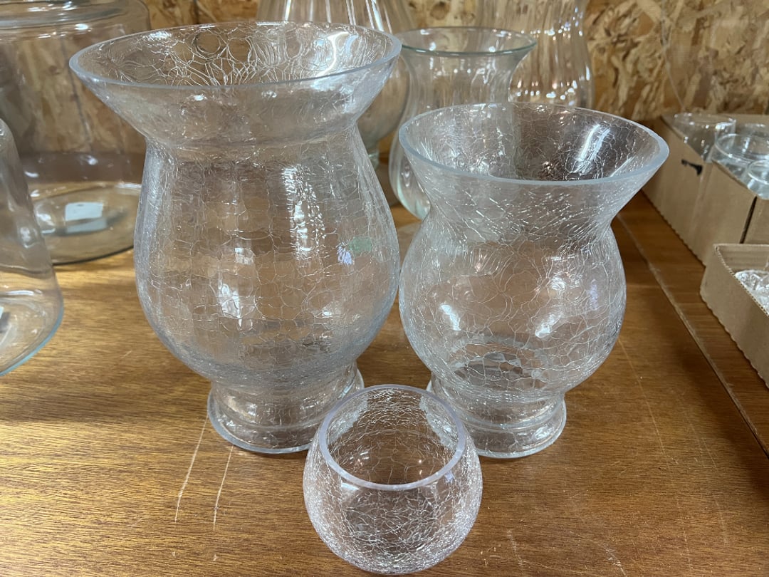 • (3) Crackle Glass Hurricane Vases (Lot #250)