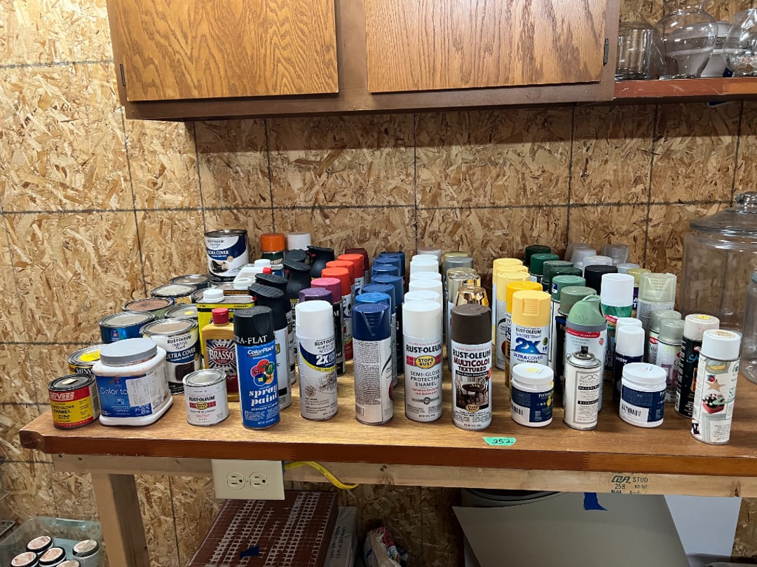 • 3 Tier Metal Rack, Paints & Primers (Lot #253)