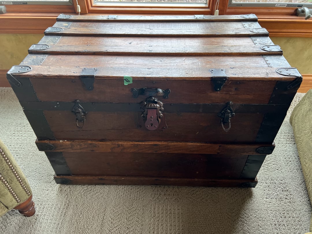 • Antique Wood Trunk w/inside Tray (Lot #28)