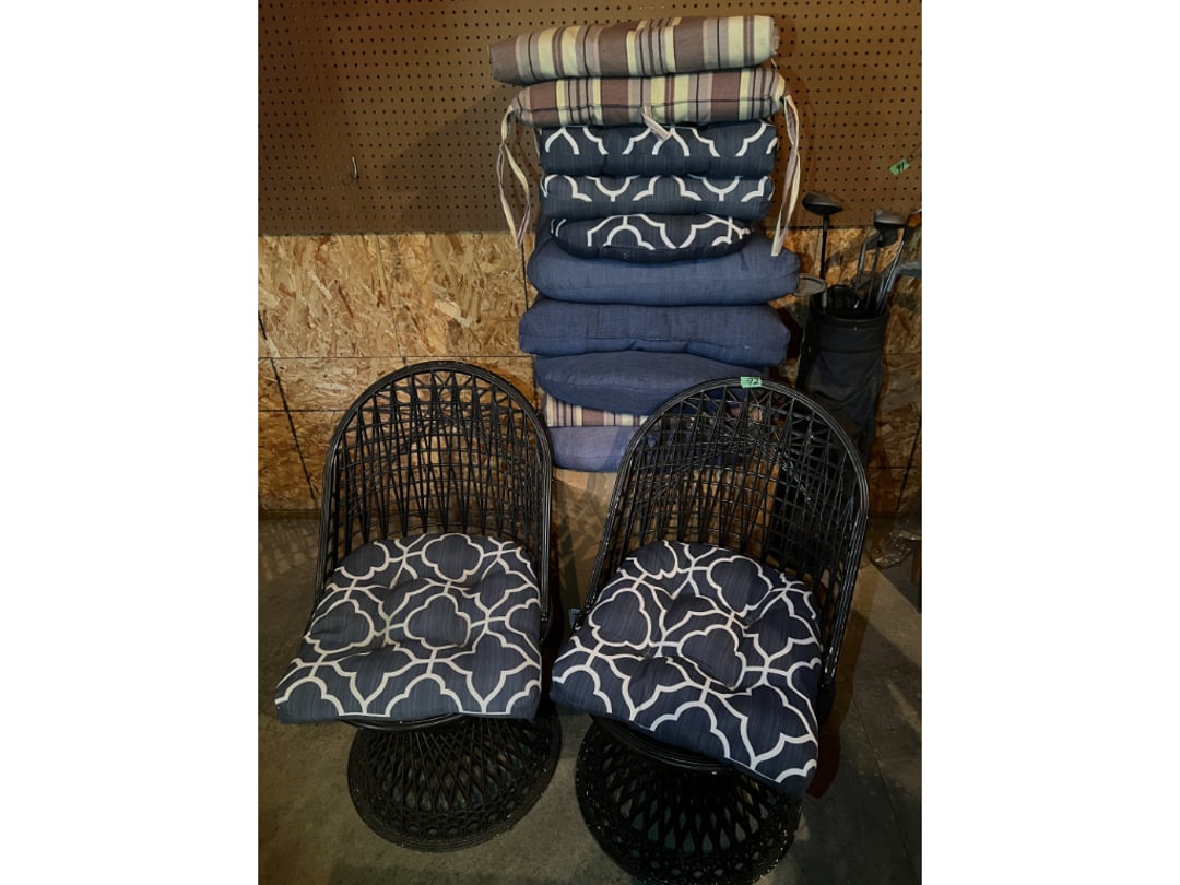 • (2) Reclining Metal Lawn Chairs w/ cushions, Rustic (Lot #3)