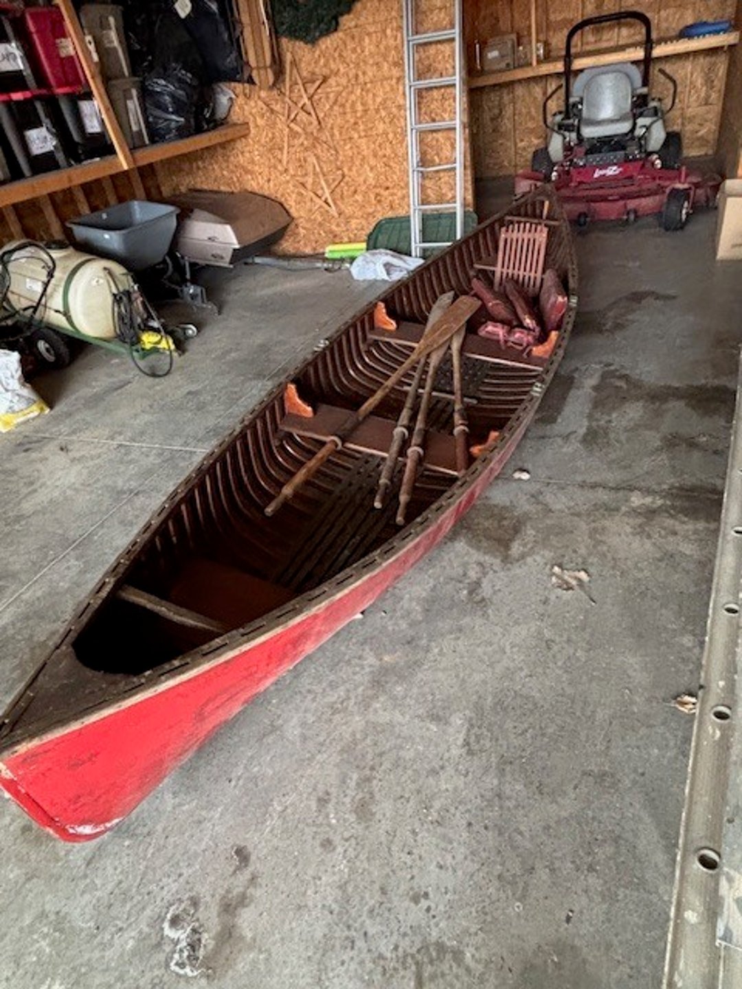• Antique Canoe 1935 Canvas Fiberglassed in 1990 (Lot #20)