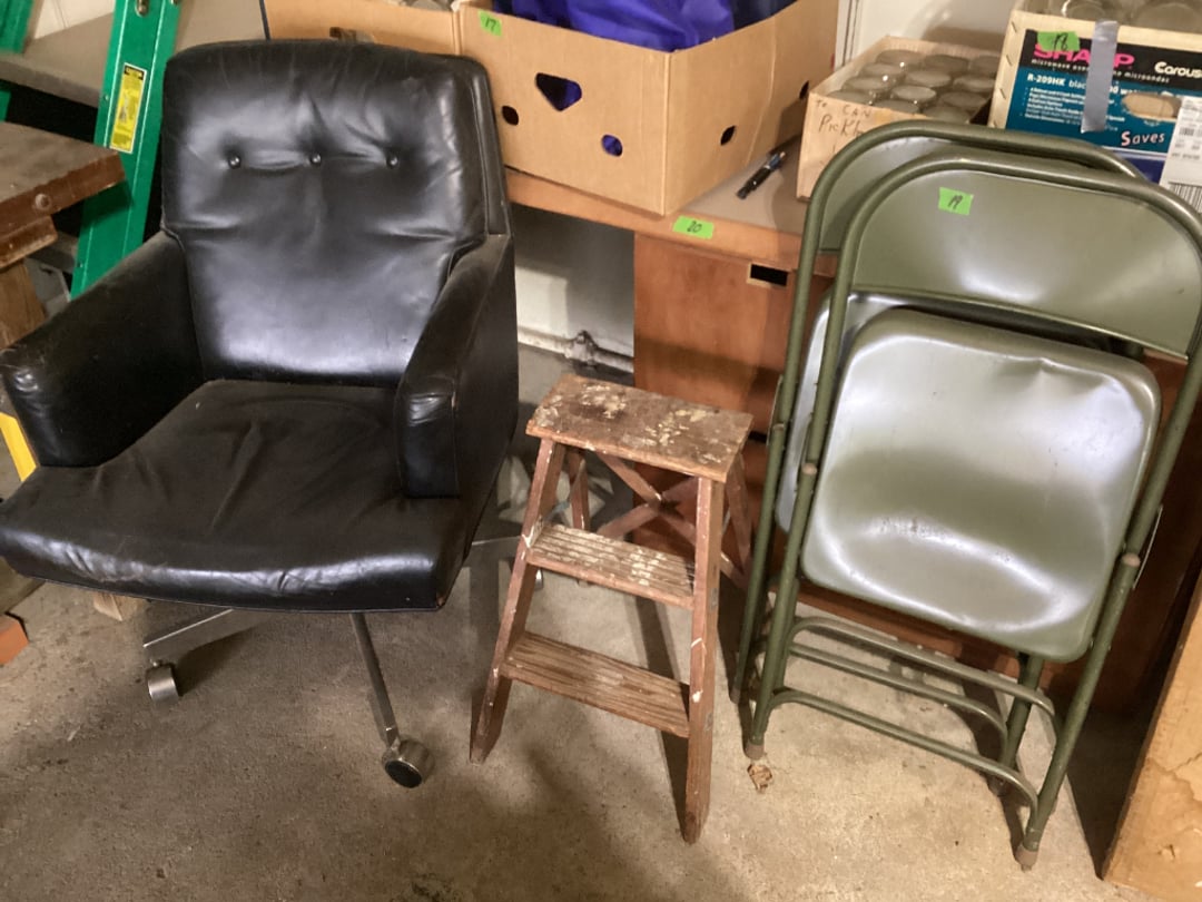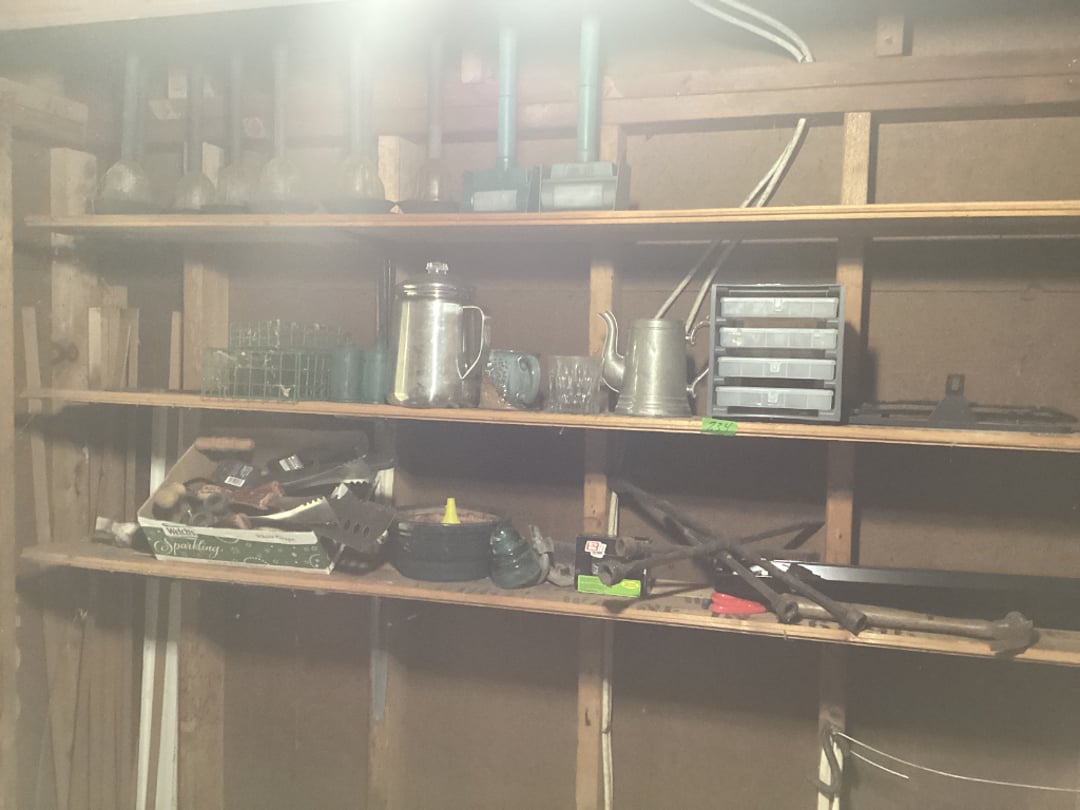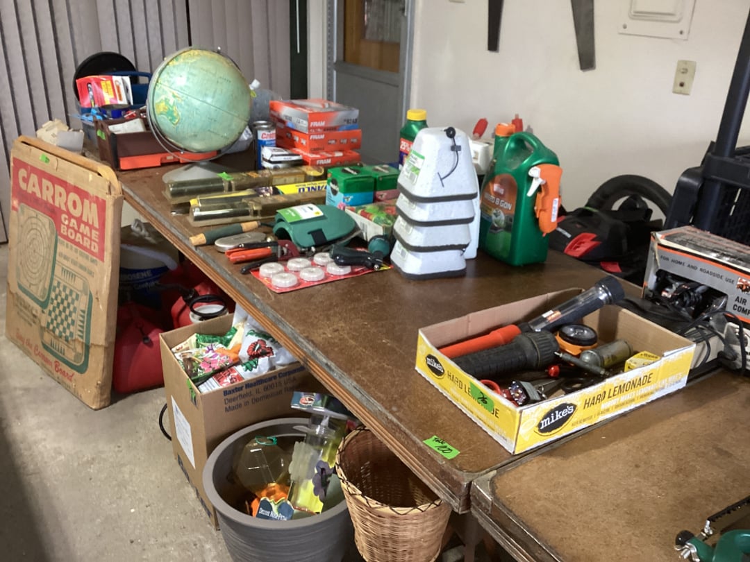 6' Steel Ramps, Brooms & Shovels, Igloo Legend 40 Cooler, Cat Litter, Shells, Hummingbird Feeder, Project Dresser, Metal Shelf W/ Contents, Assorted Outdoor Yard Supply, Microwave Stand, & Floor Lamp, 3 New Dewalt 25' Electrical Cords, B&D Jigsaw & Drill, Craftsman Nail Gun, Husqvarna 130BT Backpack Blower, Craftsman Router W/ Template, Garage Workbench, 6' 225 lb Werner Step Ladder, Modern Business, Marriage & Money Books, Handyman, Do it yourself & Other Assorted Books, Presto Cooker- Canner 21 QT, Cloth Grocery Bags & Box of Vases/ Bottles, 2 Boxes of Canning Jars, 2 Folding Chairs, 2' Step Ladder & Leather Desk Chair, Garage Makeshift Desk W/ 2 Metal File Cabs & 2 Wood Cabs, 6 Gallon Craftsman Air Compressor W/ Hose, Exterior Latex Flat Barn Paint- Opened, Sigma 6500E Gas Generator, Weber Charcoal Grill, 3 Bags of Charcoal, Gometer Bike & Ab Machine, Craftsman M220 Self Propelled Push Mower, Garden Wheelbarrow, Yard Machines 22" Snow Blower, 3 Pipe Wrenches & Tongue & Groove Pliers, 2 Vintage Monkey Wrenches, Stihl MS180C Chainsaw, 2 Garden Sprayers, 3 Gal & 1 Gal., Assorted Hand Tools, Ideals Magazines & Assorted Books, Klein Pruning Saw, Cast Iron Dog Nutcracker, Assorted Hand Saws, Irwin Hand Saw & Hand Pruner, Assorted Collectibles, Glass, Clogs, Milk Bottle & More!, Box Fan & Rotating Fan, 2 Cookers, Fragrance Warmer & Capsule Filler, Blue Glass Ball Jars & Insulators, 2 Folding Armchairs, Architect Drawing Board & Gramercy Accessories, Amana Deep Freezer, Stool & Material Roller, Assorted Buckets, 1 W/ Cushion, Assorted Office Supply & Clothes Pins, Assorted Electrical Items- Radios, Camera, & More, Solar Brand Battery Charger 6/2 Amp, 18" Hedge Electric Trimmer & 2,000 lb Jack, Assorted Electrical Cords & Worklight, Assorted Hand Tools, Assorted Hand Tools Including Klein, Electric Ice Cream Maker W/ Salt, Assorted Hand Tools, Fiskars, Trimmer Heads, Locking Pliers & Crescent Wrenches, 40pc 1/4" & 3/8" Drive Socket Set, KMart & MIT Socket Sets, Assorted Hand Tools, Craftsman Toolbox W/ Assorted Tools, Stack On Tool Box W/ Assorted Tools, 2 Metal Tool Boxes W/ Assorted Tools, Assorted CB Radios, Varimatic GRease Gun & Handheld Grease Gun W/ Grease, Craftsman Bag, Crescent Wrenches & Wrenches, Tarp, Bungee Cords, Hooks, Wedges, Assorted Vehicle Liquids, McCulloch Chainsaw & Chain Oil, Deck Wash, Ground Clear, & Vegetation Control, Paint Brushes, Box Cutters, Masterforce 21" Bow Saw, Emergency Tire Pump, & Hand Tools, Assorted Garden Supply, Windshield Wipers, Air Filters & More, Assorted Garden Supply, Assorted Garage Supply, (2) 5 Gallon Gas Tanks &(1) 2.5 Gallon, World Globe, Kerosene Jug & 2 Gas Cans 1.5 & 2.5 Gal. - Empty, Assorted Hand Saws, VTG Carrom Board & Kikit Game, New Real Works Swivel Bar Stool, NON WORKING- Kero Sun Heater, Craftsman 16 Gal Wet/ Dry Vac, Plastic Adjustable Shelf - 5 Tier, 2 Nut & Bolt Bins- 1 Empty, 2 Mitutoyo Micrometers, 2 Home Defense & Ground Clear, Assorted Garage Liquids, Lights, Light Bulbs, & Casters , Garden Seed Spreader , Hand Truck, 2 Schwinn Varsity Bicycles, 8' Folding Tables, Gun Scope, Ice Rods, Century Reel, Large Assortment of Canning Jars, Household Cleaning Supply & Detergents, Contents of Closet, Glass Jar Terrarium Setup, Contents of Closet, 2 Stir Fry Pans, Household Cleaning Supply, Crock Pot & Coffee Maker, Glassware & Mugs, Kitchenaid Mixer Model K45SS, Presto Pressure Cooker- Missing Relief & Crock Pot, Drawer Of Kitchen Utensils, Contents of Kitchen Cabinets- Baking Pans & Pie Dishes, Ozark Cook Set, Baking sheets, Assorted Kitchen Supply, Knives, Scale, Toaster & More, Assorted Kitchen Counter Jars, Christmas & Other Glassware, Bread Slicer Template, Assorted Kitchen Utensils, Kitchen Glass Mixing Bowls & Metal Mixing Bowls, Assorted Mugs, Cups & More, 3 Pyrex Mixing Bowls, Knife Block Set- Mismatch & Not Complete, Corelle Dish Set Serves 8, Corelle Dish Set Serves 8 - Not Complete, Pots & Pans- Unable to Make Out Brand, Hamilton Beach Grill & Stainless Pot, Popcorn Popper & Grill Items, Assorted Collectible Glass Bottles, End Table & Wall Sconces, WM845XE Paper Shredder, 2 Shelves of Collectibles, Moon & Stars, Fostoria & Other Glassware, Salt Dish, Quaker Whiskey Bottle, 40oz GRN Water Juice Bottle, Fenton & Other Carnival Glass Bowls, Westmorland Satin Candy Dish, Uranium Serving Dish & More, 7" Cast Bell "Soups On" & Mini Iron, Vtg Hand Carved Peasant, Vtg. Brazil Cat Figurine, Vtg Japan Porcelain Elephant Teapot, 2 Crocks & Marble Vase, Assorted Tupperware & Other Plasticware, Table Cloths, Blankets, Needle Point & Doilies, Kitchen Bar Stool, S4 Chair with Oval Mirror, Golden Oak Kitchen Table W/ 6 Chairs & Extra Leaf, Antique Lead Hanging Lamp, 2 Table Lamps, MCM Sitting Chair, 32" Tiered Marbled Shelf, 2 End Tables & Coffee Table, Select Design Industries Couch & Loveseat, Assorted Oil Lamps, Assorted Flatware, Clock, Kitchen Utensils & Hand Towels/ Hot Pads, Assortment of Trivets, 5.5" World Globe Bookends, Candles, Scale, Vases, Bells & More, China Teapots, Dishes & Decorative Pie, 4 Glass Baking Dishes, 3 Glass Baking & 3 Pie Dishes, Assorted Glass Oil Lamps, Digital Coin Bank & Decorative Lit Eagle, Sony CD Player, Newhard Framed Chalk Art & 2 Painted Saws, Assorted Collectible Glassware, Assorted Household Collectibles, Dyson Sweeper, Vtg Sears Typewriter, Assorted Puzzles, Kitchen Table W/ 5 Kitchen Chairs (Chairs Are Rough), Dry Erase Board with Stand, Assorted Picture Frames, Crock Jug & Mirror, Vintage Rocker, Drive Wheelchair, Rolling Medical Stand & Other Medical Items, Windermere Rotating Floor Fan, Corningware Casserole & Baking Dishes, Pyrex Amish Butterprint Mixing Nesting Bowls, Pyrex Old Orchard Mixing Nesting Bowls, Orange Pyrex Refrigerator Dish W/ Smaller Lids, Blue Fostoria Glasses, Texas Ware Bowl, & Fire King Mixing Bowl, Assorted Mugs & Leaf Glasses, Deluxe Fruit & Veggie Slicer, Glass Bake Casserole Dishes & China, Foot Stool & Bread Box, Assorted Games, Vtg Recliner, Table Lamp, Assorte